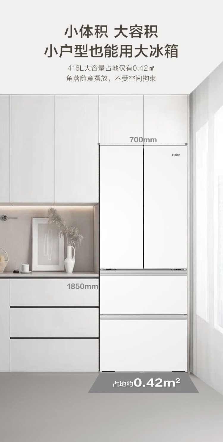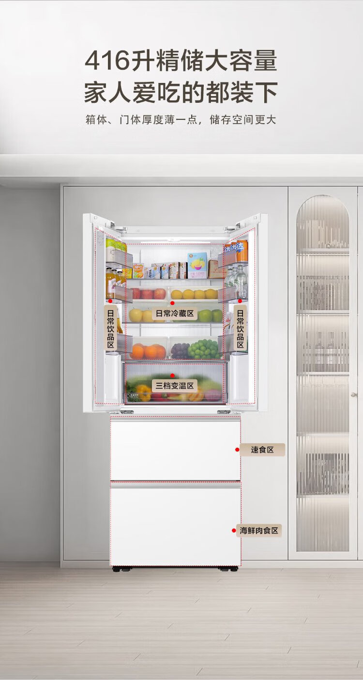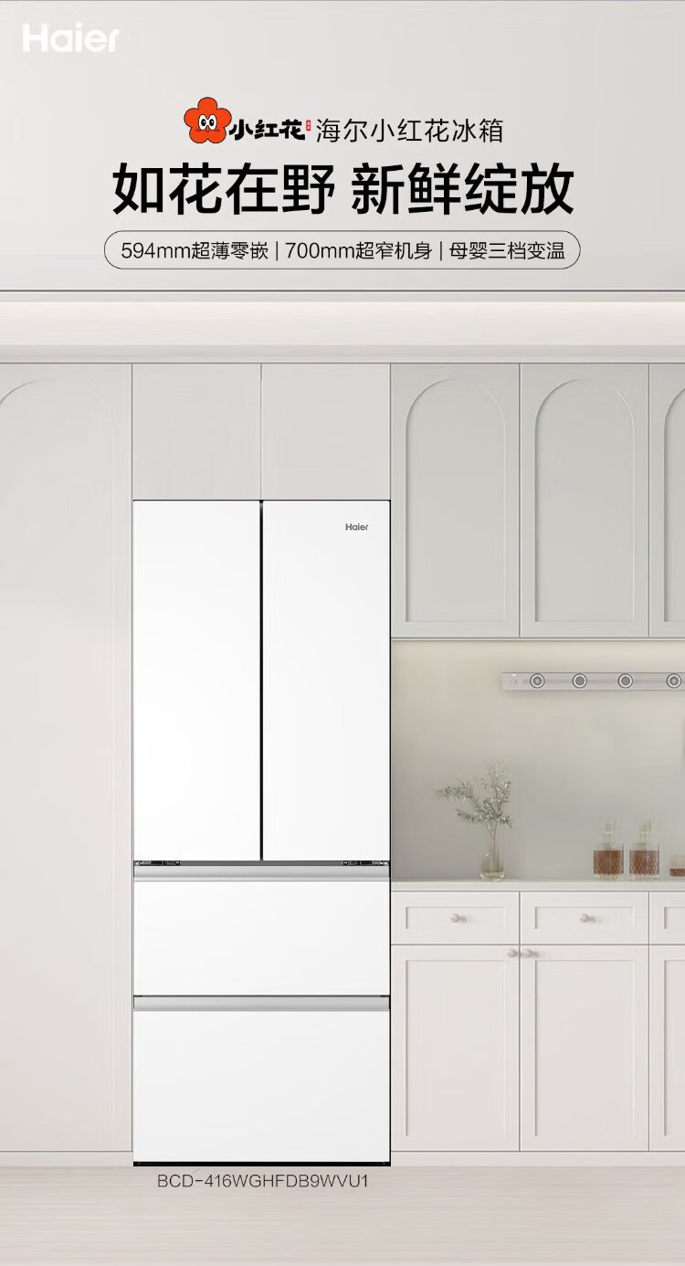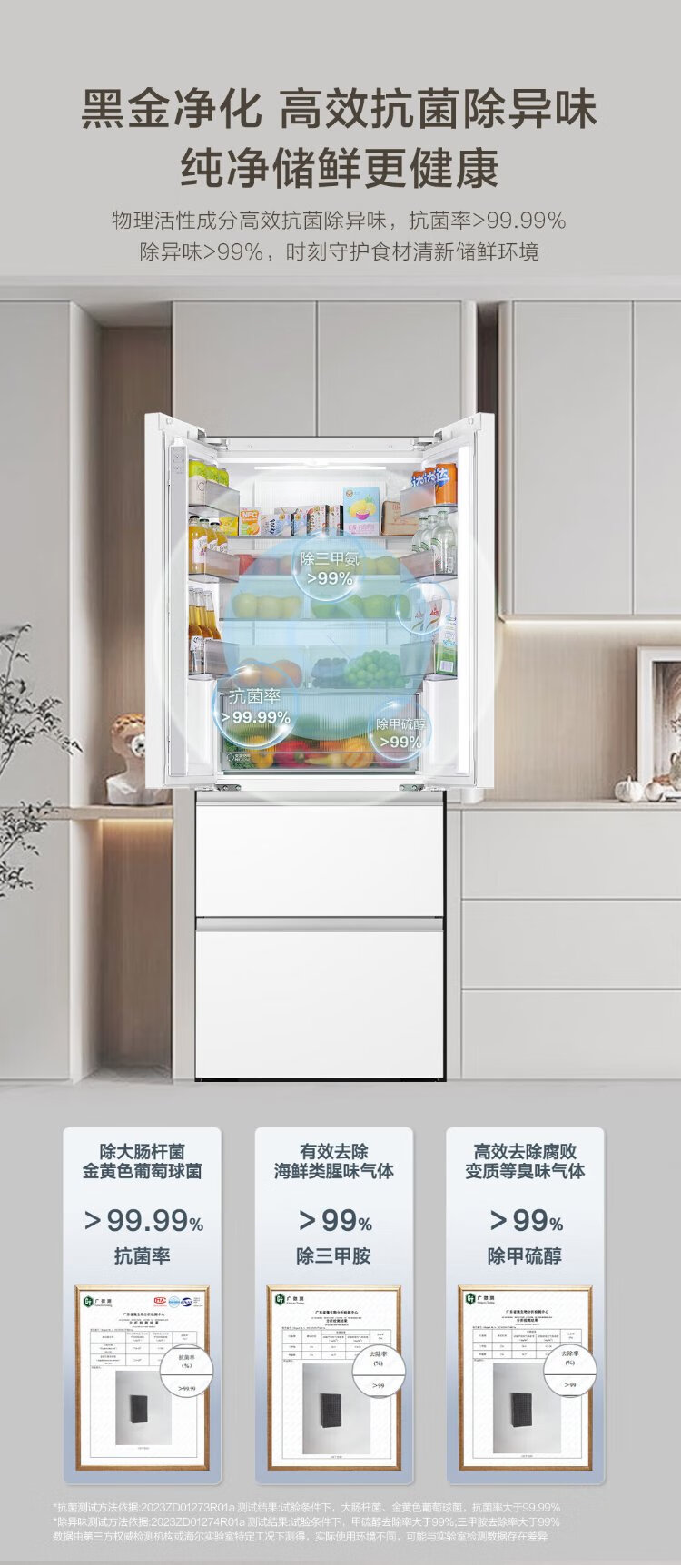 Haier refrigerator 416 liter French multi-door four-door 594mm ultra-thin zero-embedded small house Xiaohonghua series one-level frequency conversion air-cooled frost-free black gold purification household refrigerator 416 liter Xiaohonghua丨594 professional ultra-thin丨700 ultra-narrow body