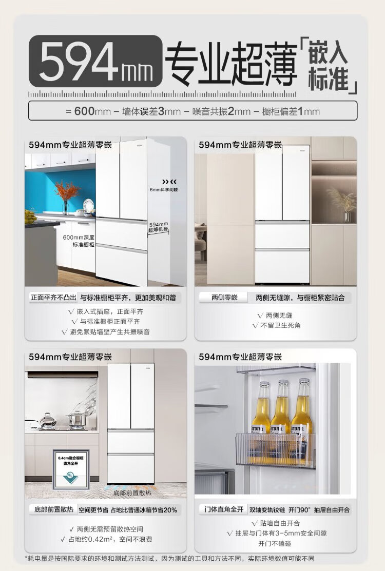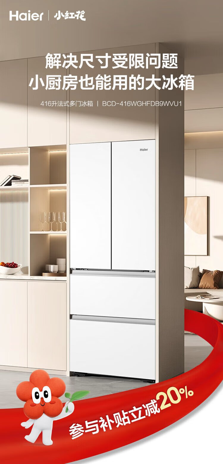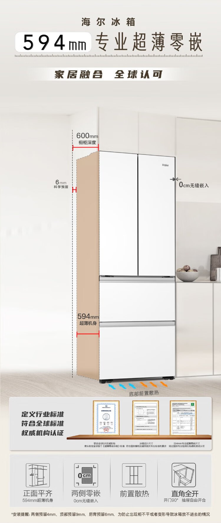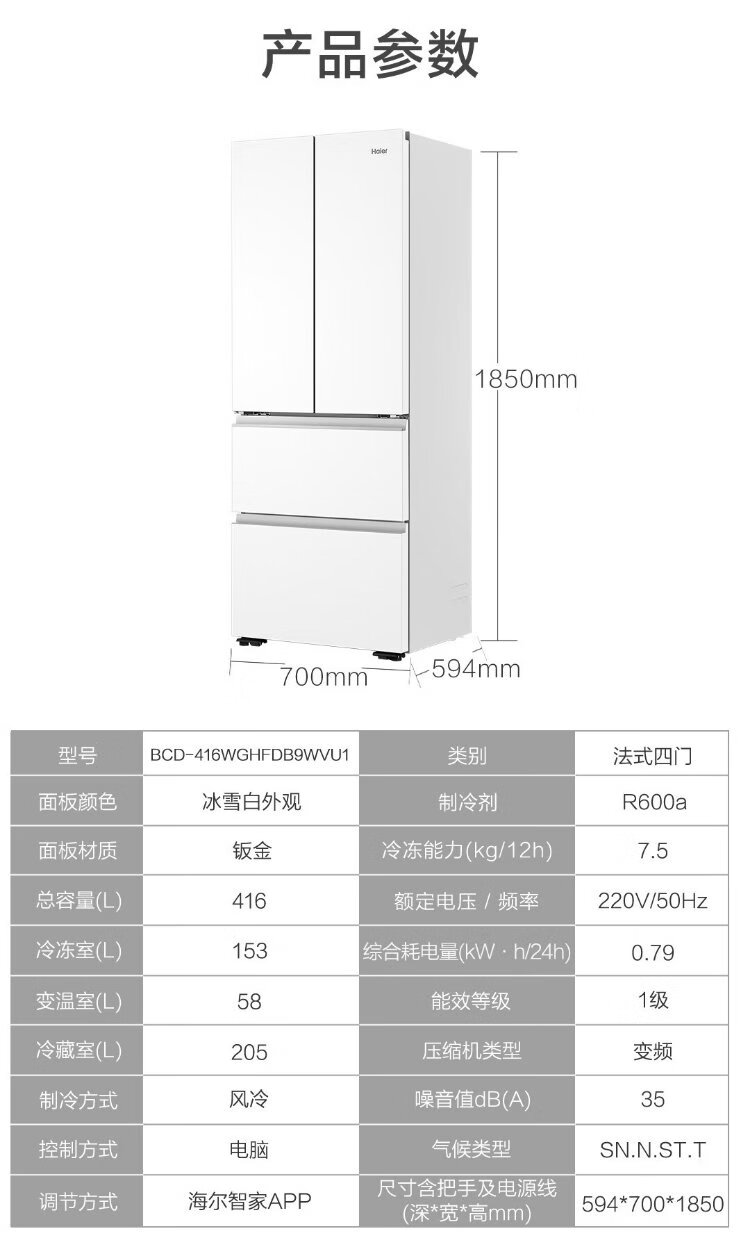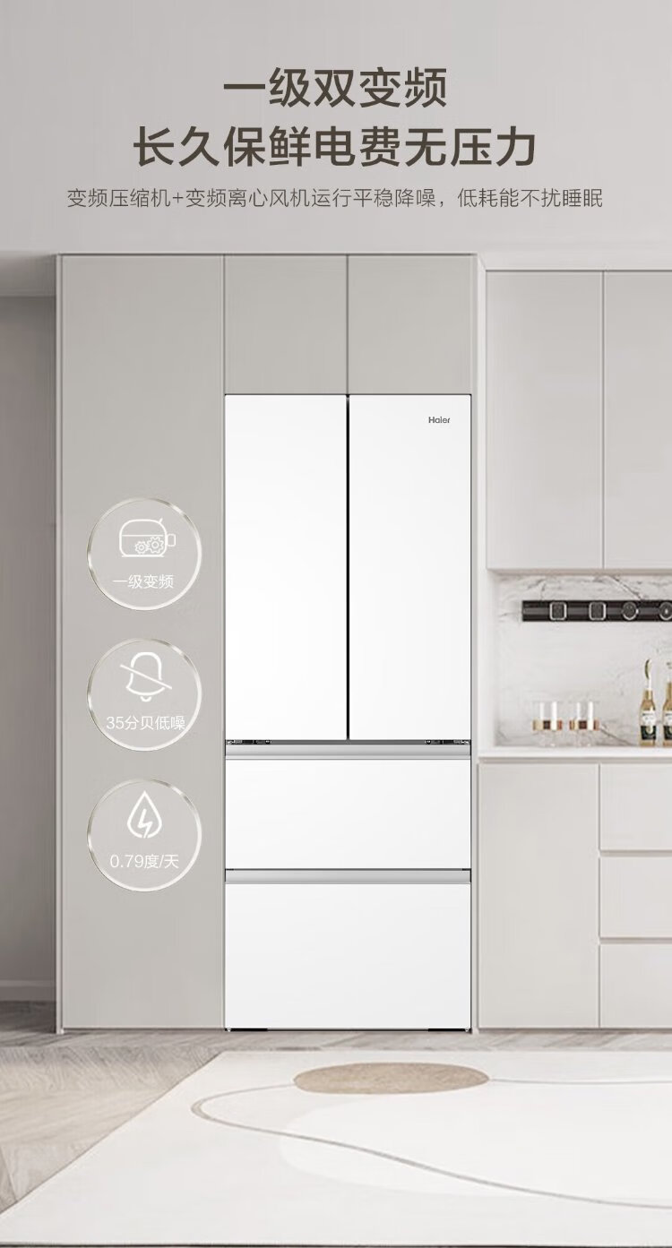 Haier refrigerator 416 liter French multi-door four-door 594mm ultra-thin zero-embedded small house Xiaohonghua series one-level frequency conversion air-cooled frost-free black gold purification household refrigerator 416 liter Xiaohonghua丨594 professional ultra-thin丨700 ultra-narrow body