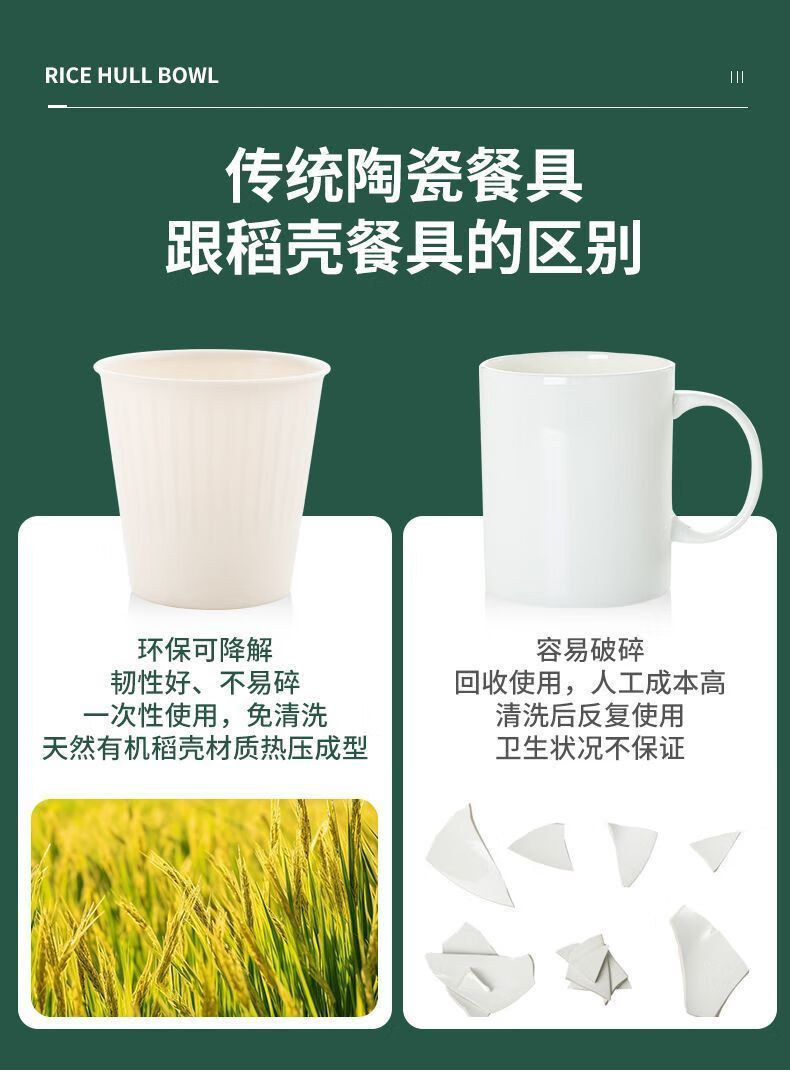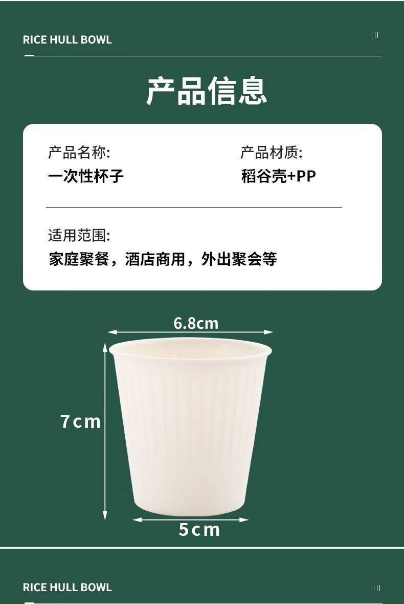 Rice husk disposable tableware cup tea cup thickened degradable food grade household high temperature resistant banquet commercial environmental protection 85ml 20 pieces