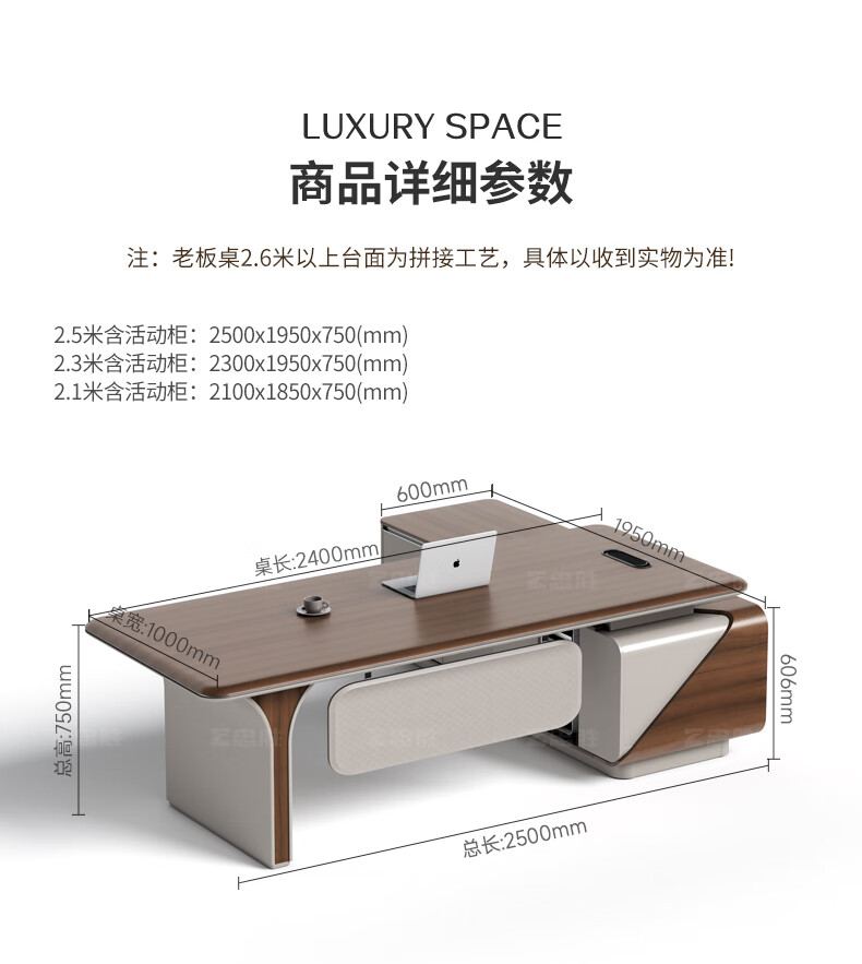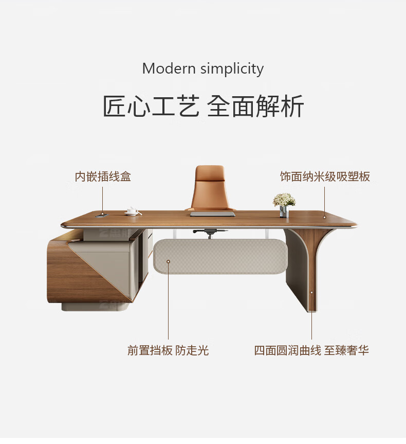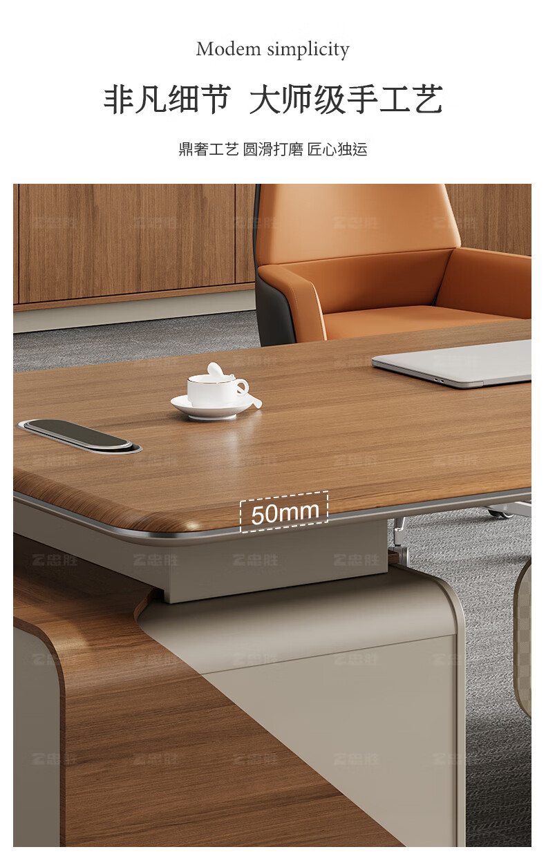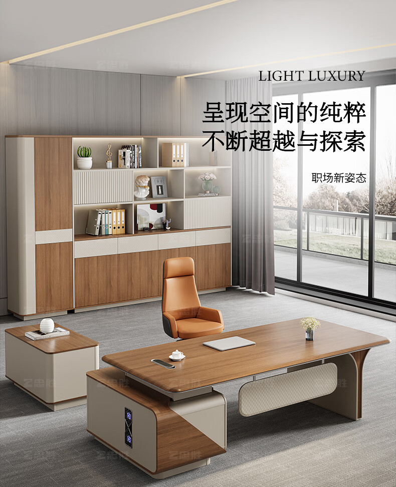 Zhongsheng Office Furniture Light Luxury High-end Executive Desk E0 Class Environmentally Friendly Boss Desk Manager Desk Single Desk Office Desk and Chair Combination 2.1 Meter Desk No Movable Cabinet