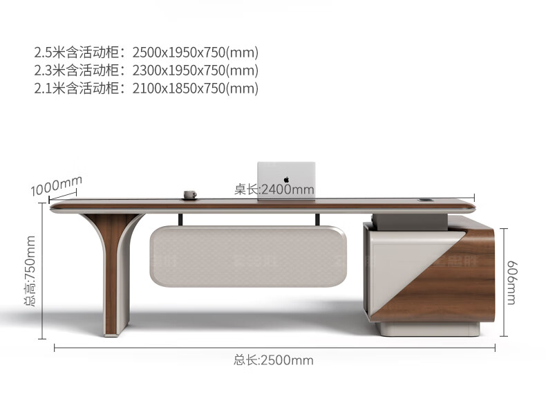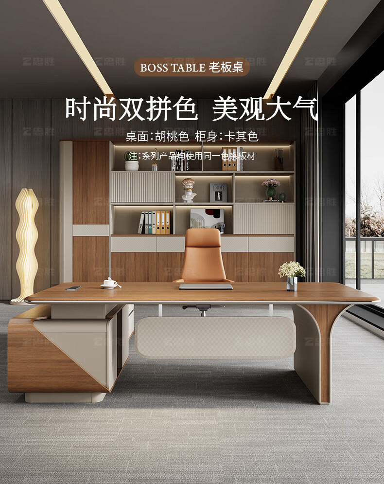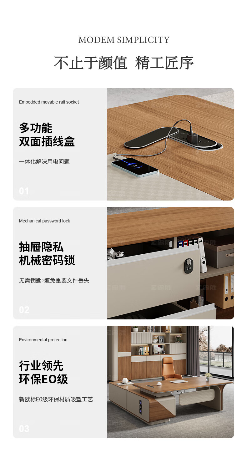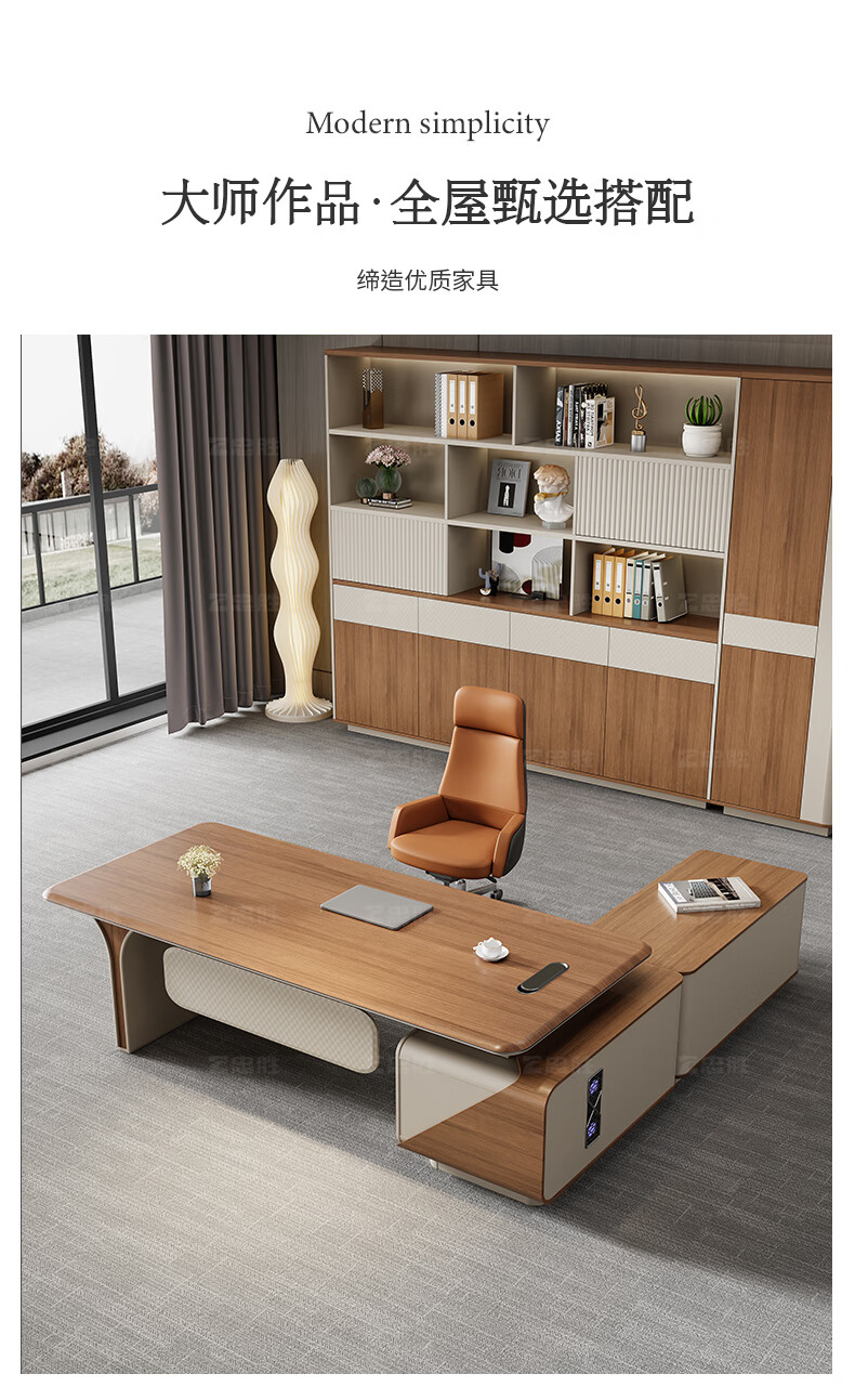 Zhongsheng Office Furniture Light Luxury High-end Executive Desk E0 Class Environmentally Friendly Boss Desk Manager Desk Single Desk Office Desk and Chair Combination 2.1 Meter Desk No Movable Cabinet