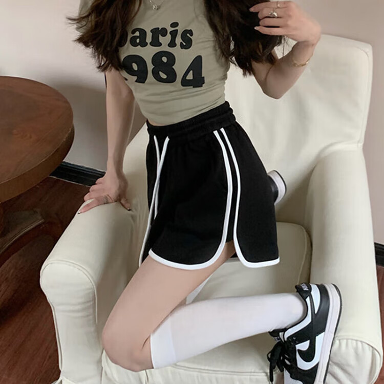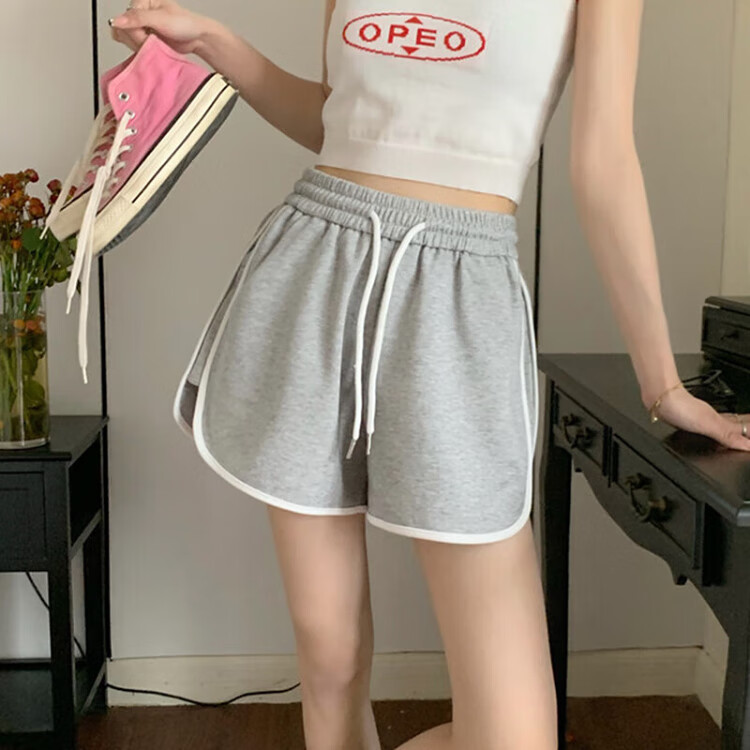 Miao Yijia Sports Shorts Women's Summer 2025 New Outerwear Black Casual Shorts Girls Big Pants High Waist Slim Versatile American Casual Simple Sports Shorts Gray One Size Recommended 120Jin Jin is equal to within 0.5kg