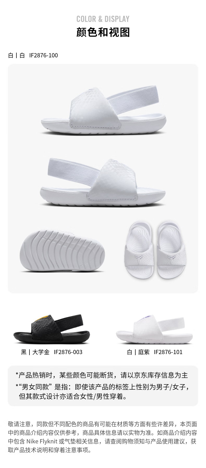 Nike Kobe infant and child cushioning sandals for boys and girls, comfortable to grip NIKE KOBE KAWA IF2876 100 white/white 23.5