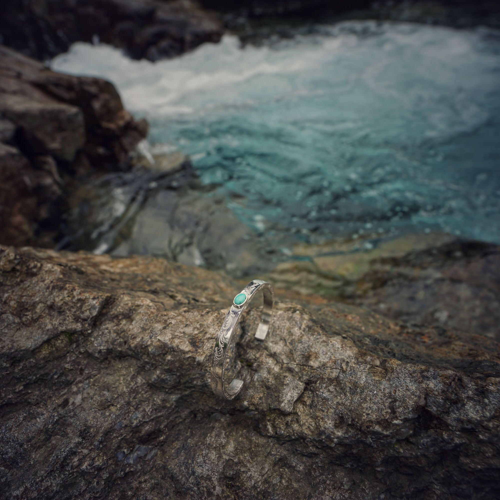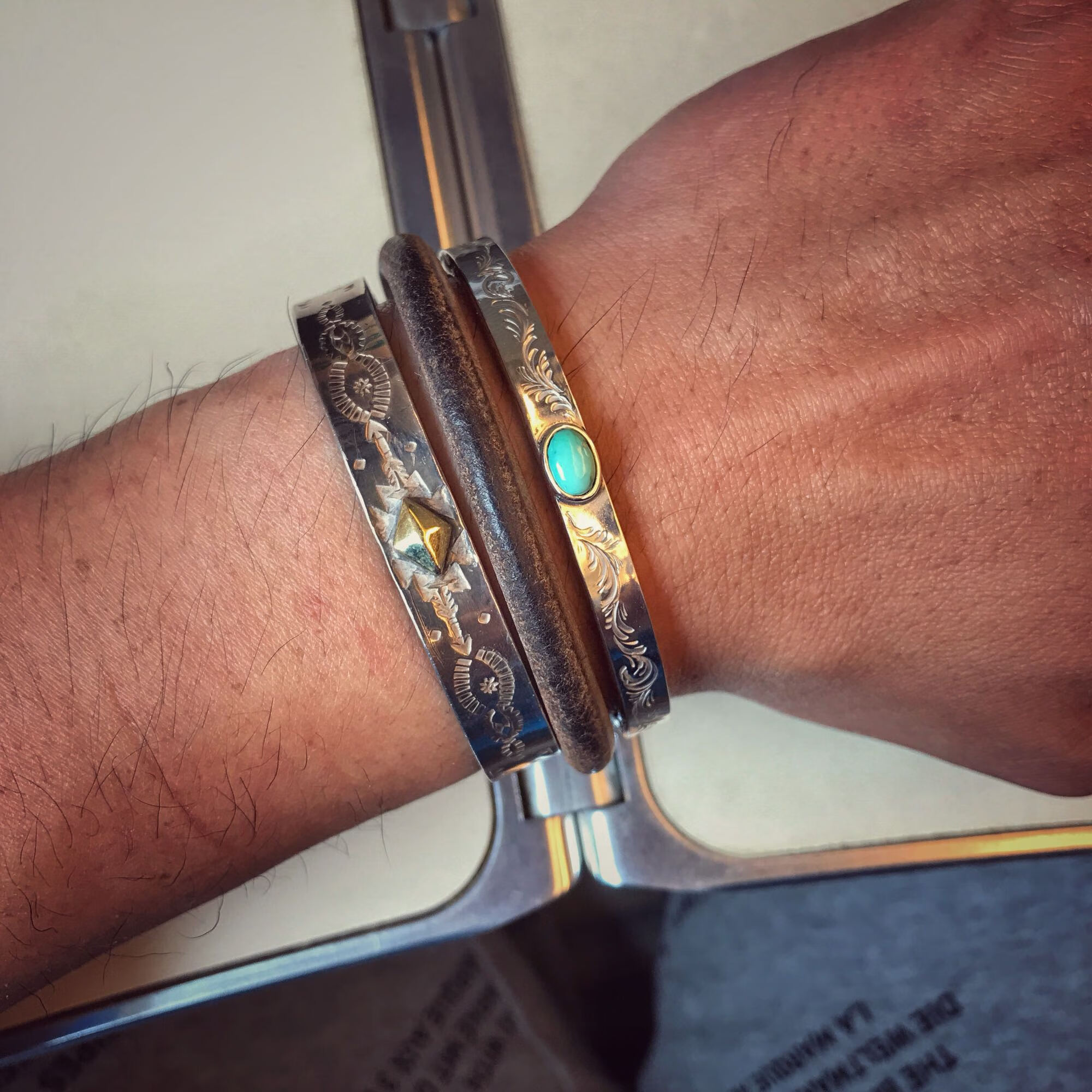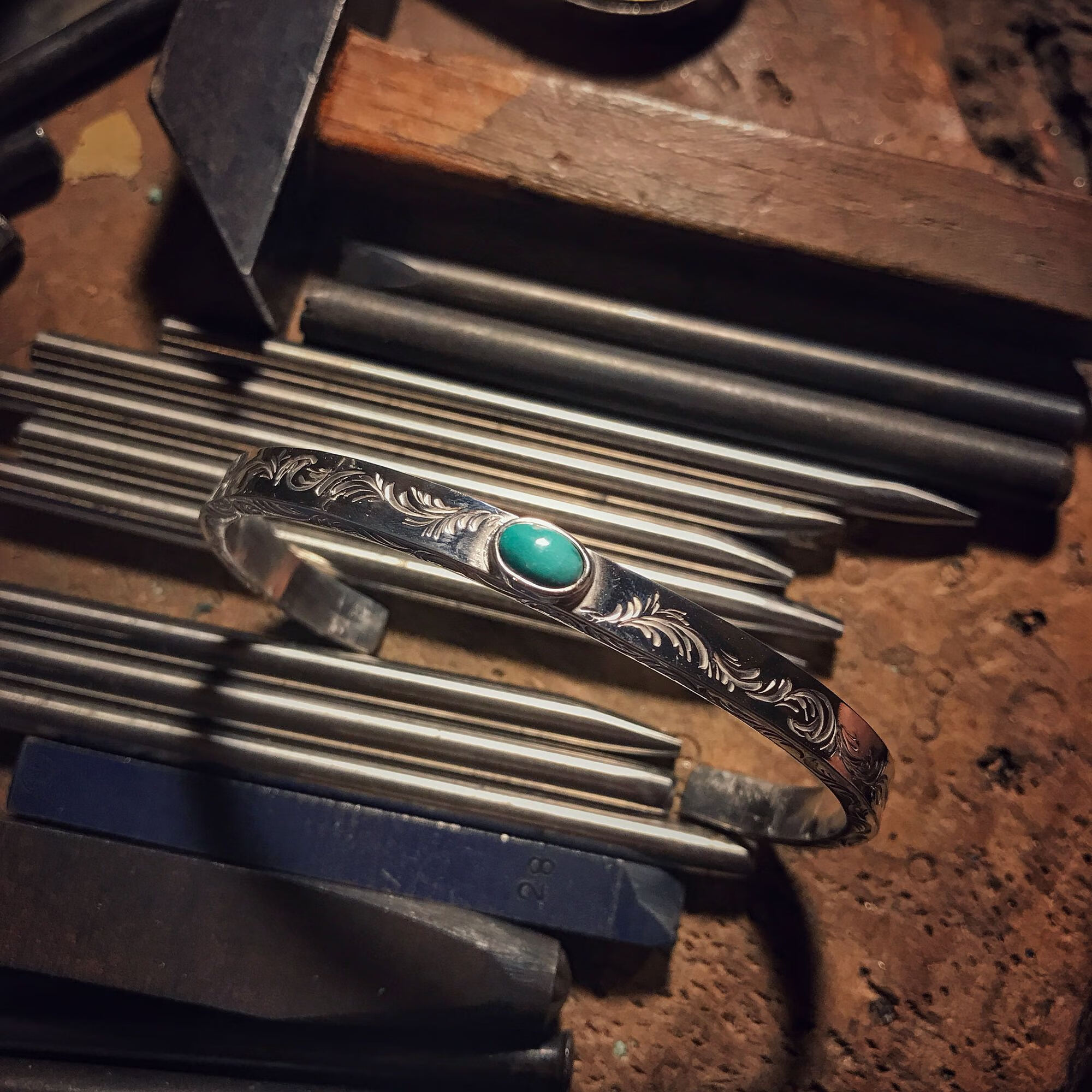 Tomihisa Indian men and women fashion carved arabesque bracelet turquoise 18k gold 950 silver non-Washimi Takahashi northworks