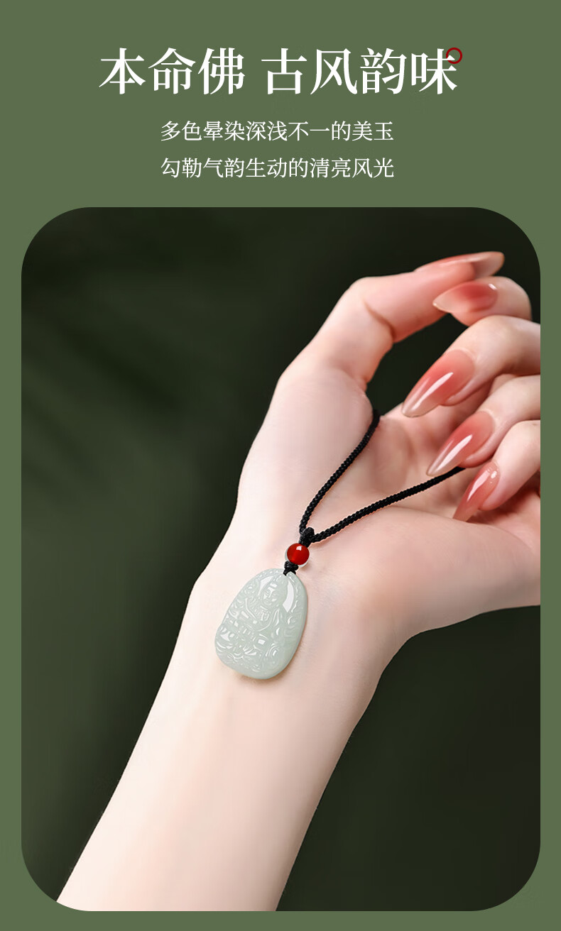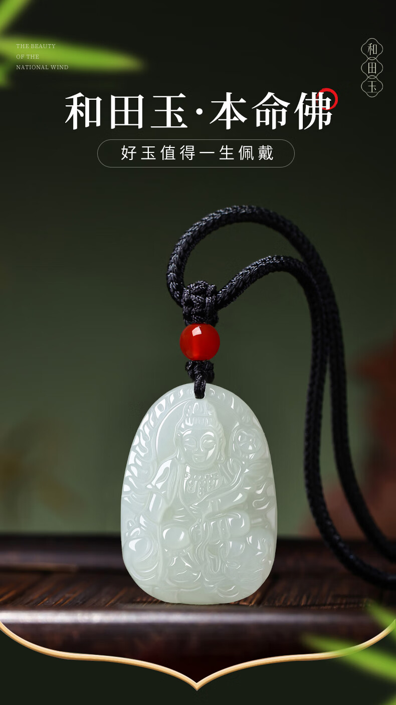 Chinese Gold Twelve Zodiac Signs Hetian Jade Pendant for Men and Women Born Buddha Necklace Birthday Gift for Boyfriend and Girlfriend Anniversary Amulet Puxian Bodhisattva Hetian Jade Pendant-Zodiac Dragon Snake