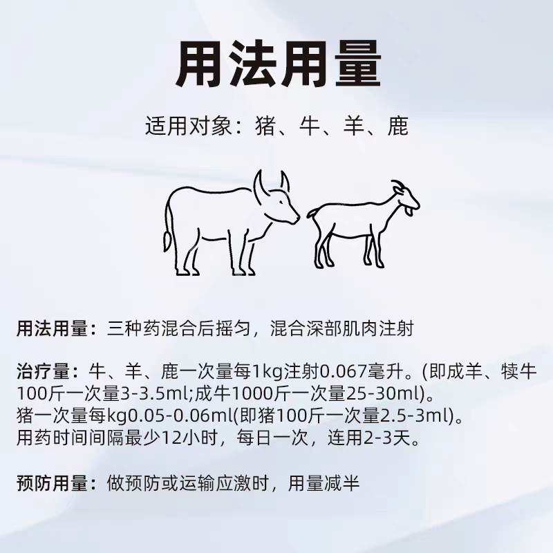 Mucan Veterinary Medicine Variant Pneumonia Severe Cough Rotten Lungs Pig Cattle Sheep Cough and Asthma Pig Pleural Pneumonia Calf Asthma Pregnant Animals Available Cough and Cough Rotten Feikang Injection (1 set of 3 boxes) A+b+c