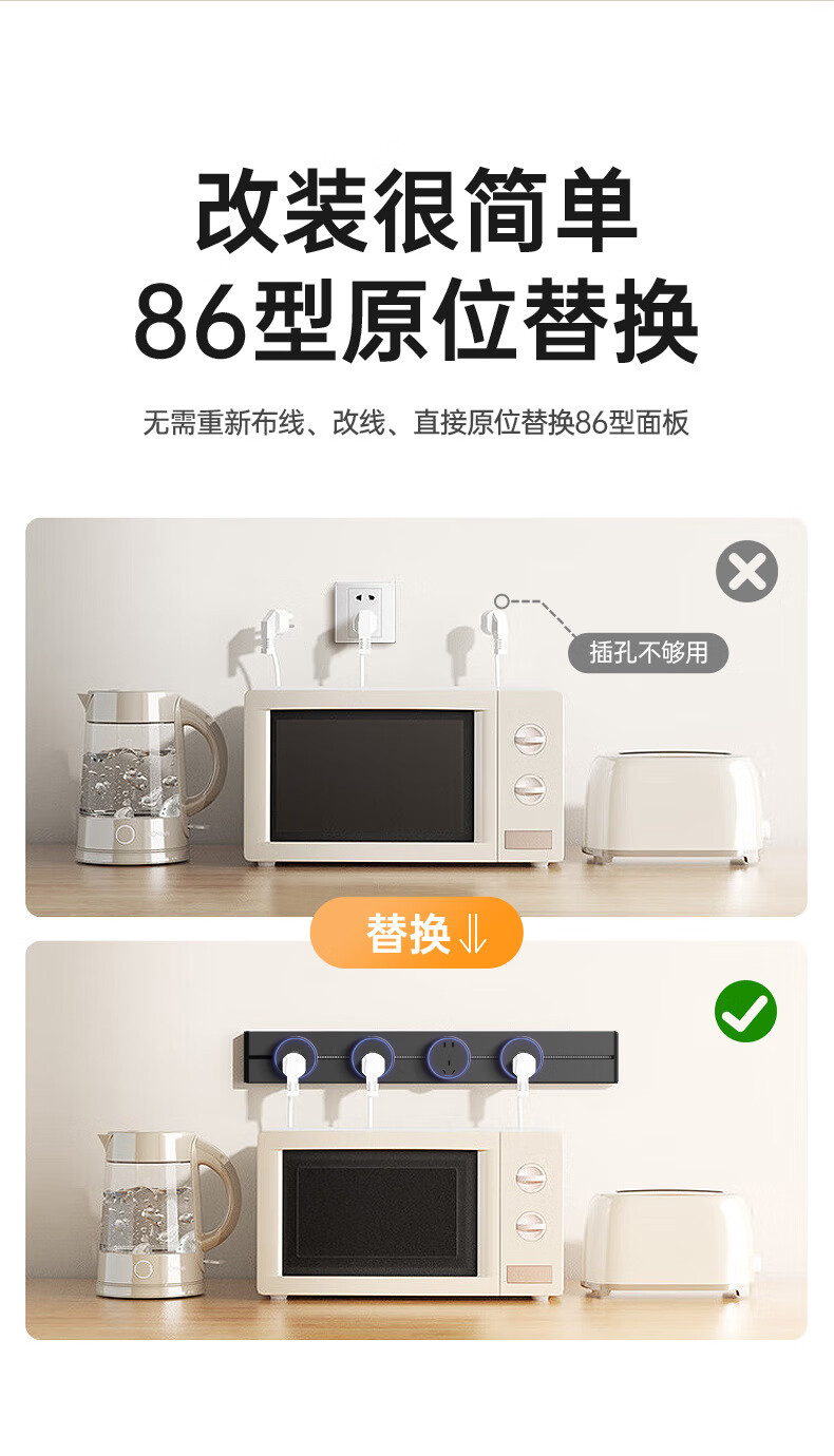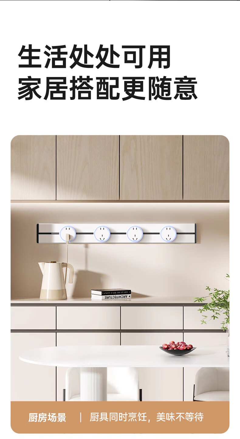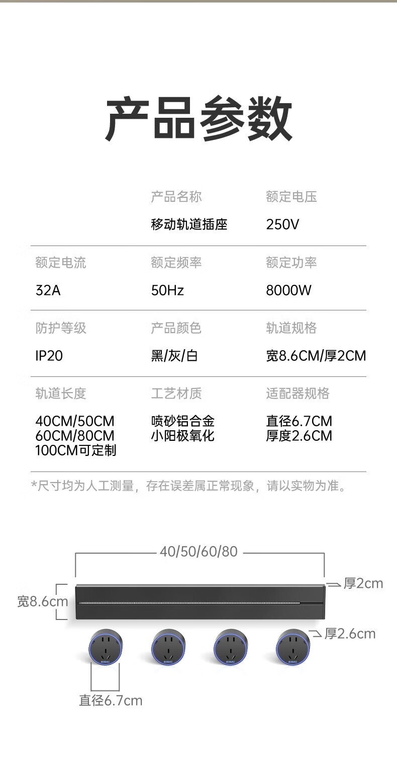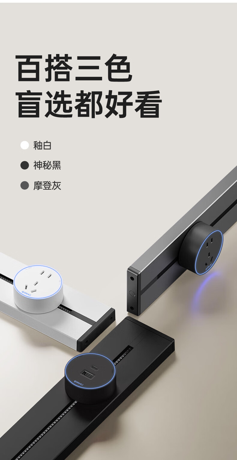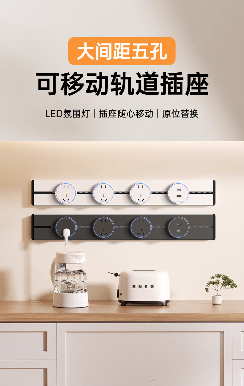 Bull (BULL) same style track socket mobile slide rail surface-mounted household guide rail power strip large spacing five-hole socket gray 30CM track + 2 five-hole