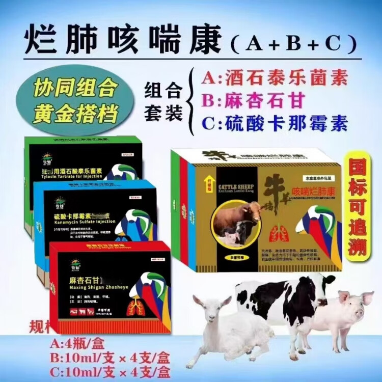 Mucan Veterinary Medicine for Severe Cough, Rotten Lungs, Pleuropneumonia, Pigs, Cattle, Sheep, Cough and Asthma, Porcine Pleural Pneumonia, Equine Cough and Asthma, Specially Available for Pregnant Animals, Cough and Asthma, Rotten Feikang Injection (1 set of 3 boxes) A+B+C