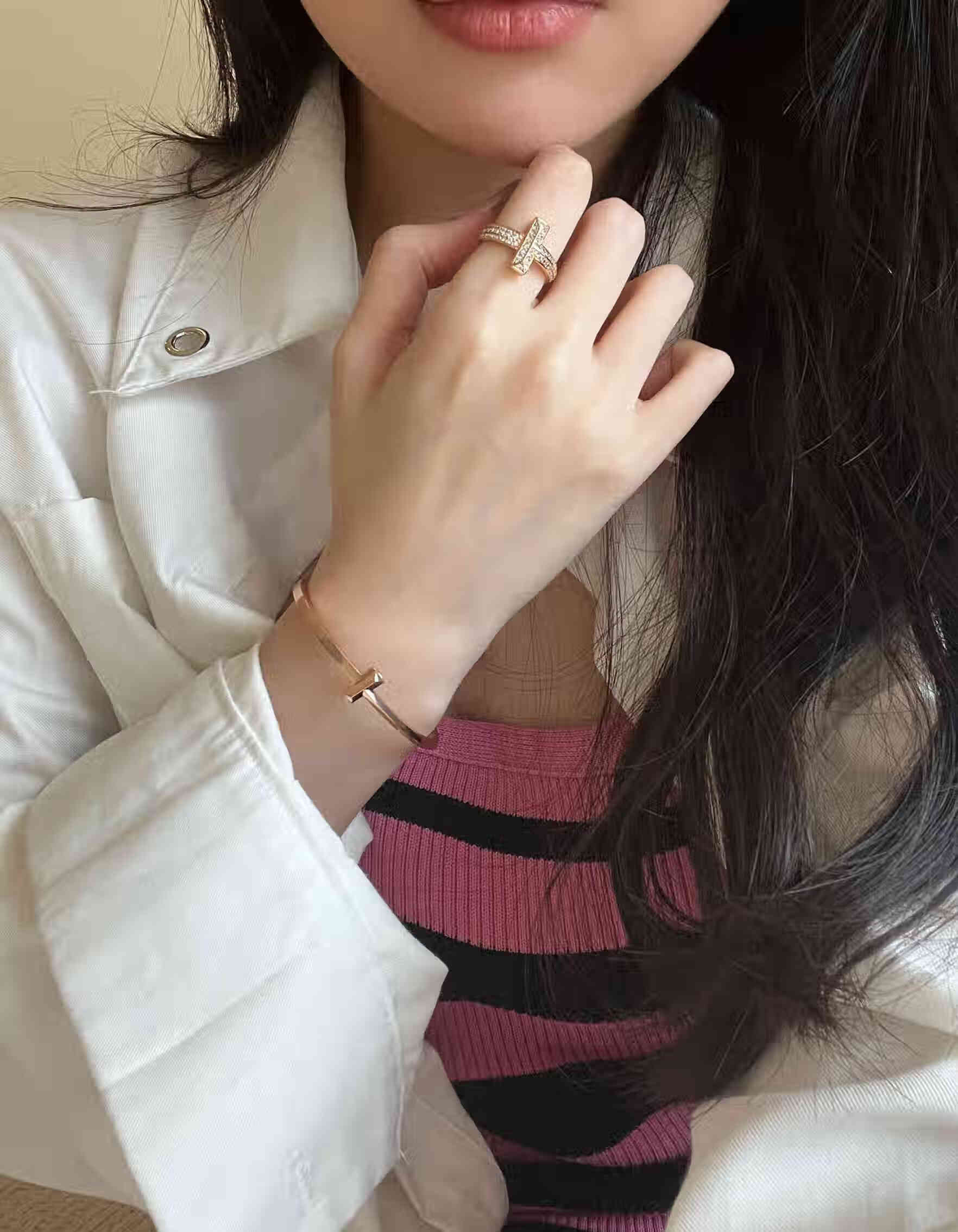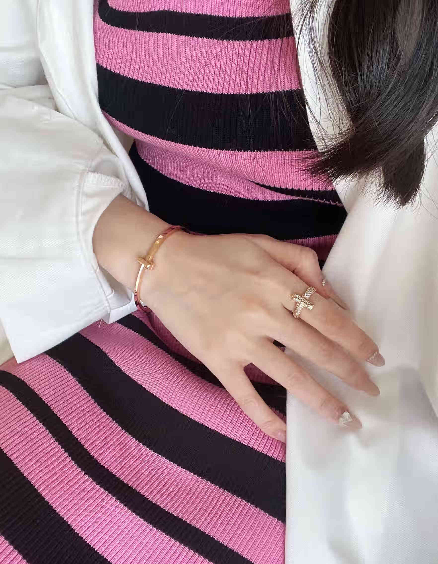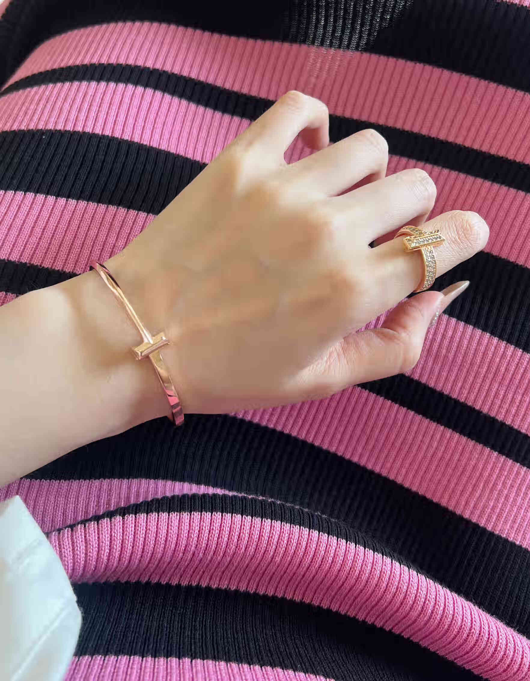 Fujiu high-end 18K gold-plated ring men's and women's open ring rose gold wedding ring couple's ring simple bracelet type A silver bracelet size 16 (wrist 14)