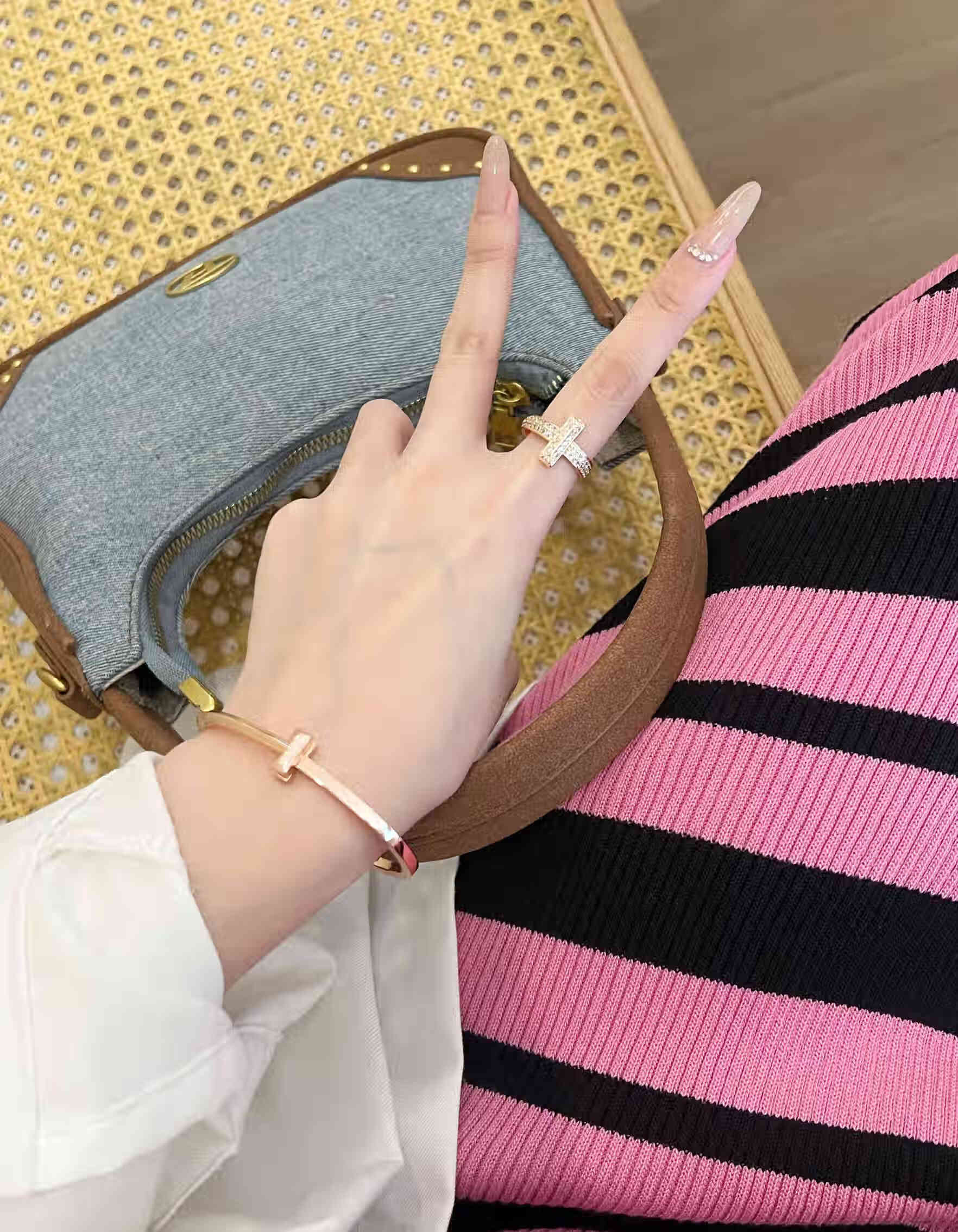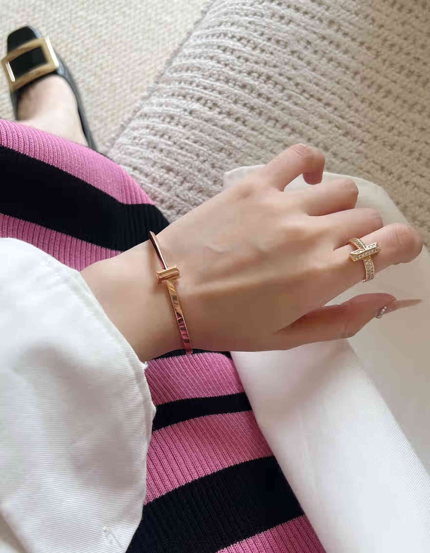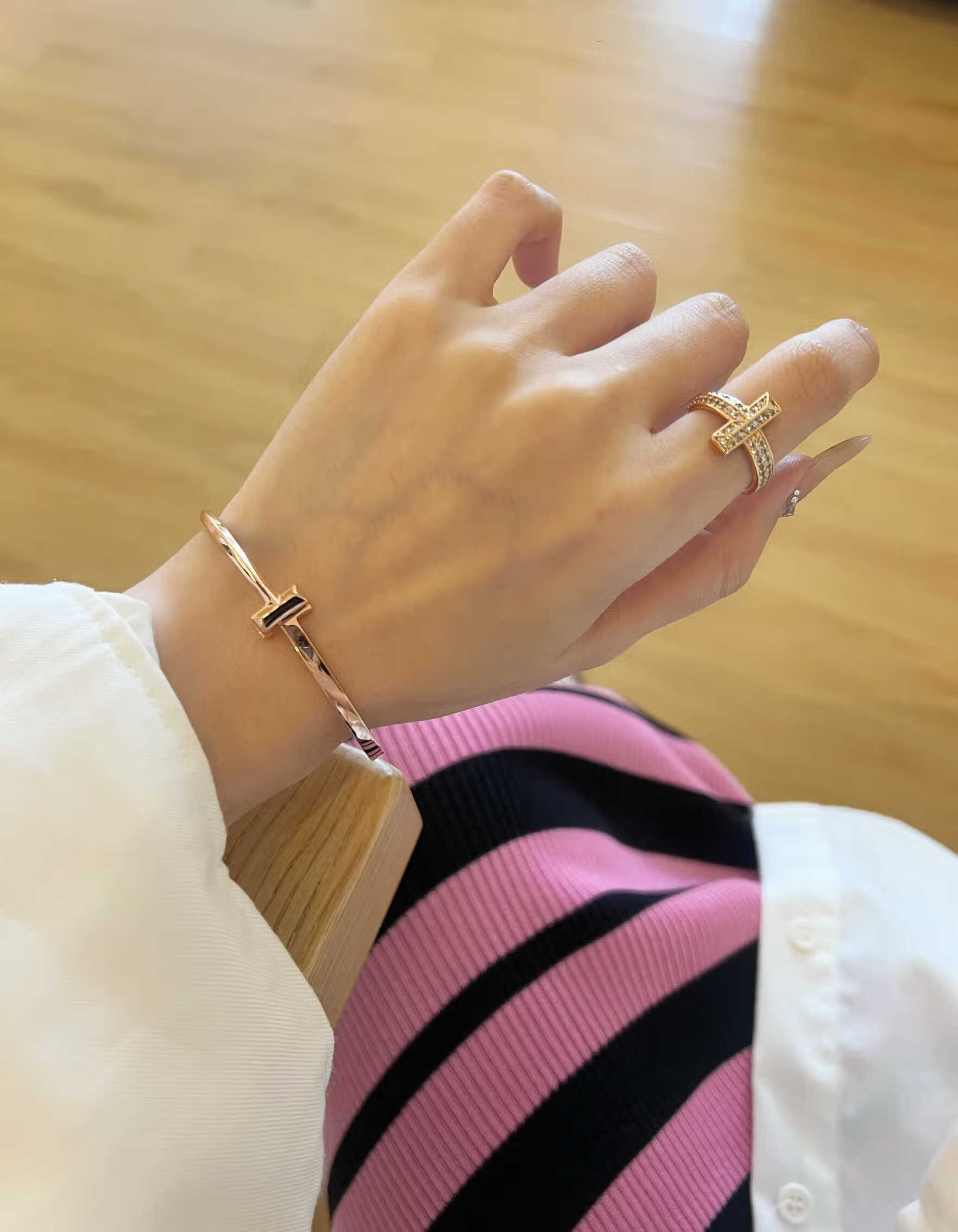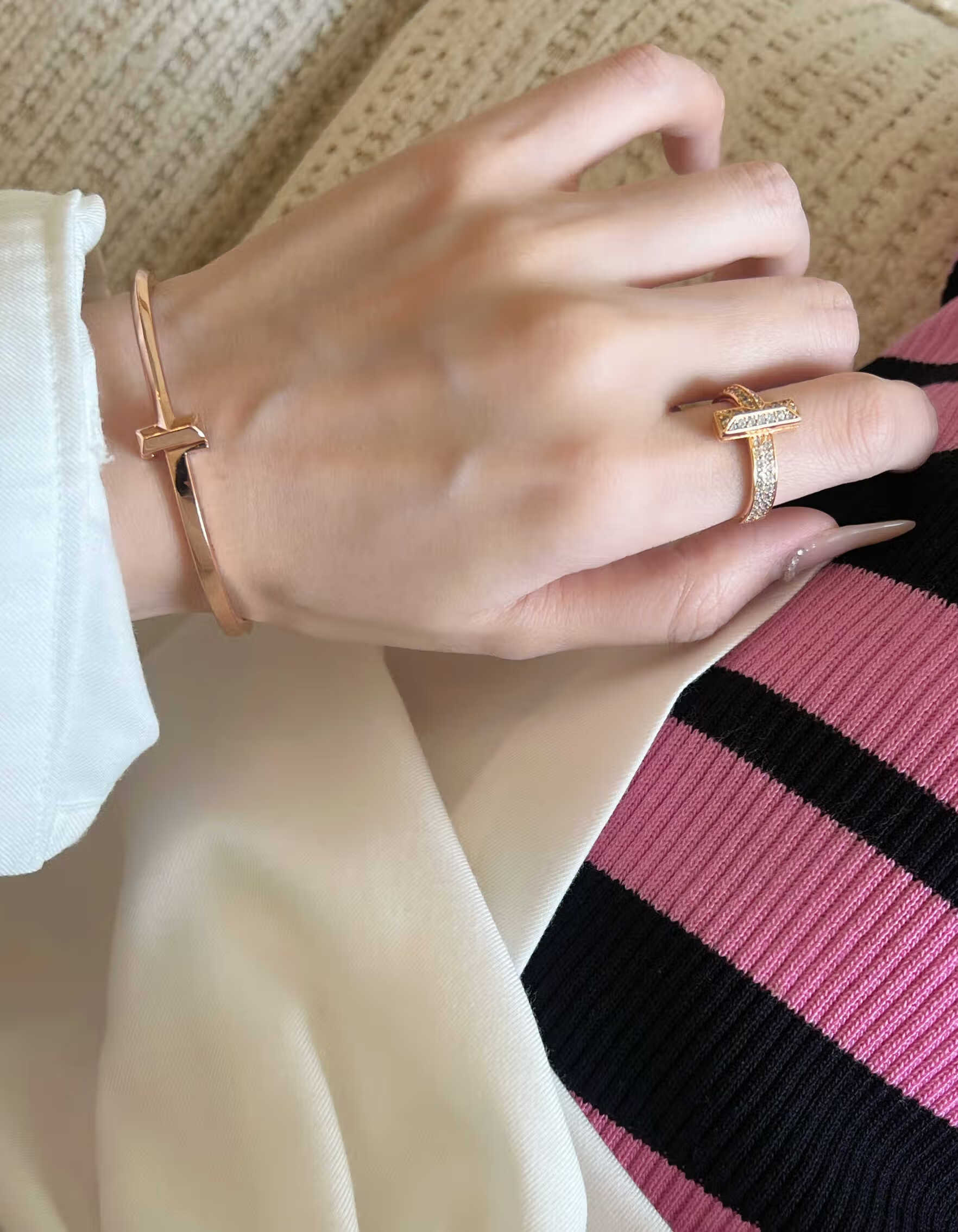 Fujiu high-end 18K gold-plated ring men's and women's open ring rose gold wedding ring couple's ring simple bracelet type A silver bracelet size 16 (wrist 14)