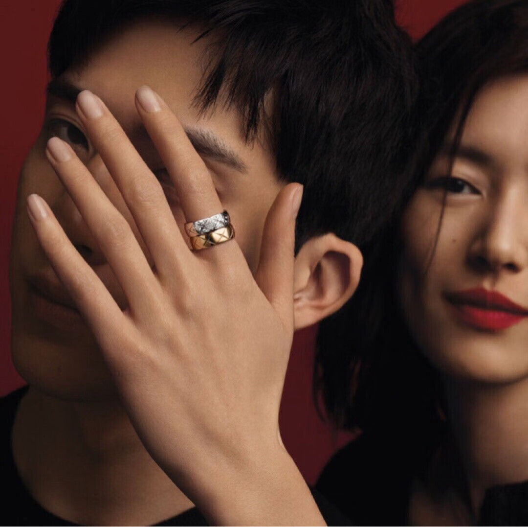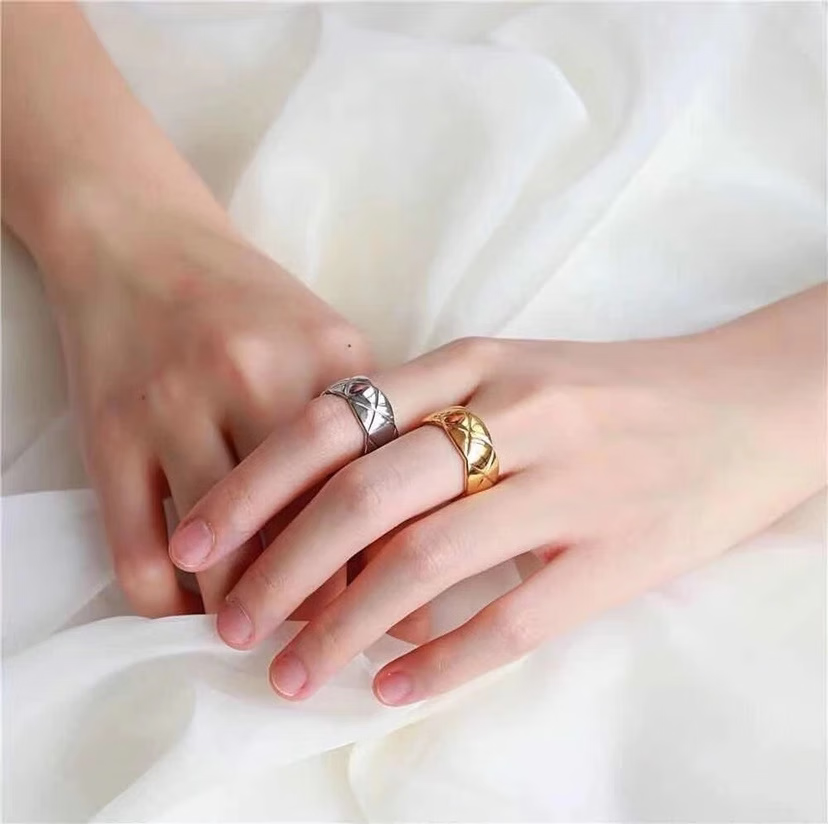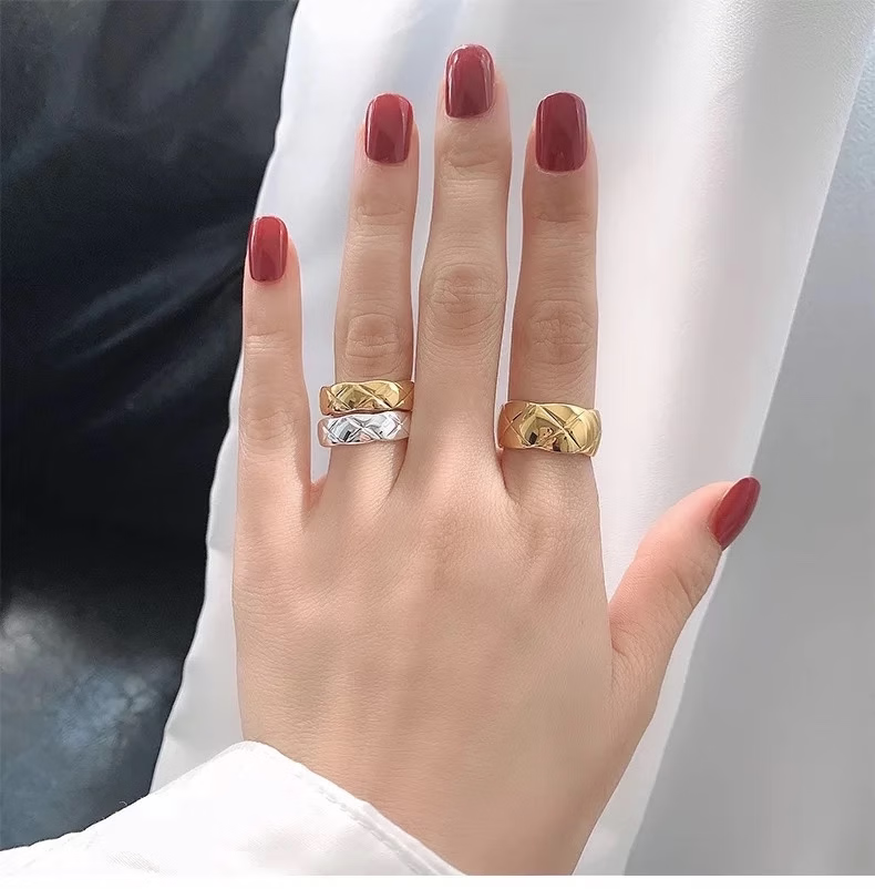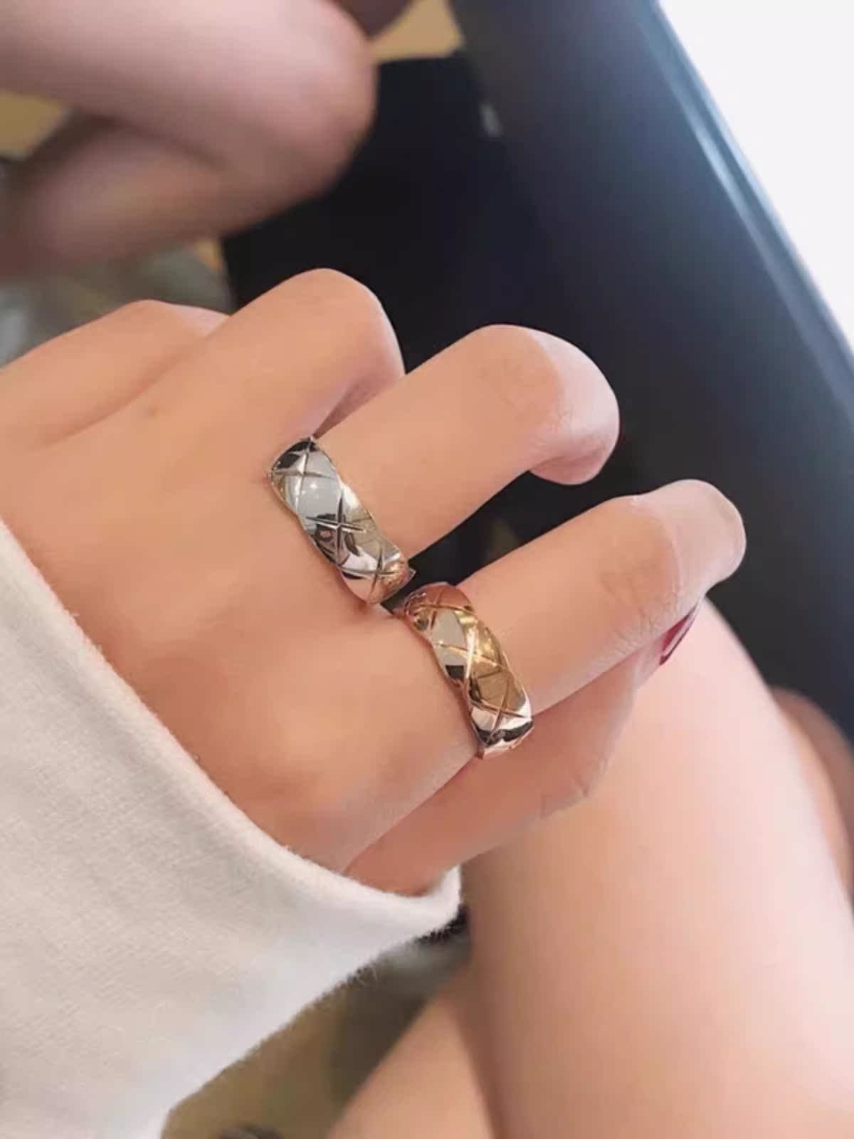 Fujiu customized 18K gold ring for women rose gold color gold rhombus wedding ring gold couple ring light luxury high-end ring for men fashion version - rose gold (beige gold) color width 1 US size 5 (Chinese size 10-11)