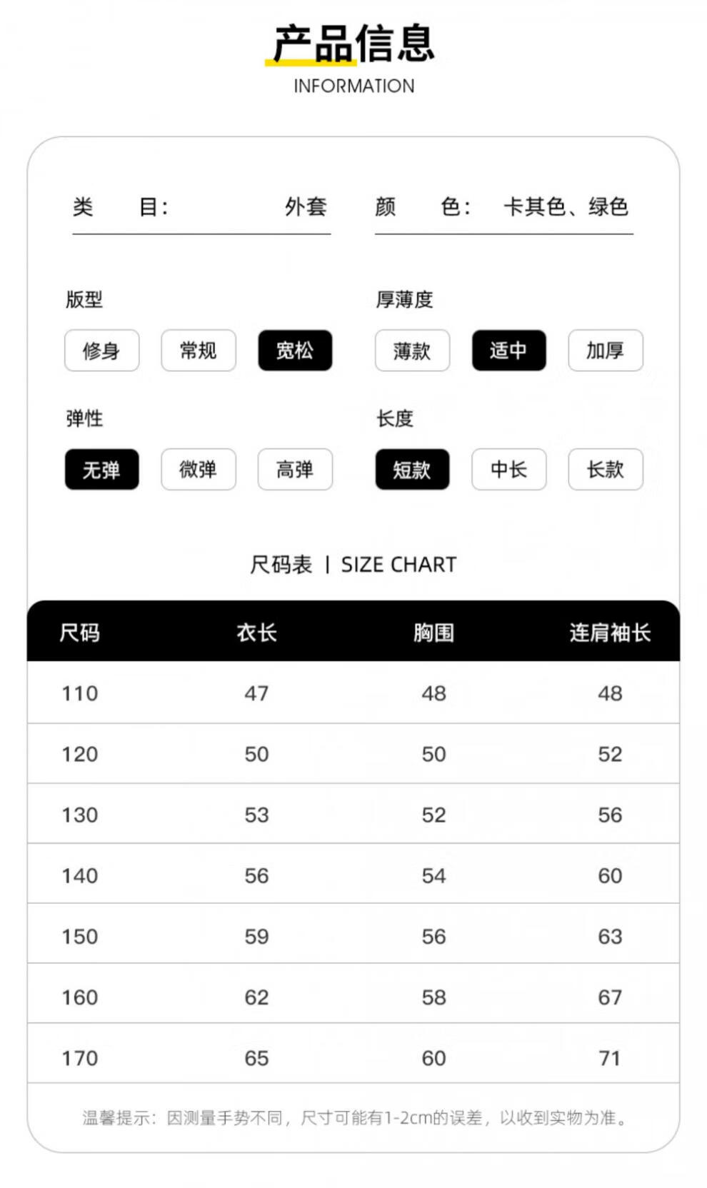 Size (cm) 42 44 46 48 50