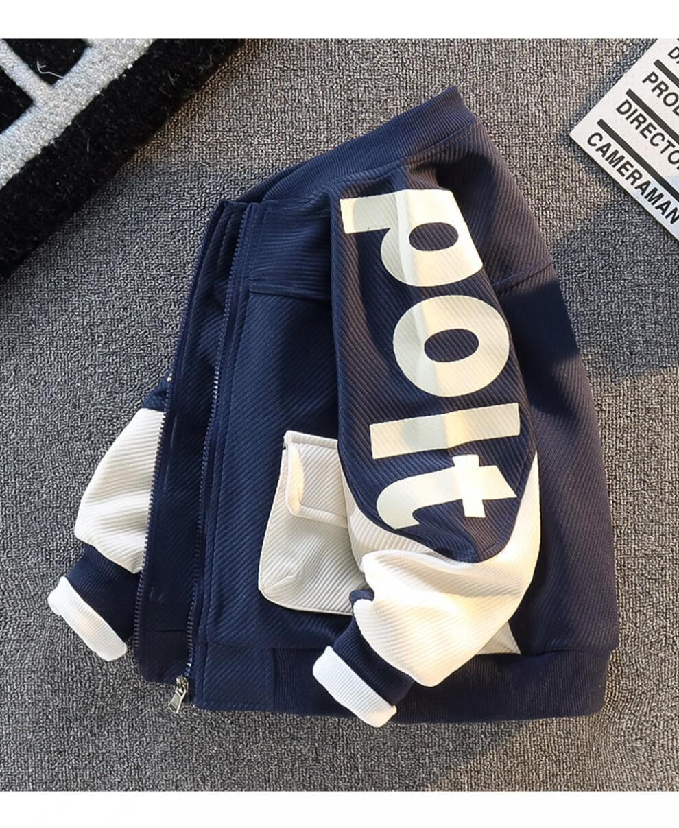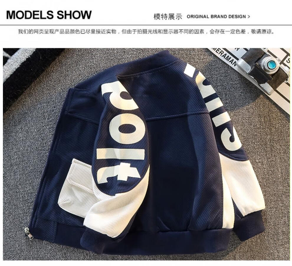 Disney Children's Clothing Boys' Autumn Jackets 2025 New Medium and Large Children's Spring and Autumn Boys' Autumn Fashionable Street Baseball Uniforms Navy Blue Alphabet Baseball Uniforms 160 cm