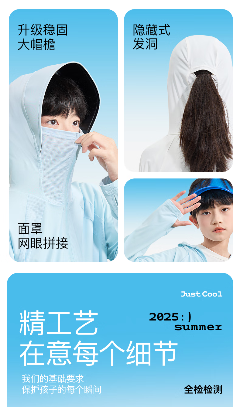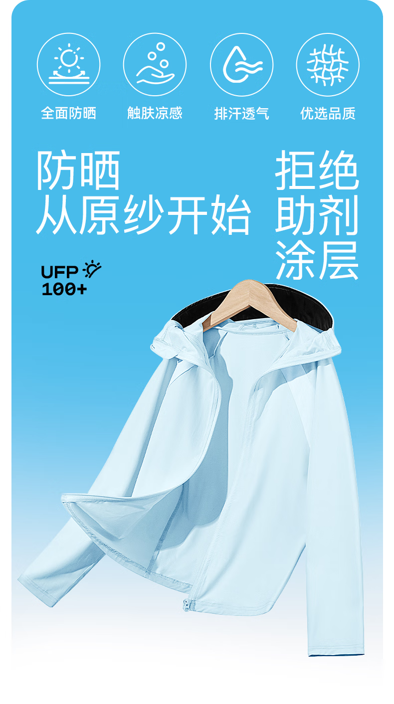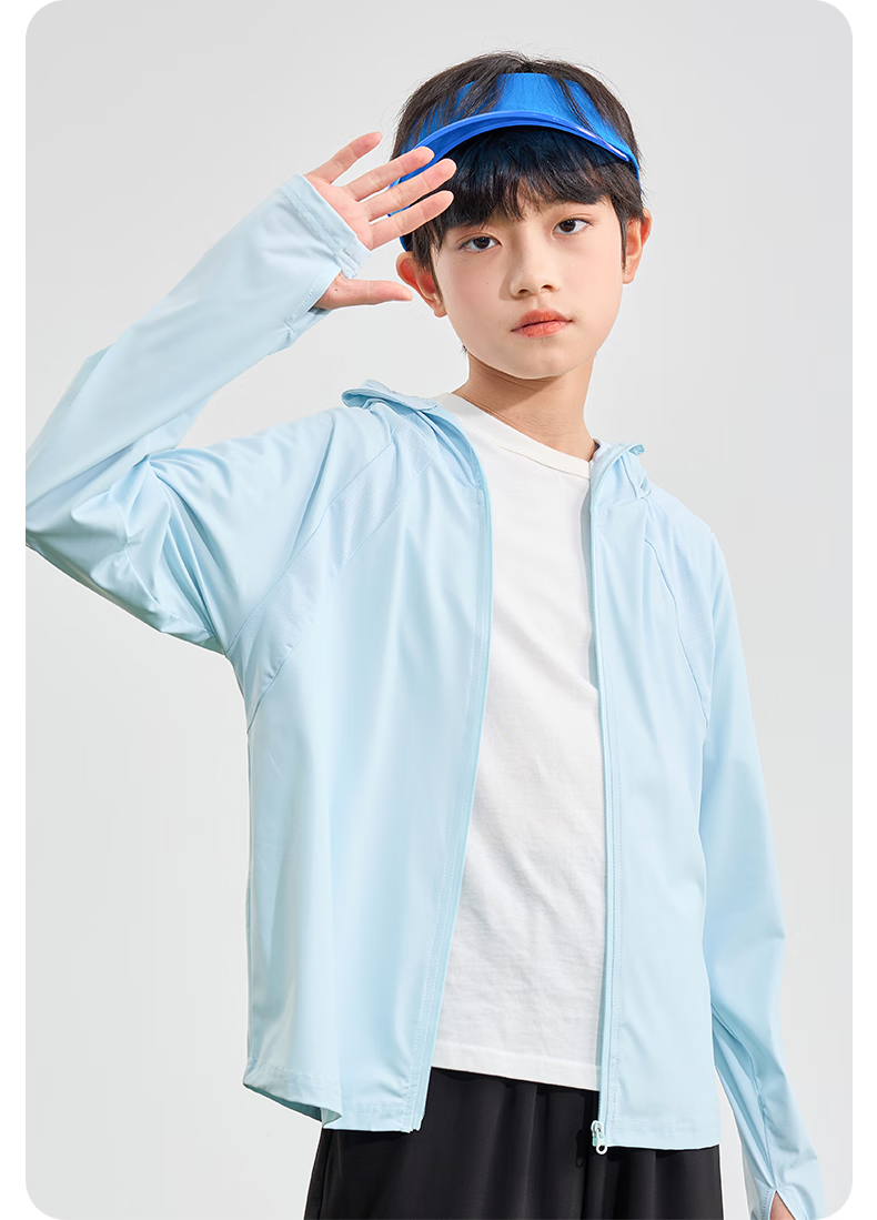 Piggy Banner Children's Sun Protection Clothing 2025 New Summer Boys' Cool Quick-Drying Skin Clothing UPF100+ Girls' Vinyl Jacket Blue/Solid Color 140 (Weight 56-68)