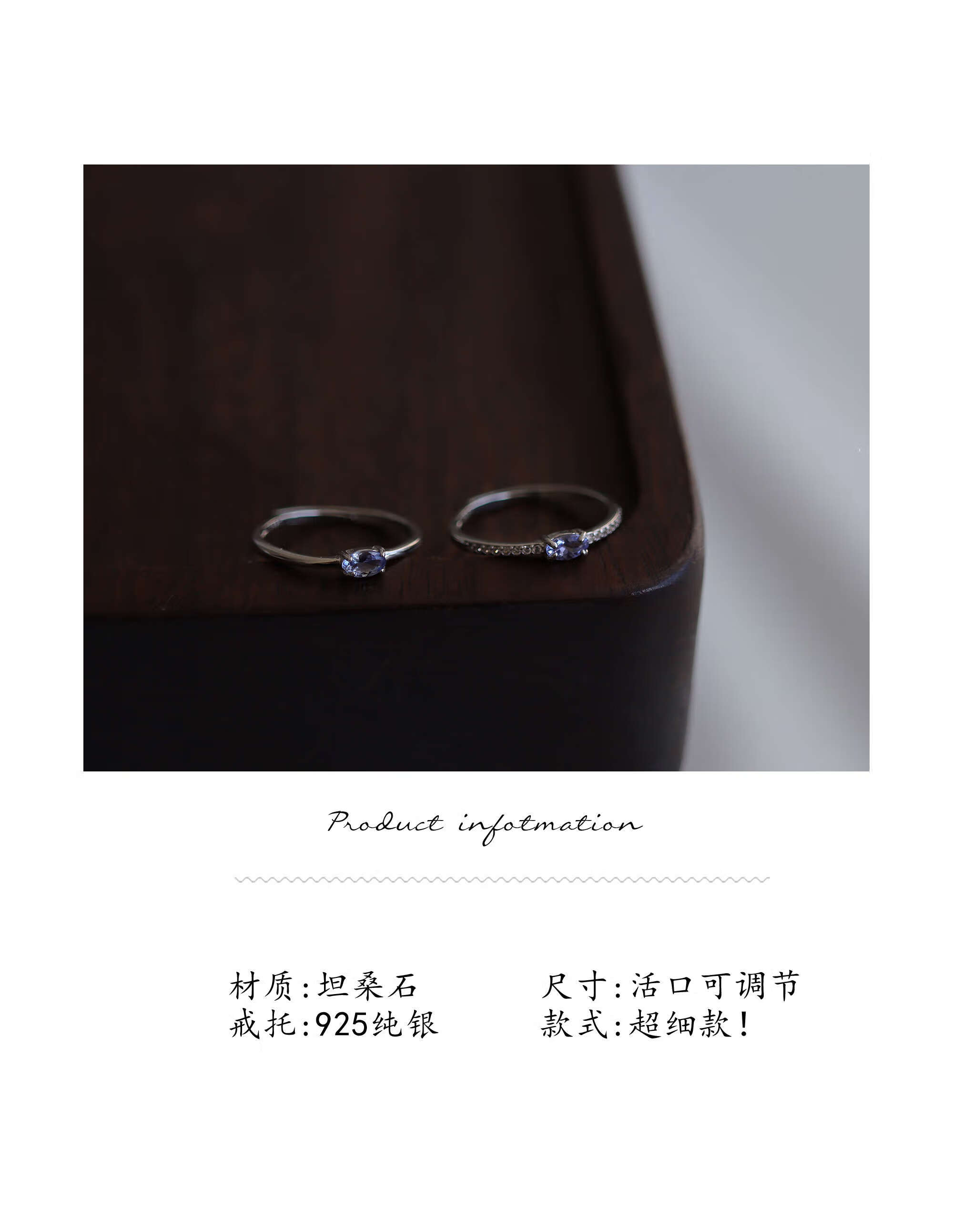 OEMG really loves the ultra-fine gemstone ring, natural and beautiful blue-purple tanzanite 925 sterling silver gift for women, minimalist style, adjustable opening