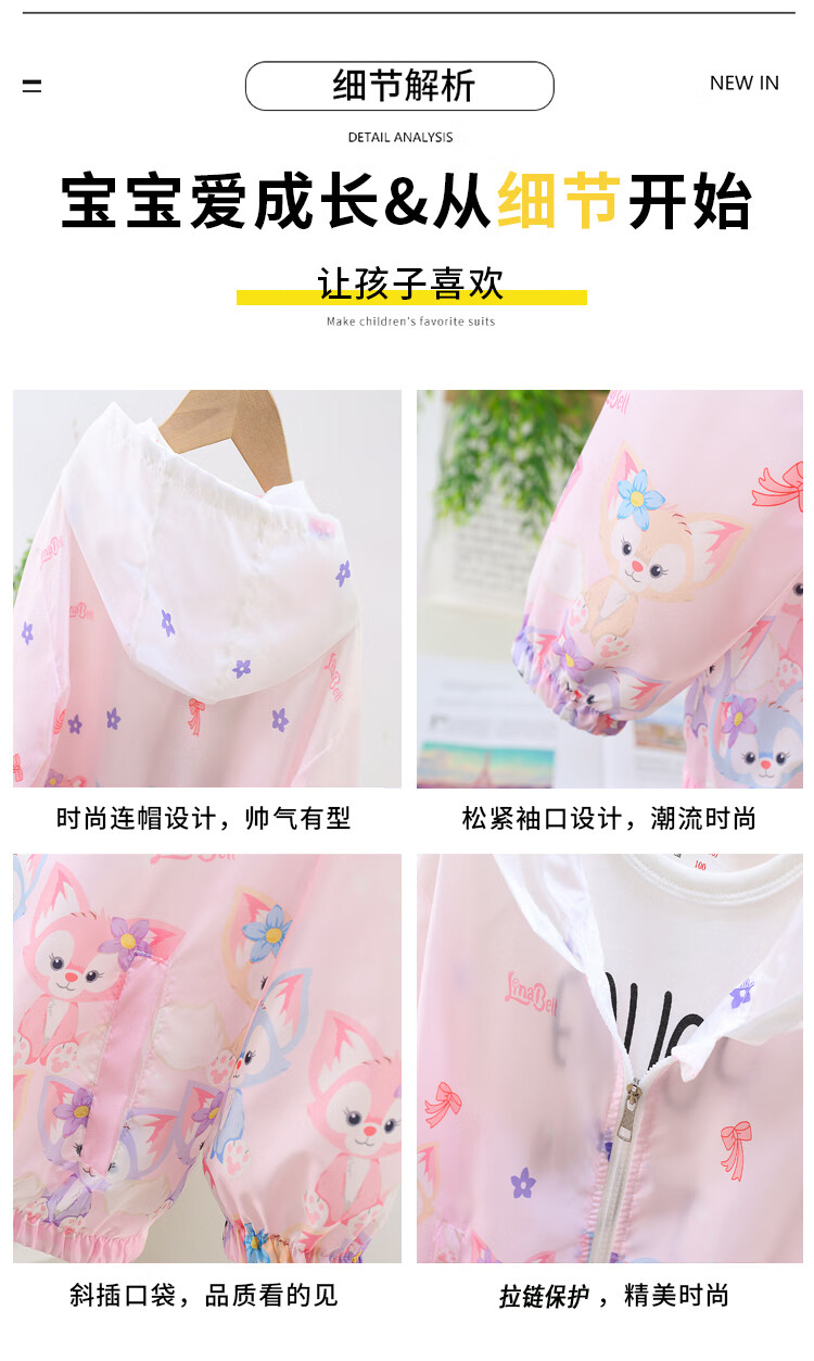 Disney (Disney) brand children's clothing girls' sun protection clothing 2025 new summer thin children's breathable sun protection clothing light skin clothing pink Star Dew sun protection clothing single 130
