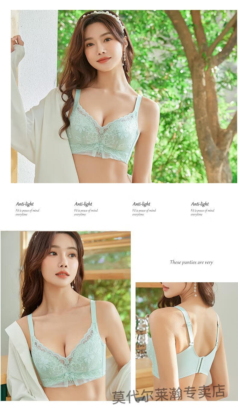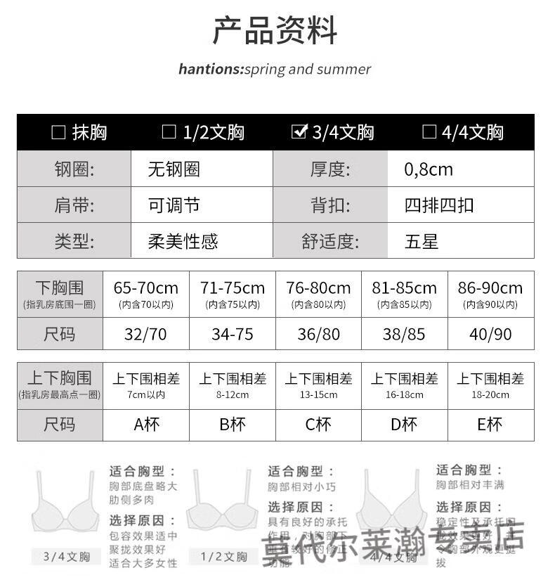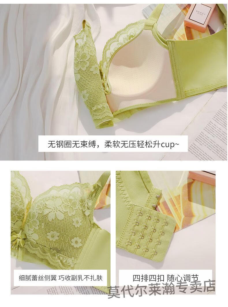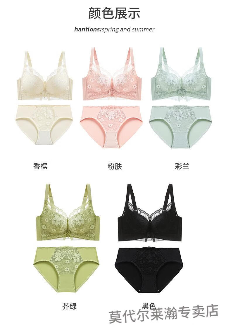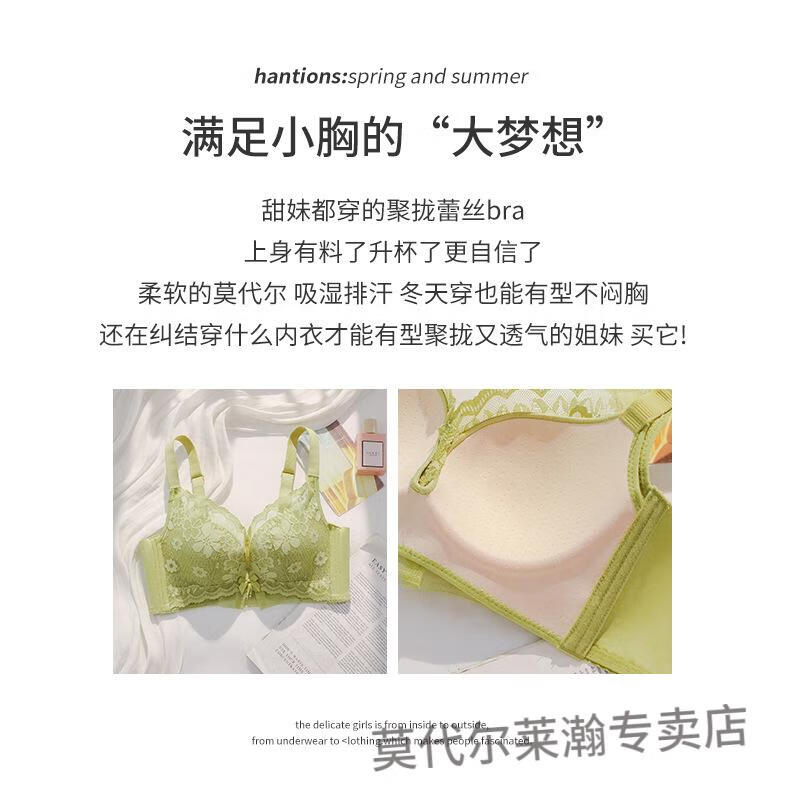 Modal's new thin lace sexy wire-free bra push-up adjustable side breast bra women's set black thin 75A 34B cup