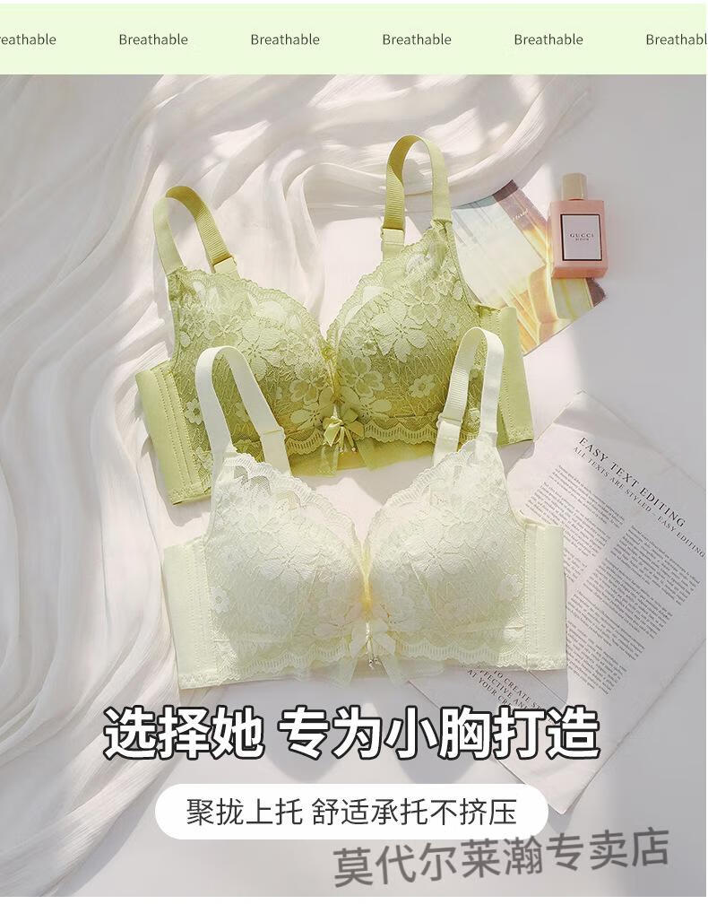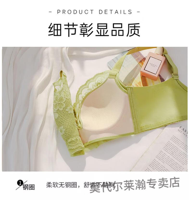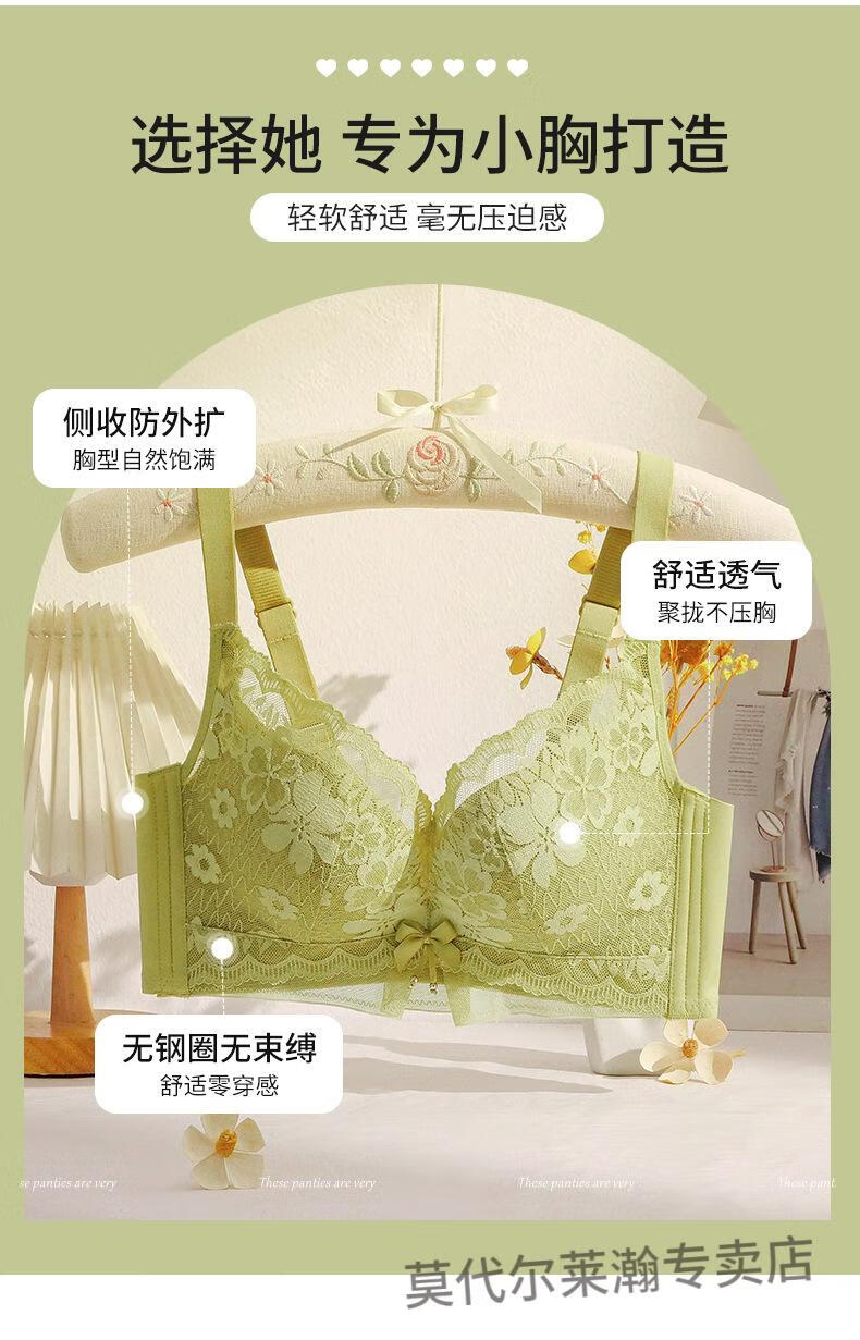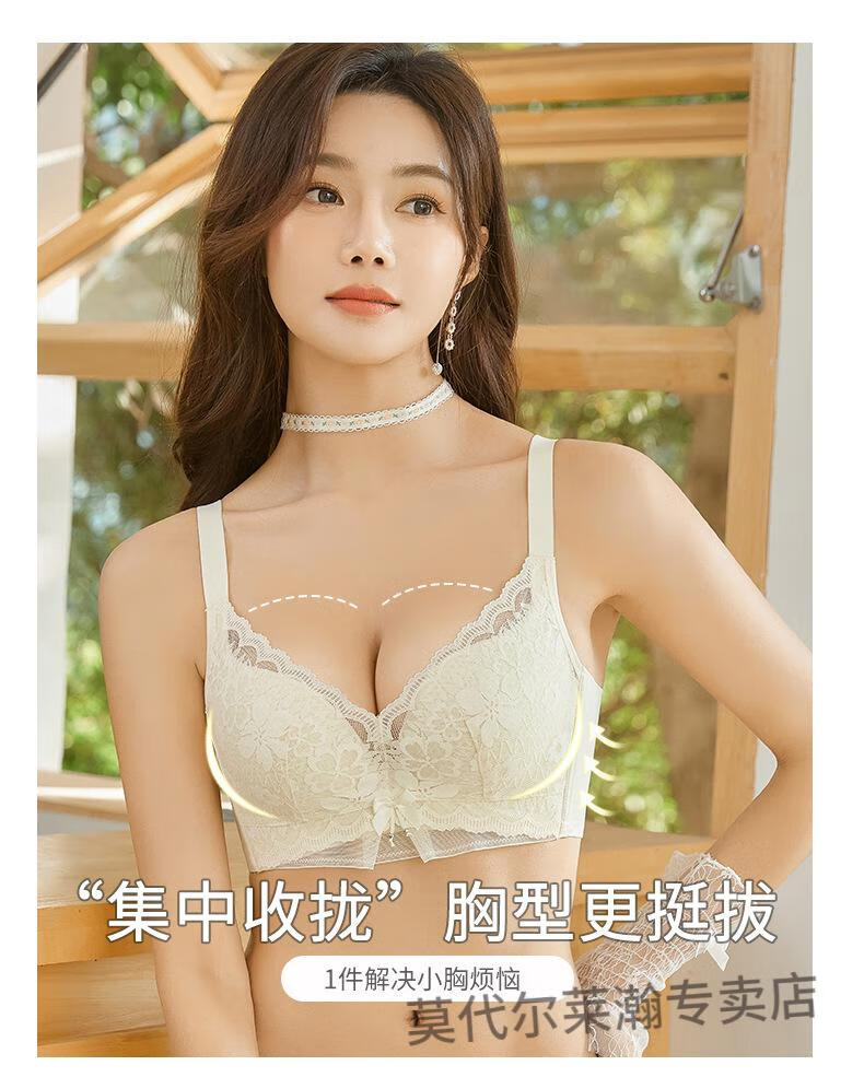 Modal's new thin lace sexy wire-free bra push-up adjustable side breast bra women's set black thin 75A 34B cup
