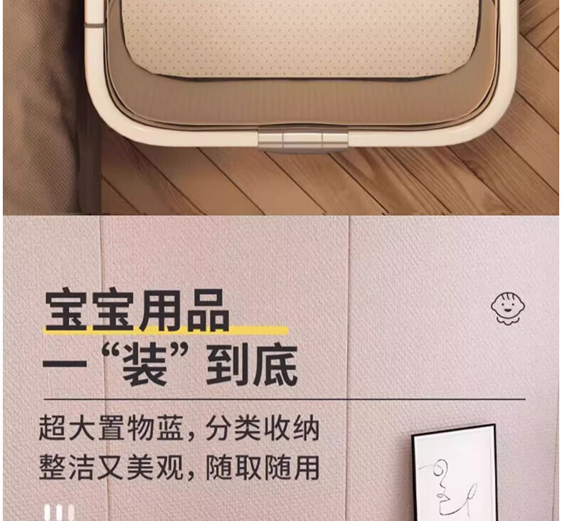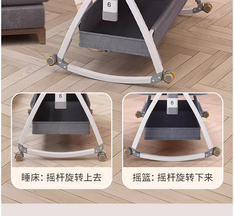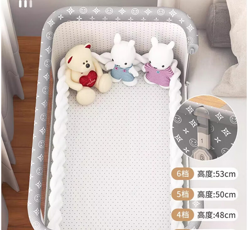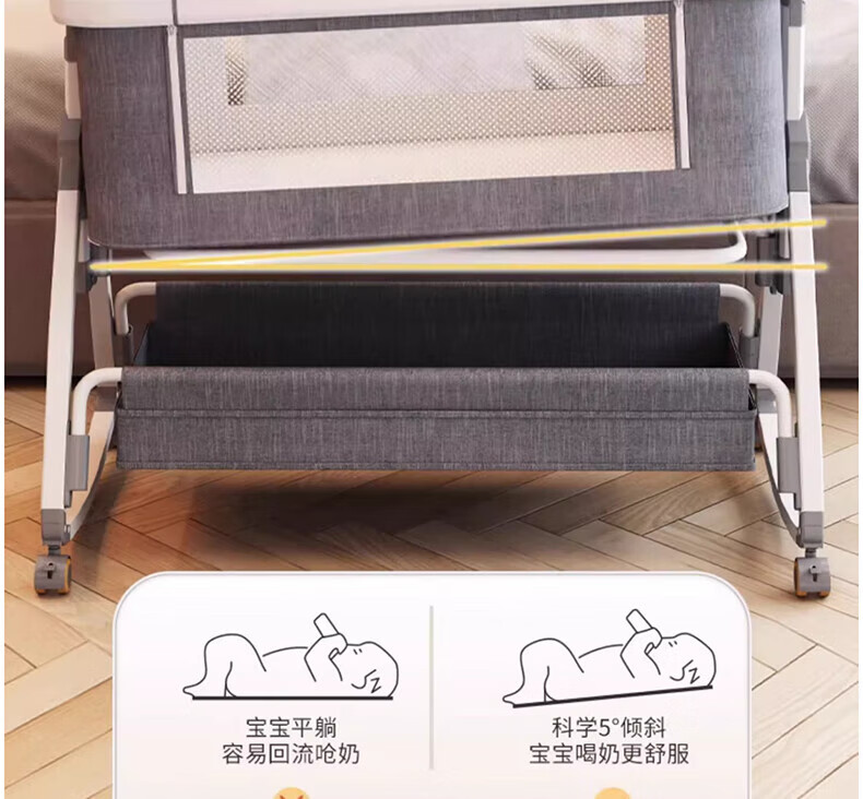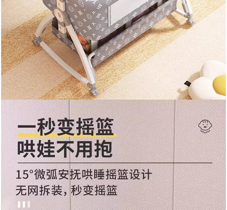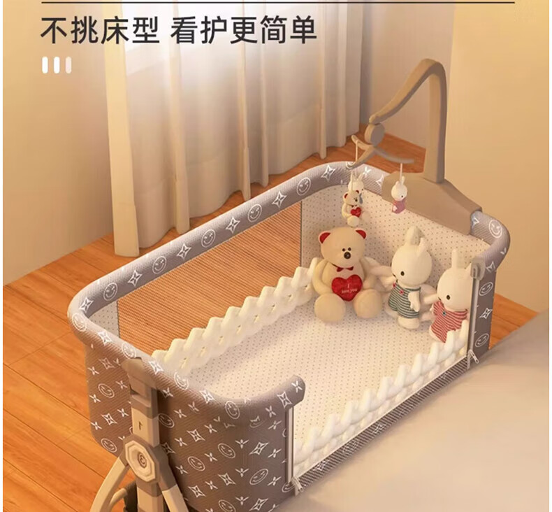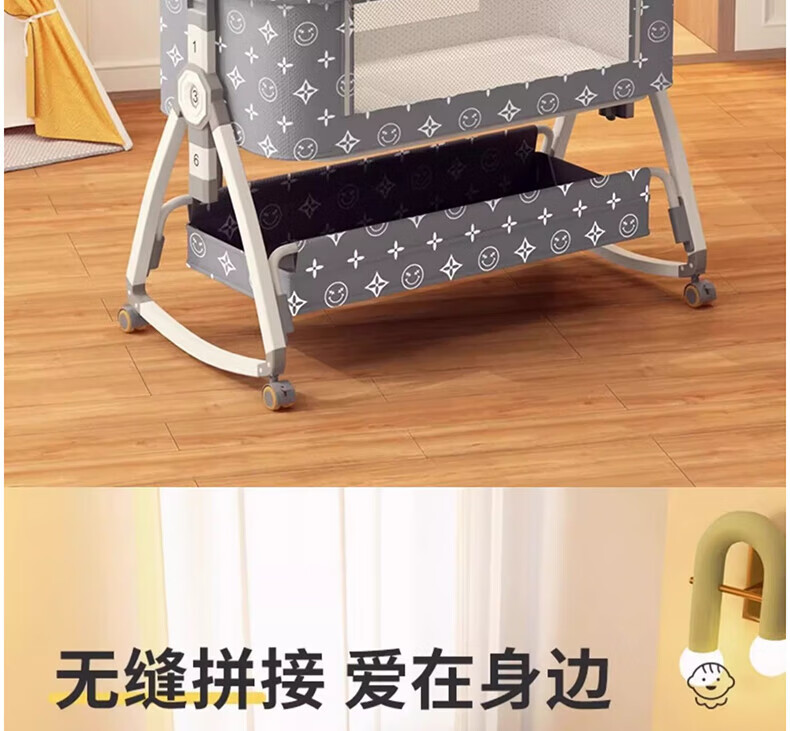 LISM Newborn Crib Multifunctional Bed with Diaper Table, Splicable Bed, Foldable Baby Shaker, Movable High Carbon Steel - Cloud Gray, With Mosquito Net + Diaper Table, Folding Three-in-One Sleeping Device
