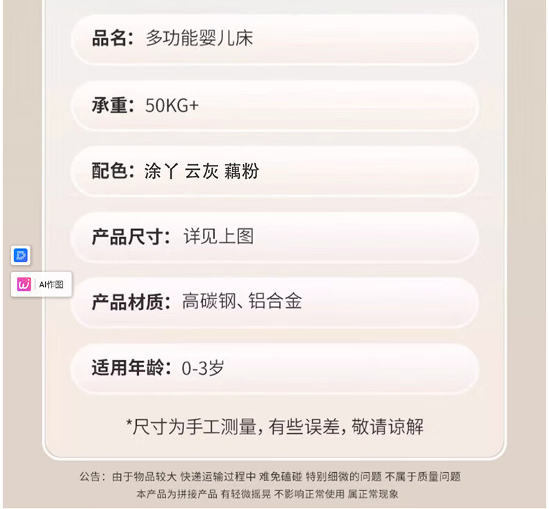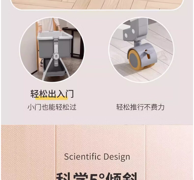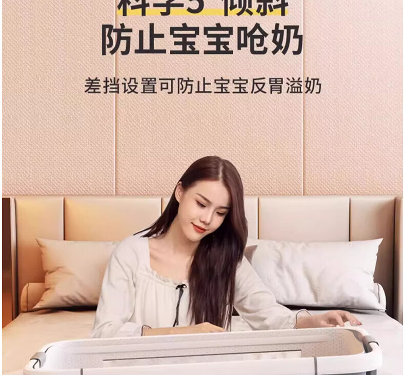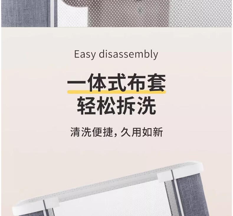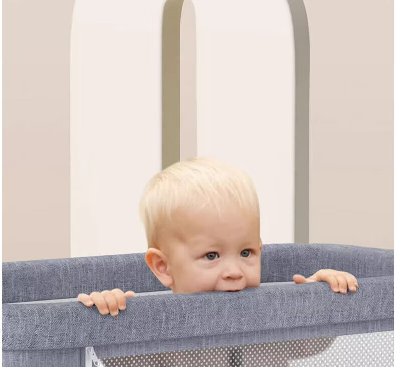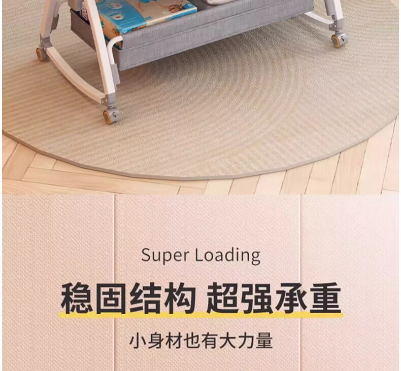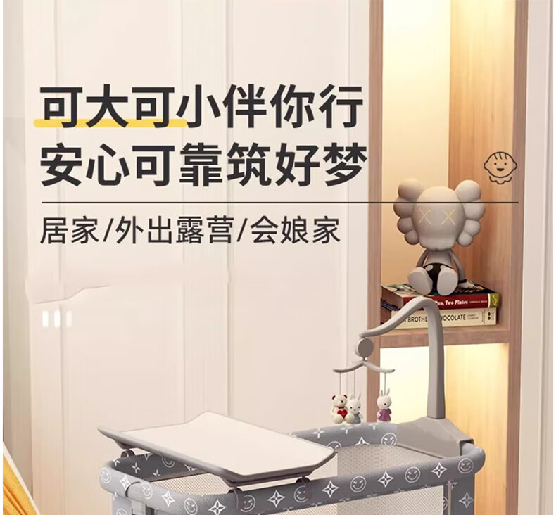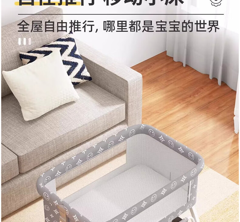 LISM Newborn Crib Multifunctional Bed with Diaper Table, Splicable Bed, Foldable Baby Shaker, Movable High Carbon Steel - Cloud Gray, With Mosquito Net + Diaper Table, Folding Three-in-One Sleeping Device