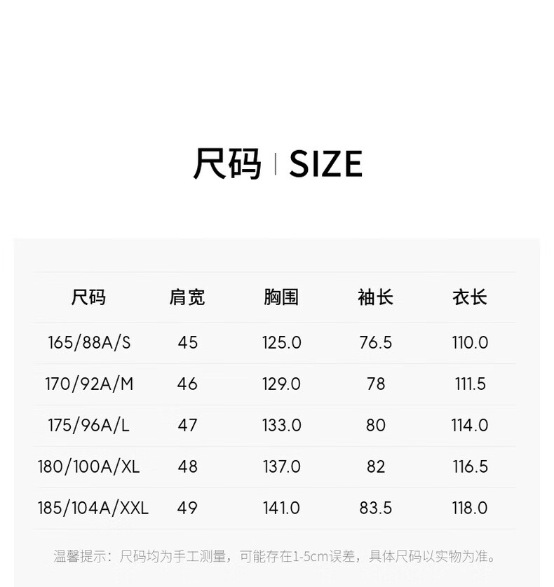 China (cm) 165 / 88-90 170 / 96-98 175 / 108-110 180 / 118-122 185 / 126-130