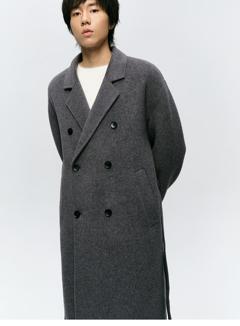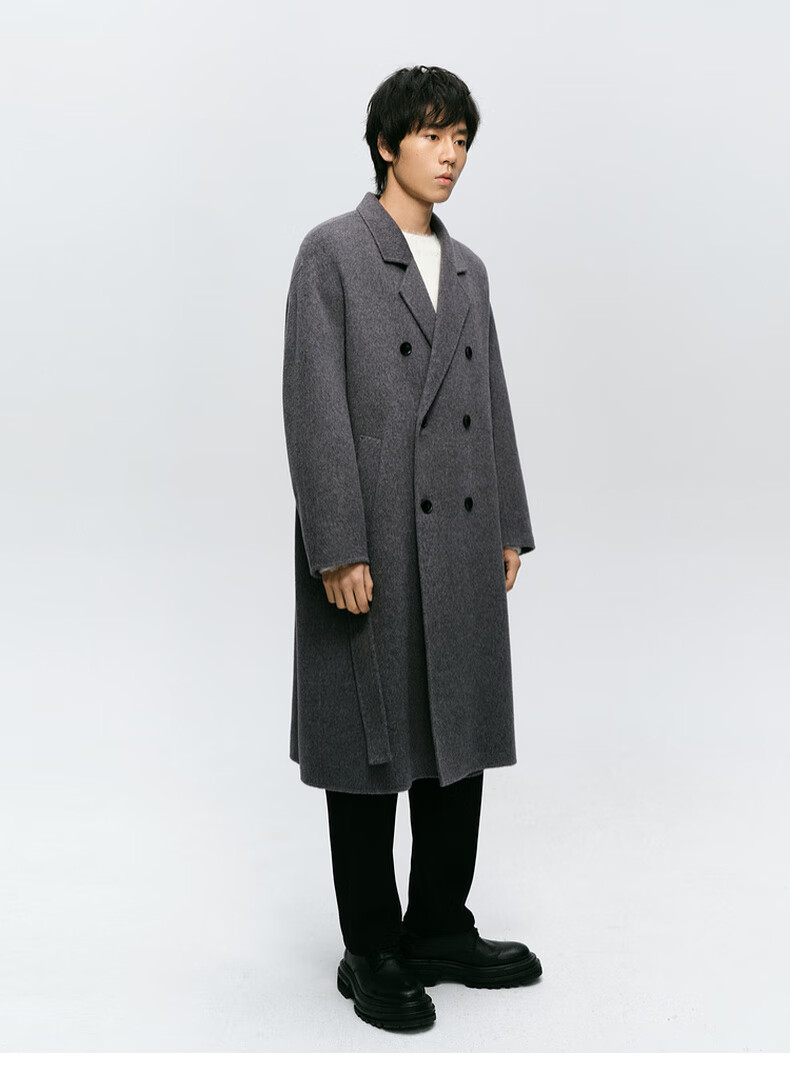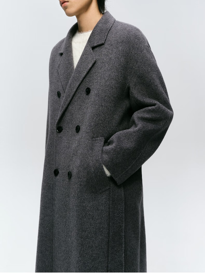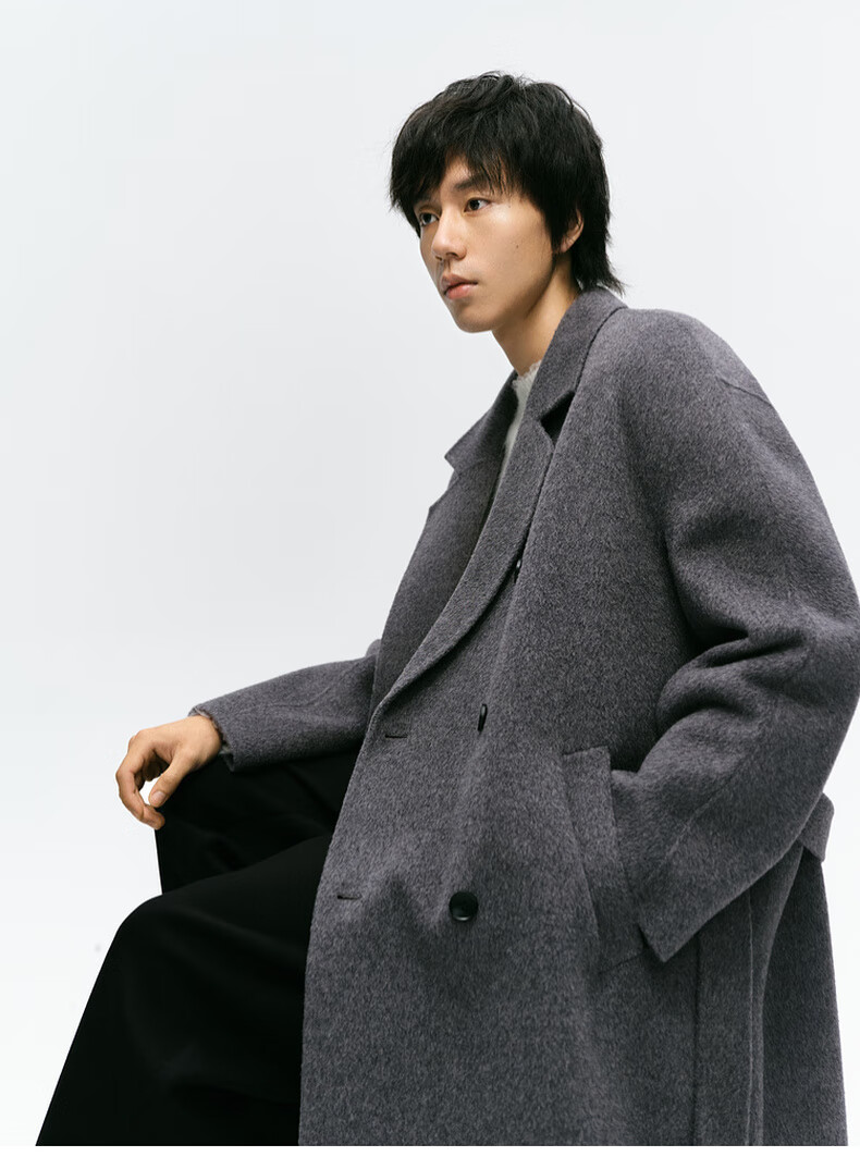 Mai Meng MM Mai Meng men's 24 winter new loose mid-length double-breasted coat woolen coat 9FC170081 Gray S
