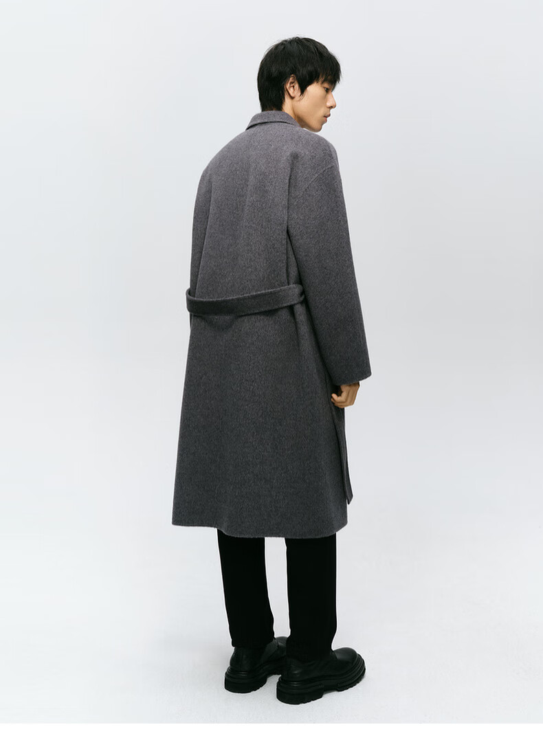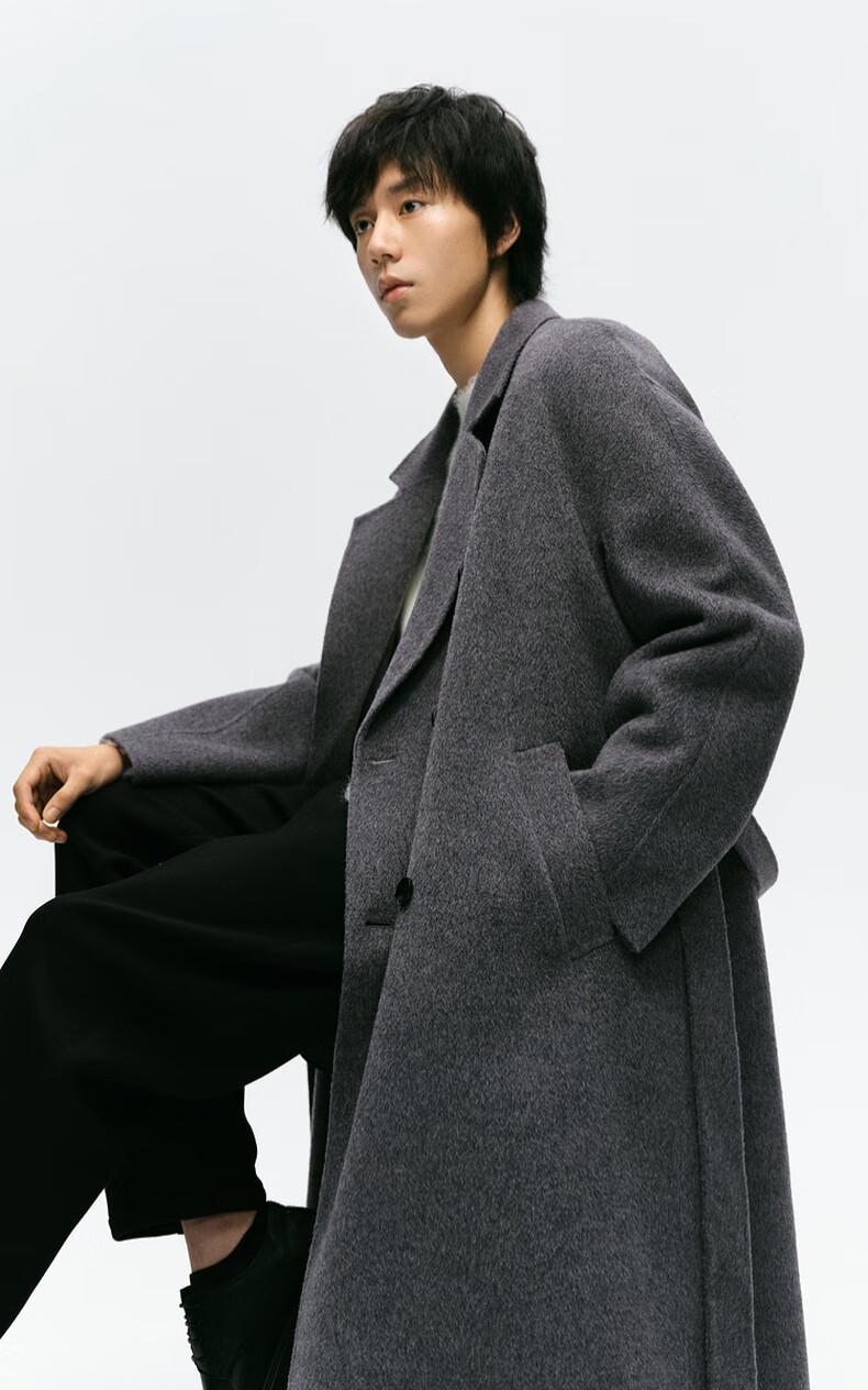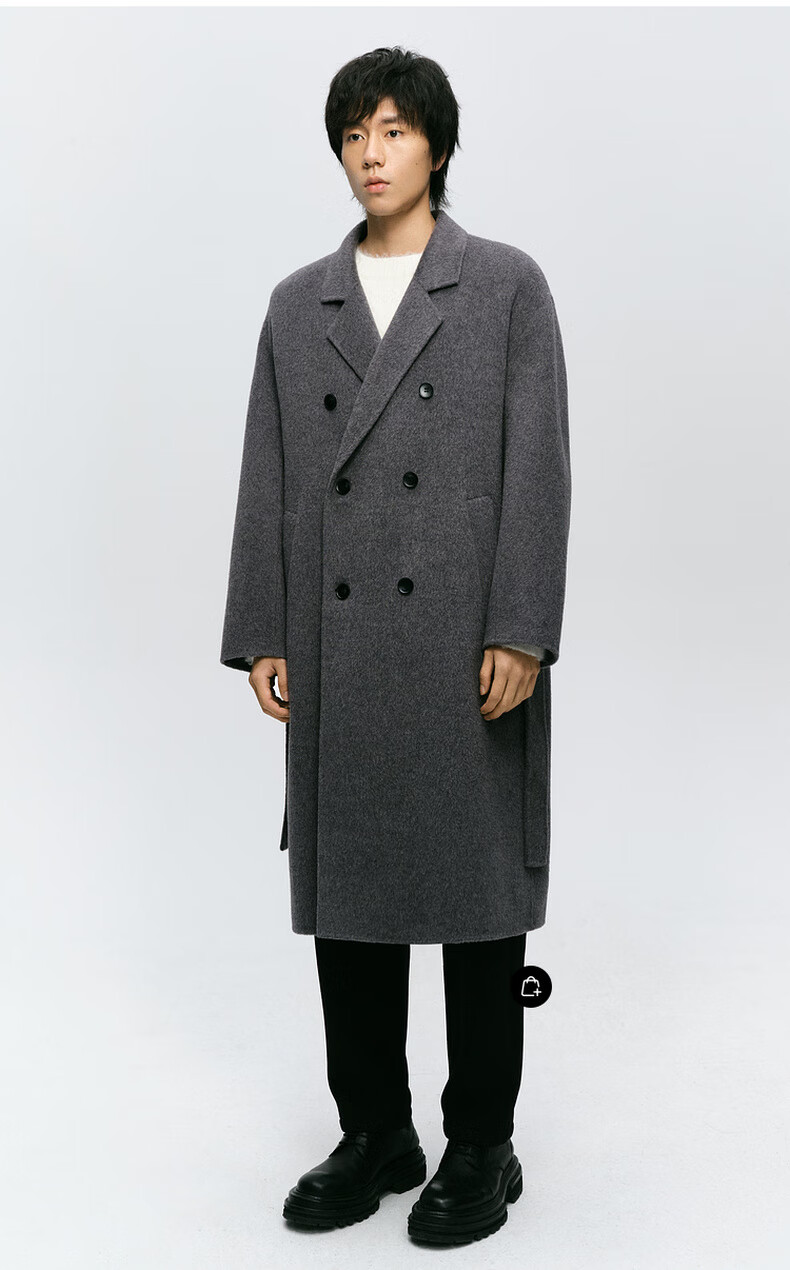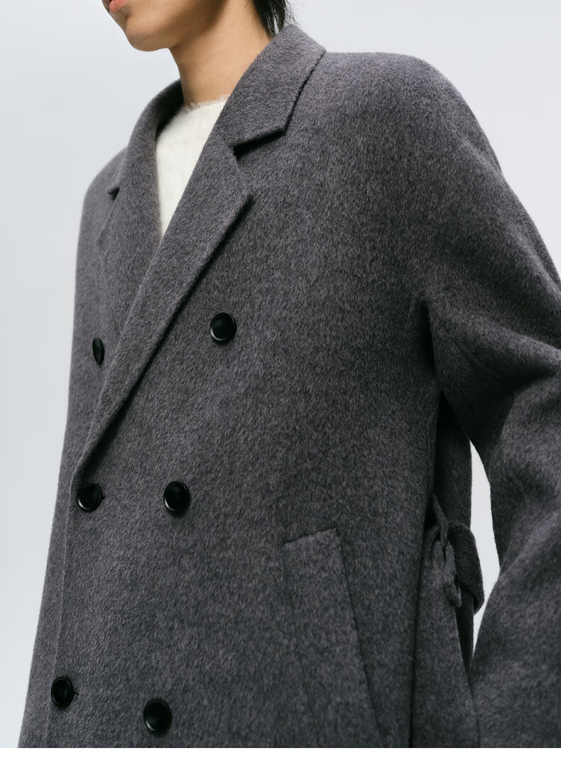 Mai Meng MM Mai Meng men's 24 winter new loose mid-length double-breasted coat woolen coat 9FC170081 Gray S