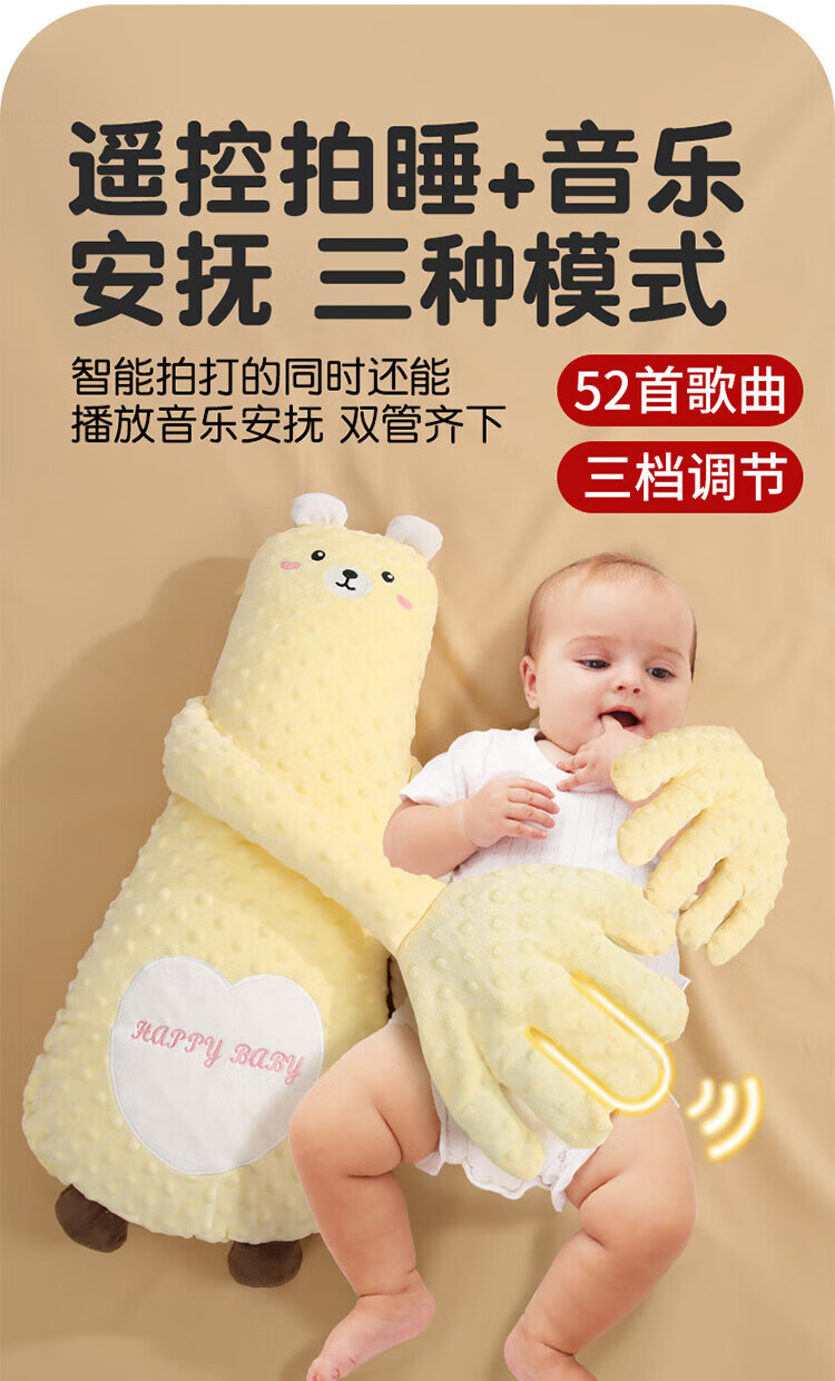 Kyomon baby soothing and coaxing artifact electric patting to fall asleep independently, anti-jumping, sleeping baby, lying down to sleep, soothing pillow M3 cream yellow - remote control music version, focusing on the growth and health of mothers and babies