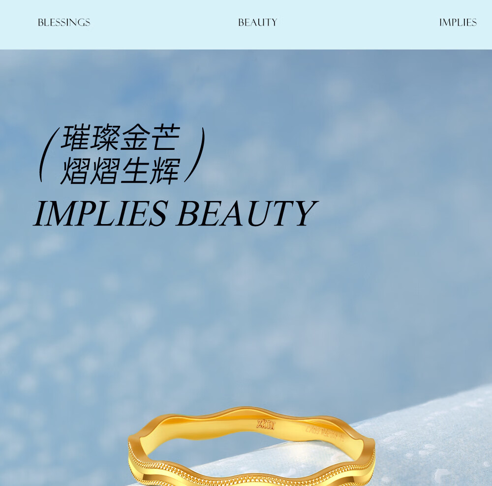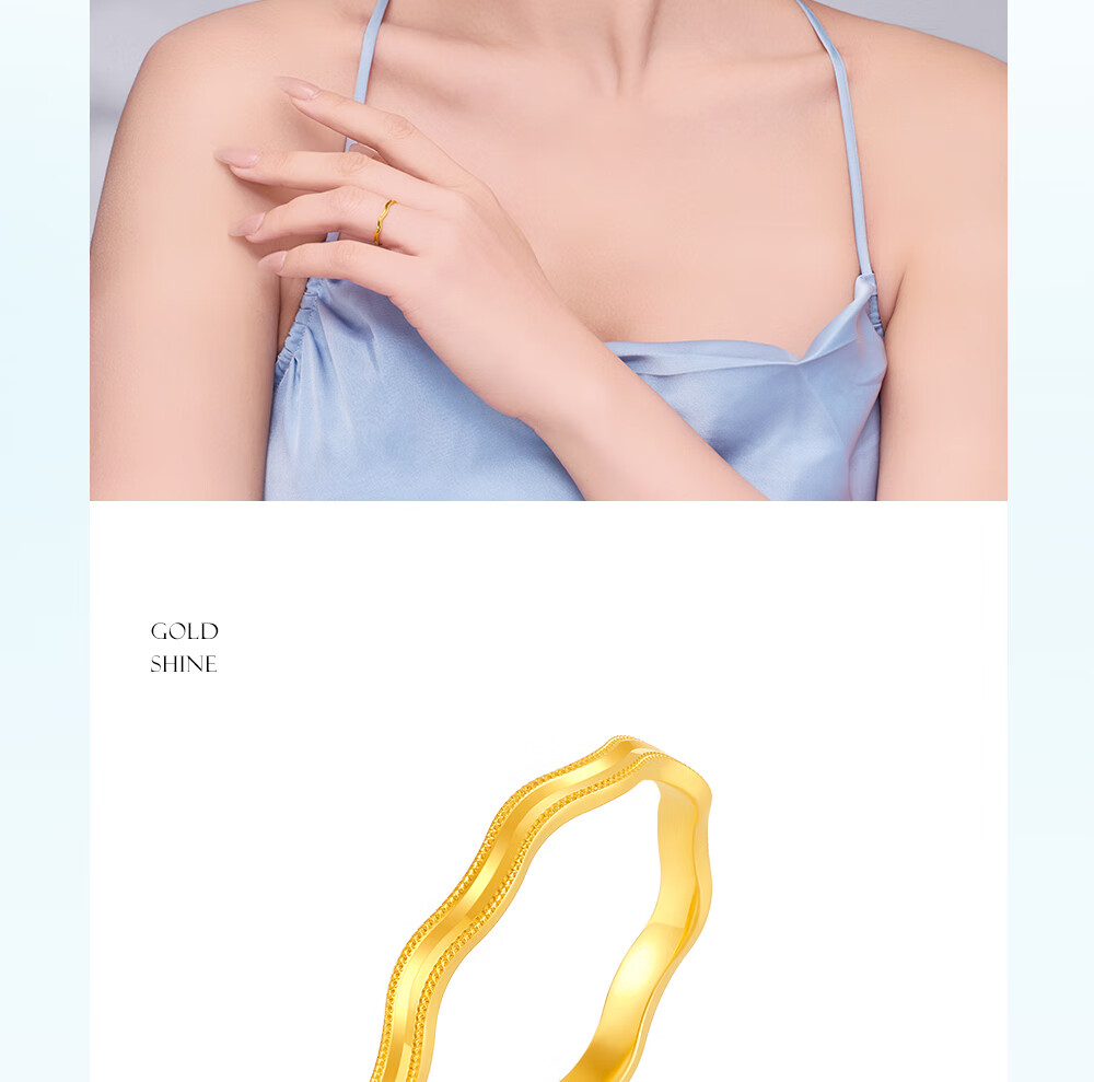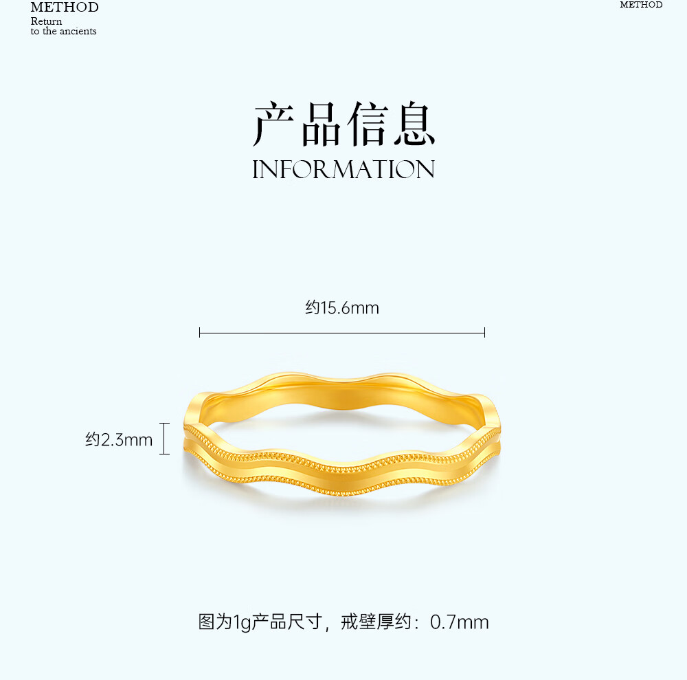 Zhongxin Jewelry Wave Gold Ring Mirror High Gloss 5G Craftsmanship 999 Pure Gold Ring Ring Jewelry Women's Holiday Gift 2.36g (No. 11)