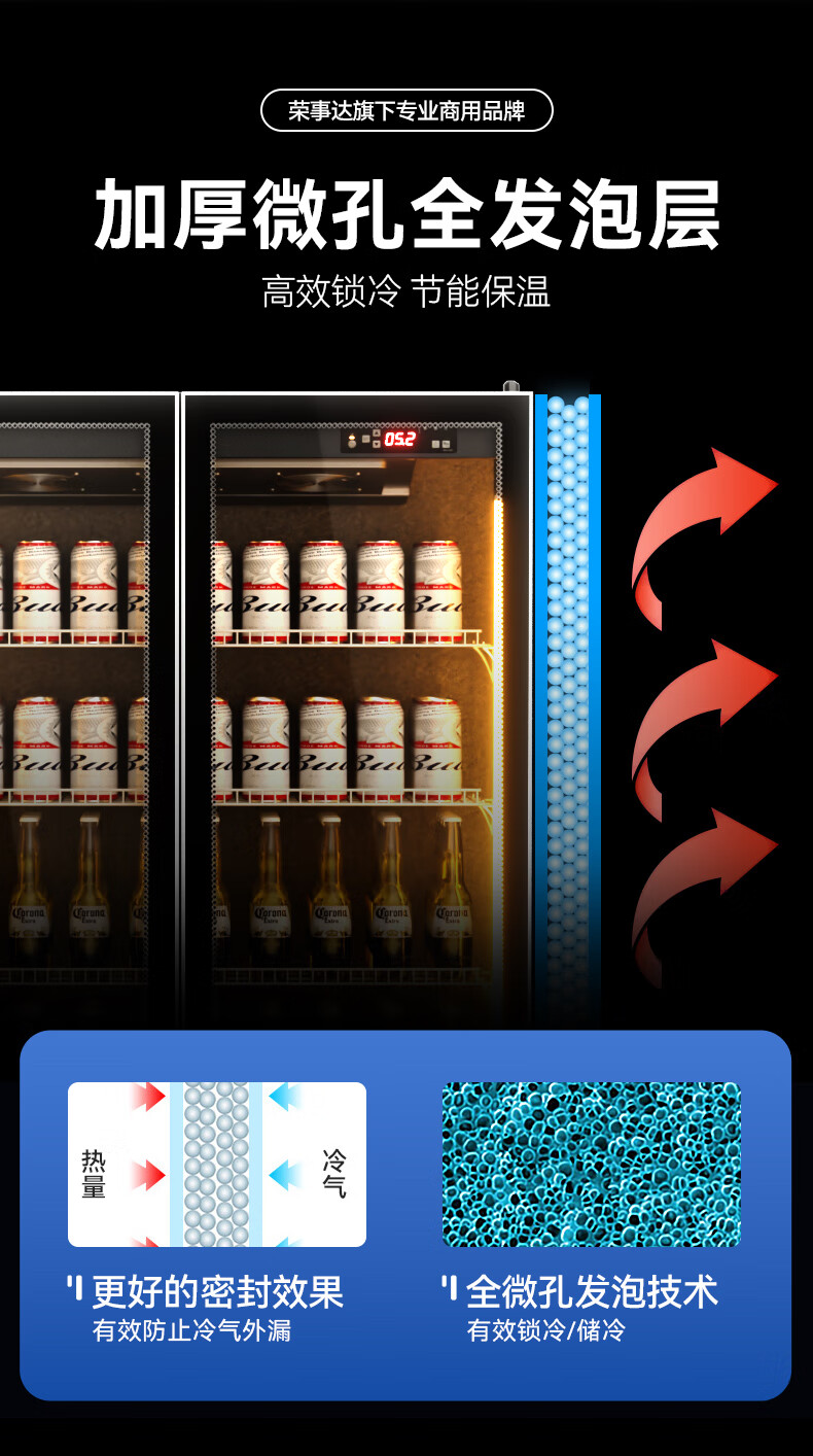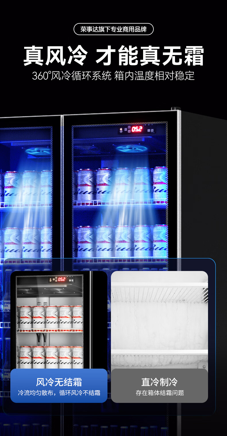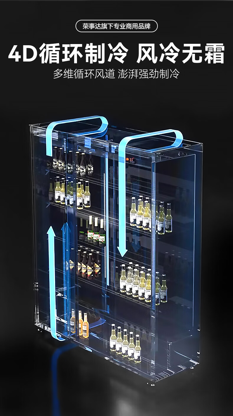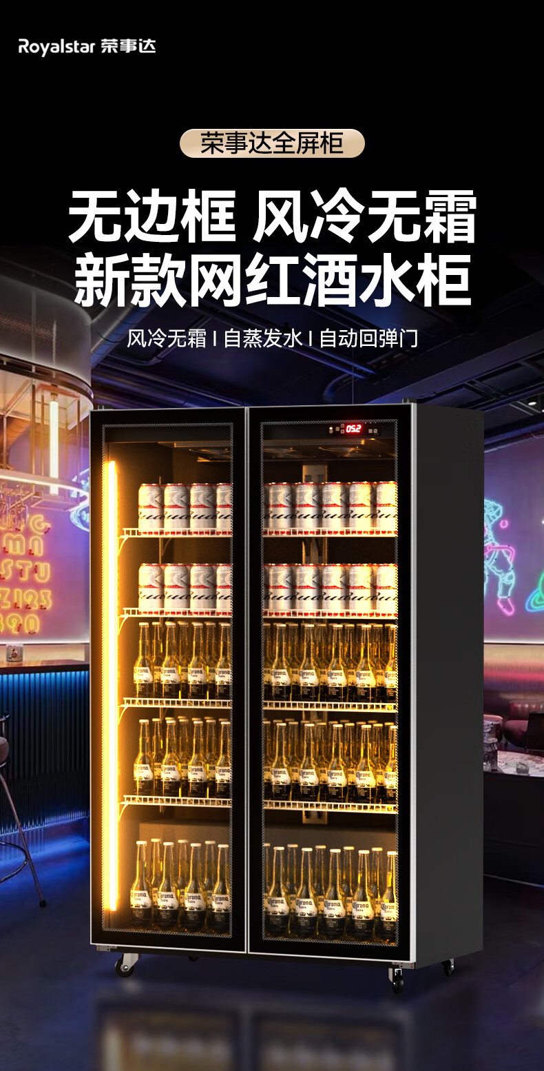 Royalstar display cabinet refrigerated fresh-keeping cabinet beverage beer full-screen cabinet refrigerator air-cooled frost-free commercial fresh-keeping cabinet office Internet celebrity bar supermarket convenience store full-screen glass cabinet Aluminum alloy door frame-620*600*1830 high-end configuration-electric heating wire defogging