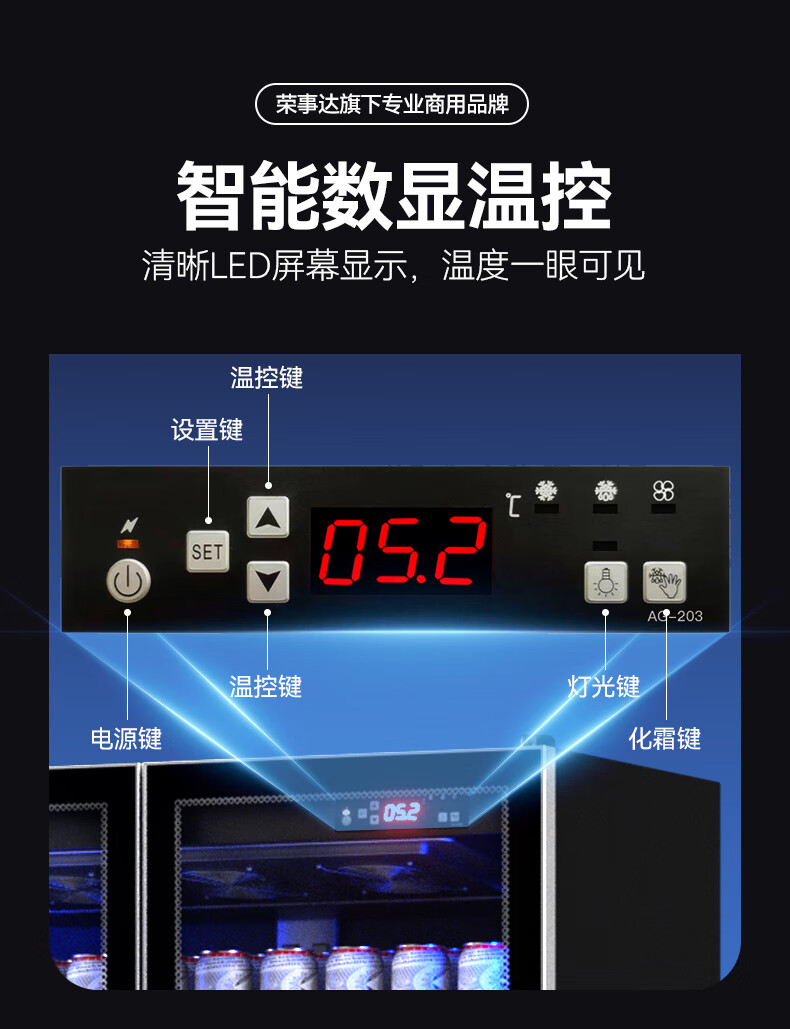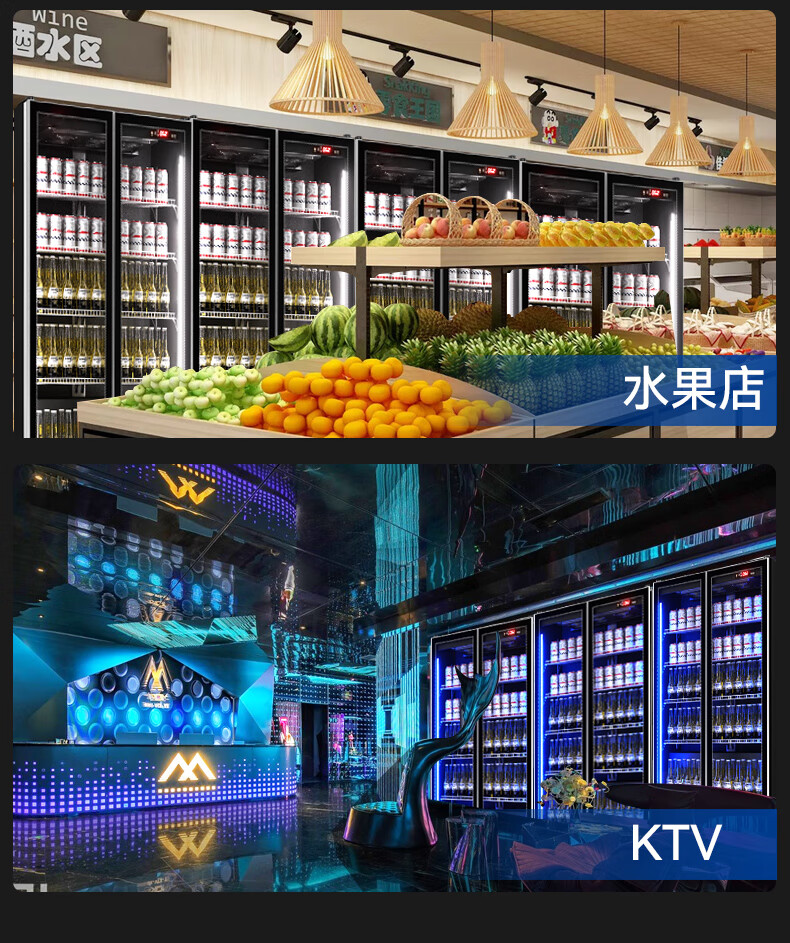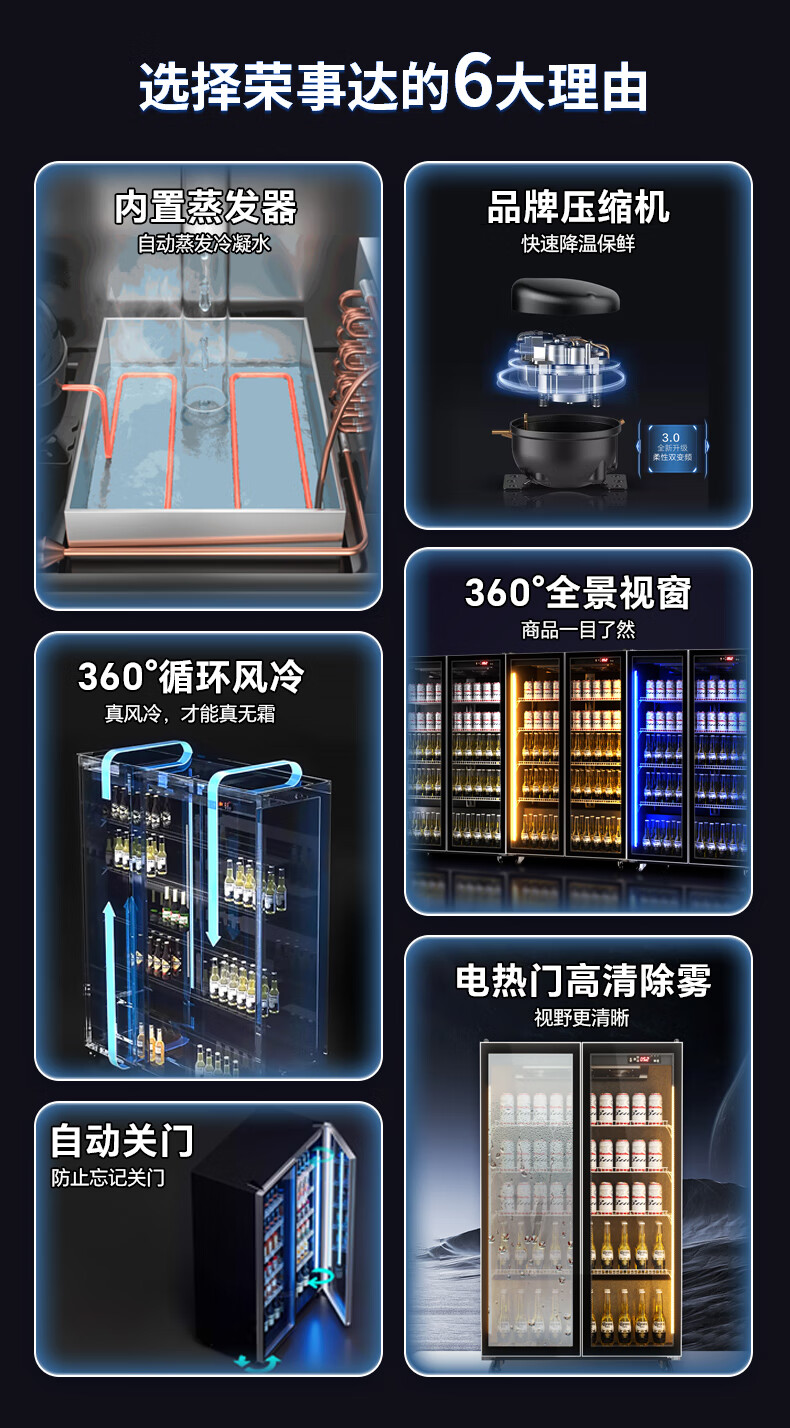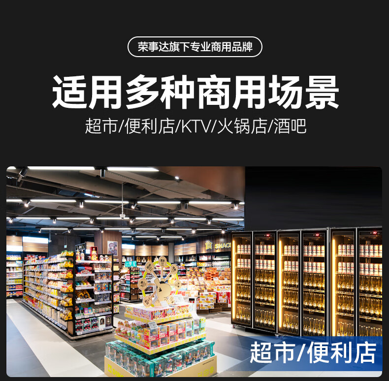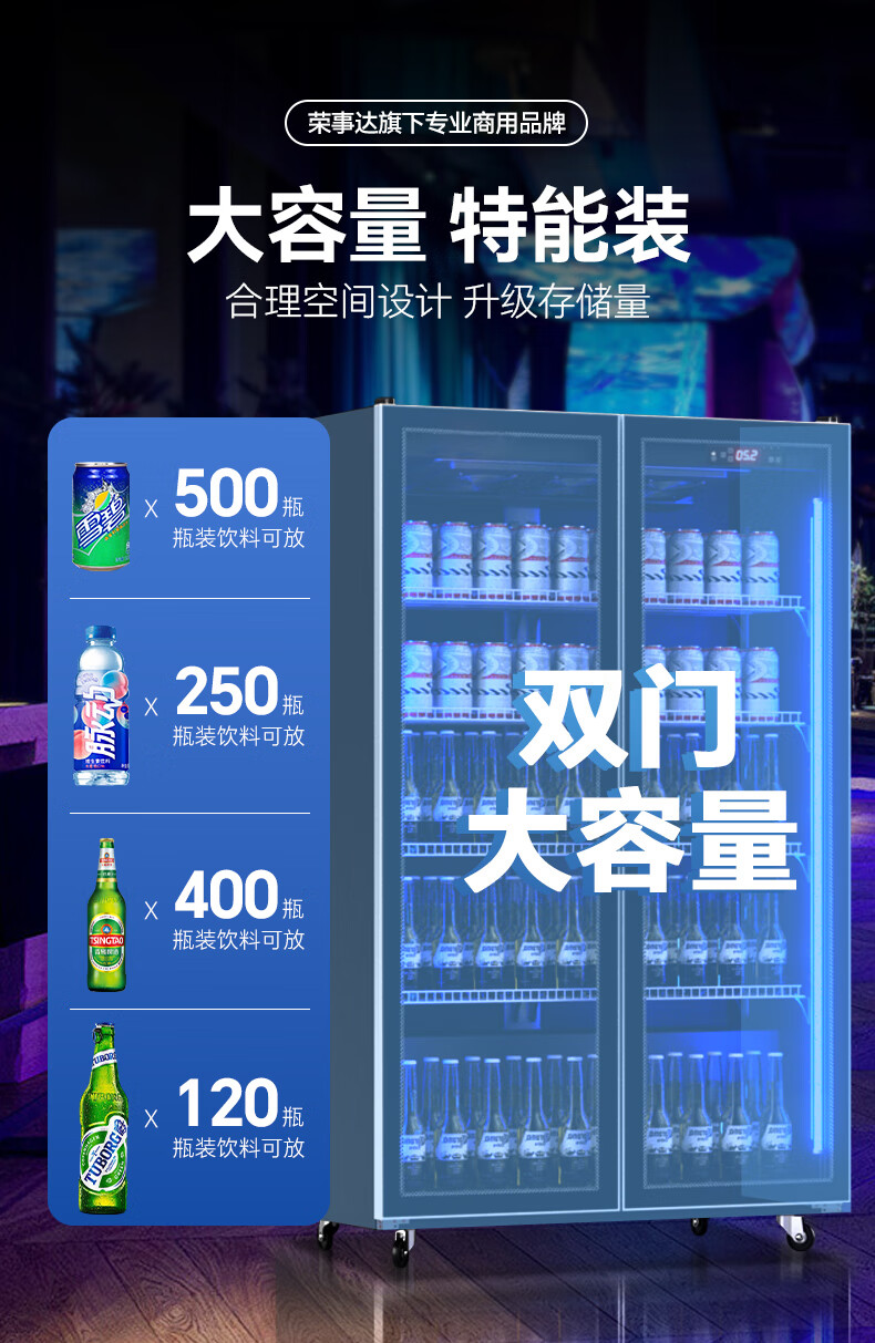 Royalstar display cabinet refrigerated fresh-keeping cabinet beverage beer full-screen cabinet refrigerator air-cooled frost-free commercial fresh-keeping cabinet office Internet celebrity bar supermarket convenience store full-screen glass cabinet Aluminum alloy door frame-620*600*1830 high-end configuration-electric heating wire defogging