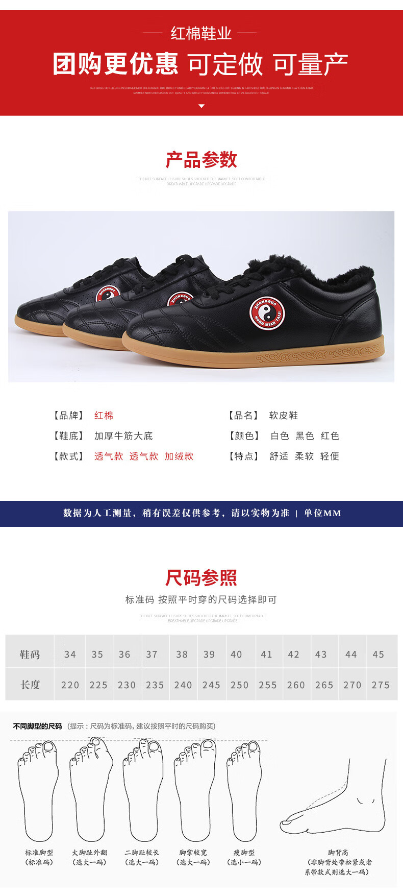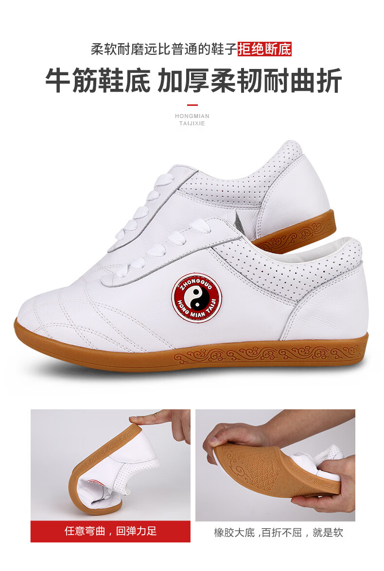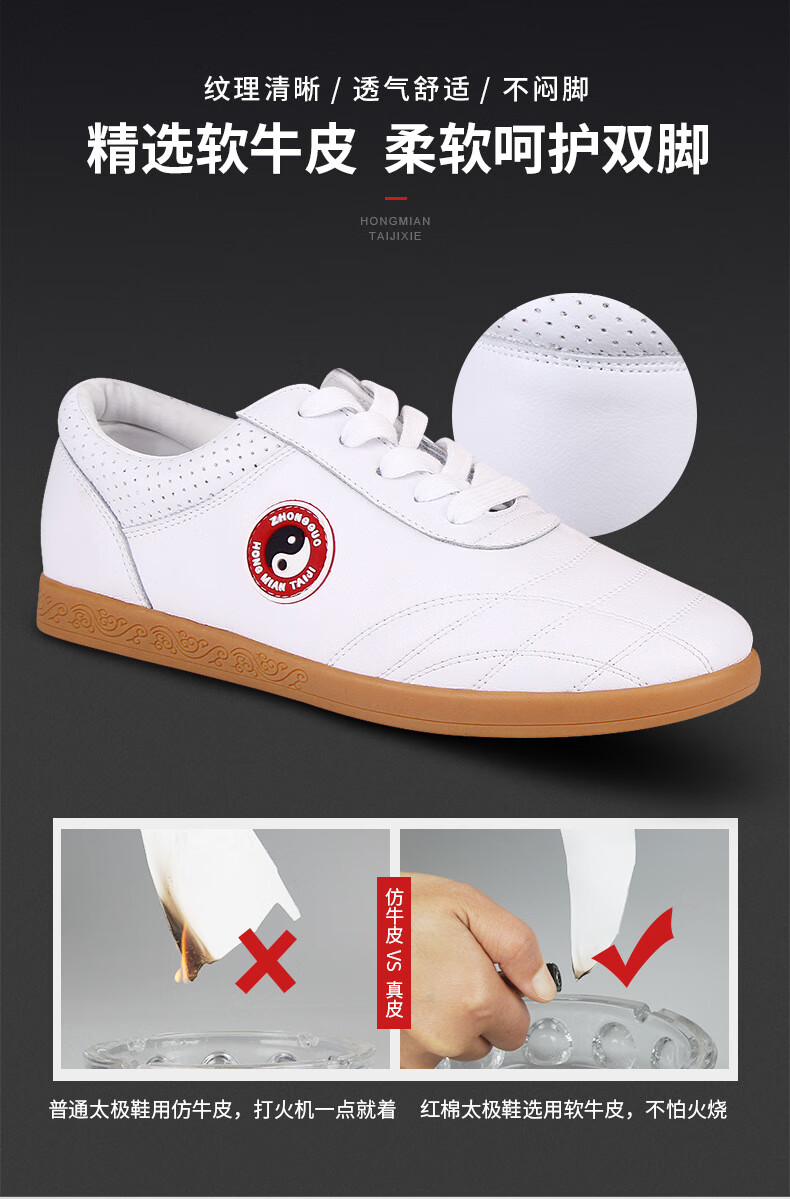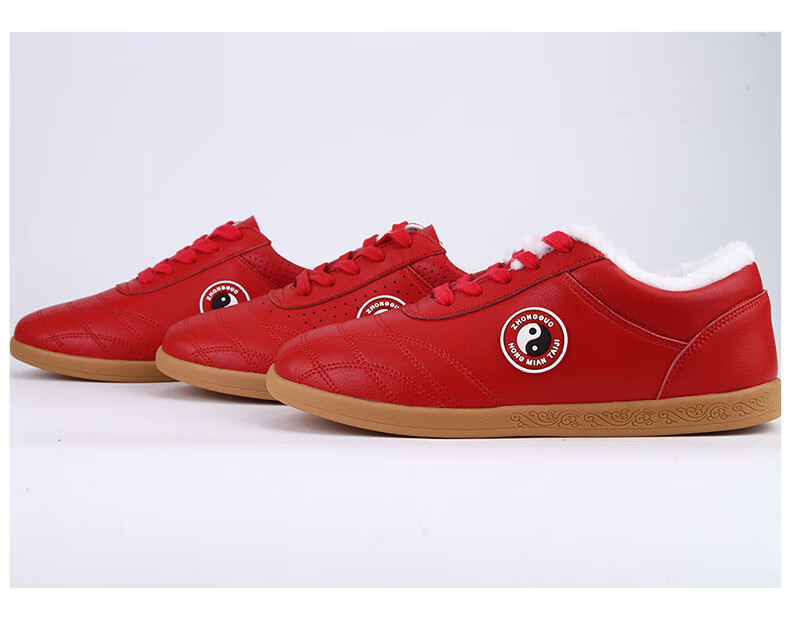 Red cotton Tai Chi shoes for women with tendon bottom and cowhide for autumn and winter plus velvet to keep warm martial arts shoes Tai Chi practice shoes for men sports shoes LP005-M winter plus velvet white 35