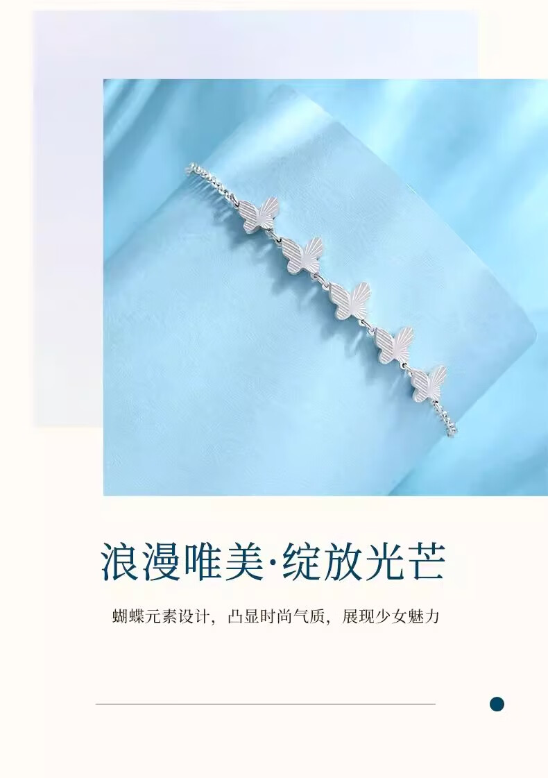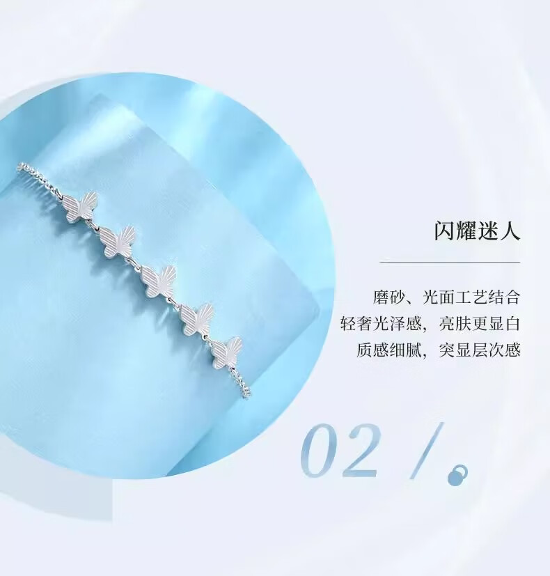 Fat Donglai's same style platinum bracelet pt950 five butterflies for women new niche exquisite bracelet with temperament as a gift for girlfriend's birthday five butterflies bracelet