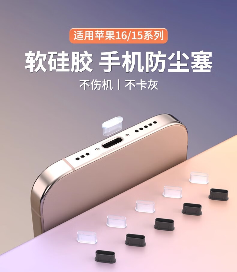 Munian (munian) suitable for Apple 16/15 silicone dustproof plug mobile phone charging port iPhone15 tail plug protective plug 16pro dustproof plug 16ProMax power interface accessories typec plug suitable for Apple 15/16 dustproof plug deep space black 5 pieces free storage box