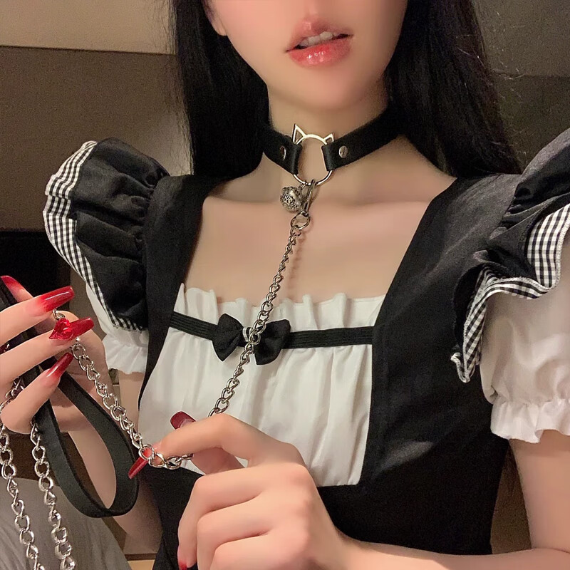 Meng Keduo Bell Necklace Women's Traction Rope Neck Strap Chain Collar Clavicle Chain Neck Ring Choker Necklace Couple Fun Necklace Cat Style Black Bell Collar + Traction Rope
