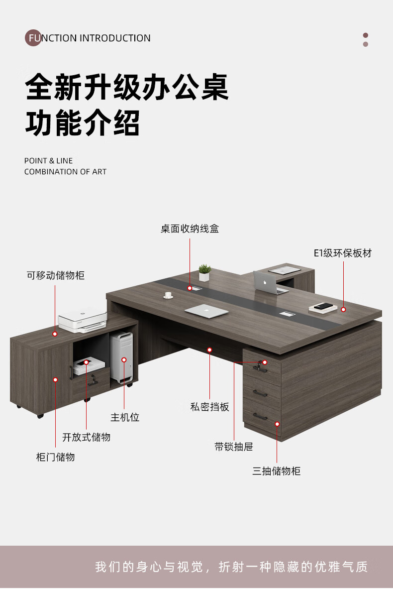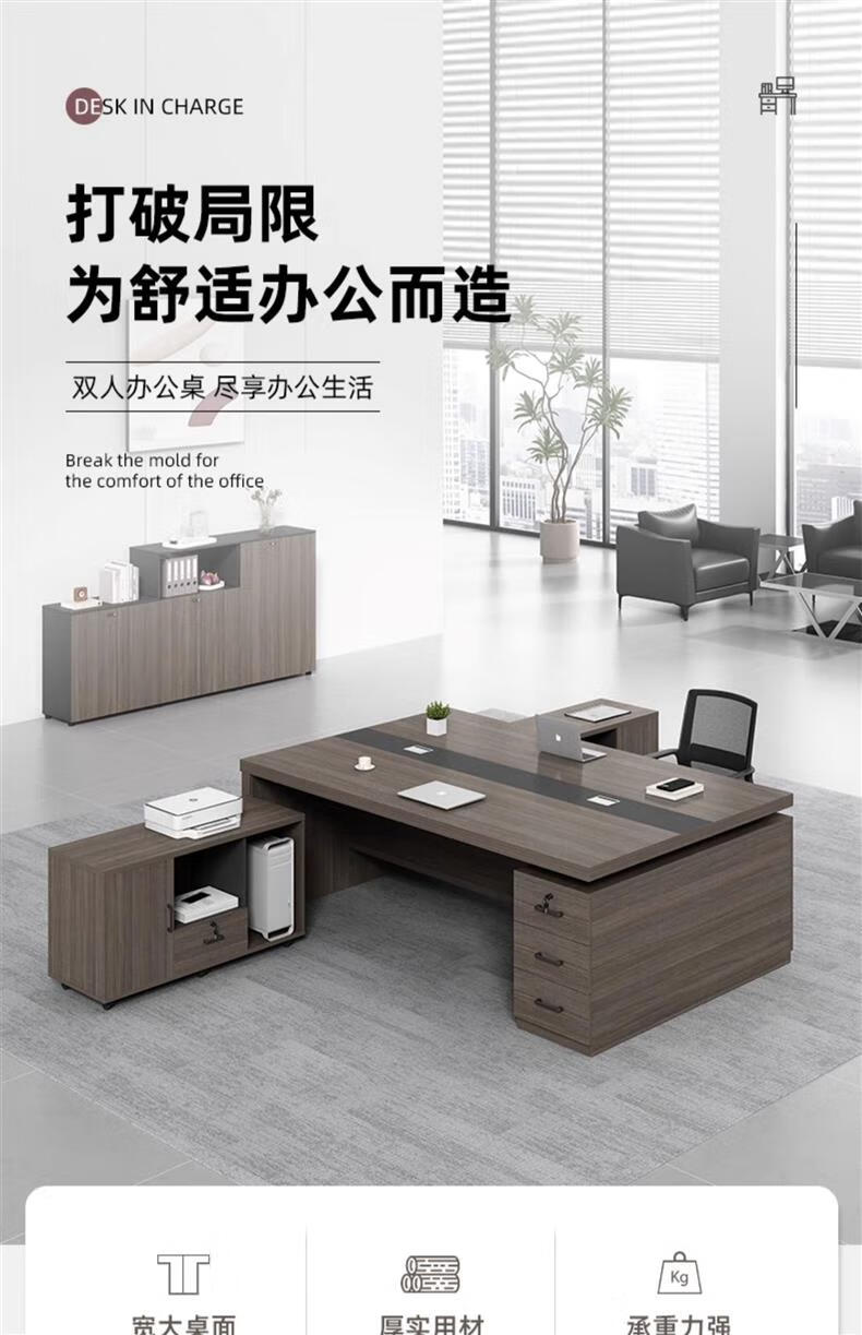 Shusheng boss desk double seat face-to-face office desk and chair combination financial simple modern boss manager desk 1800* 1200 (with movable side cabinet)