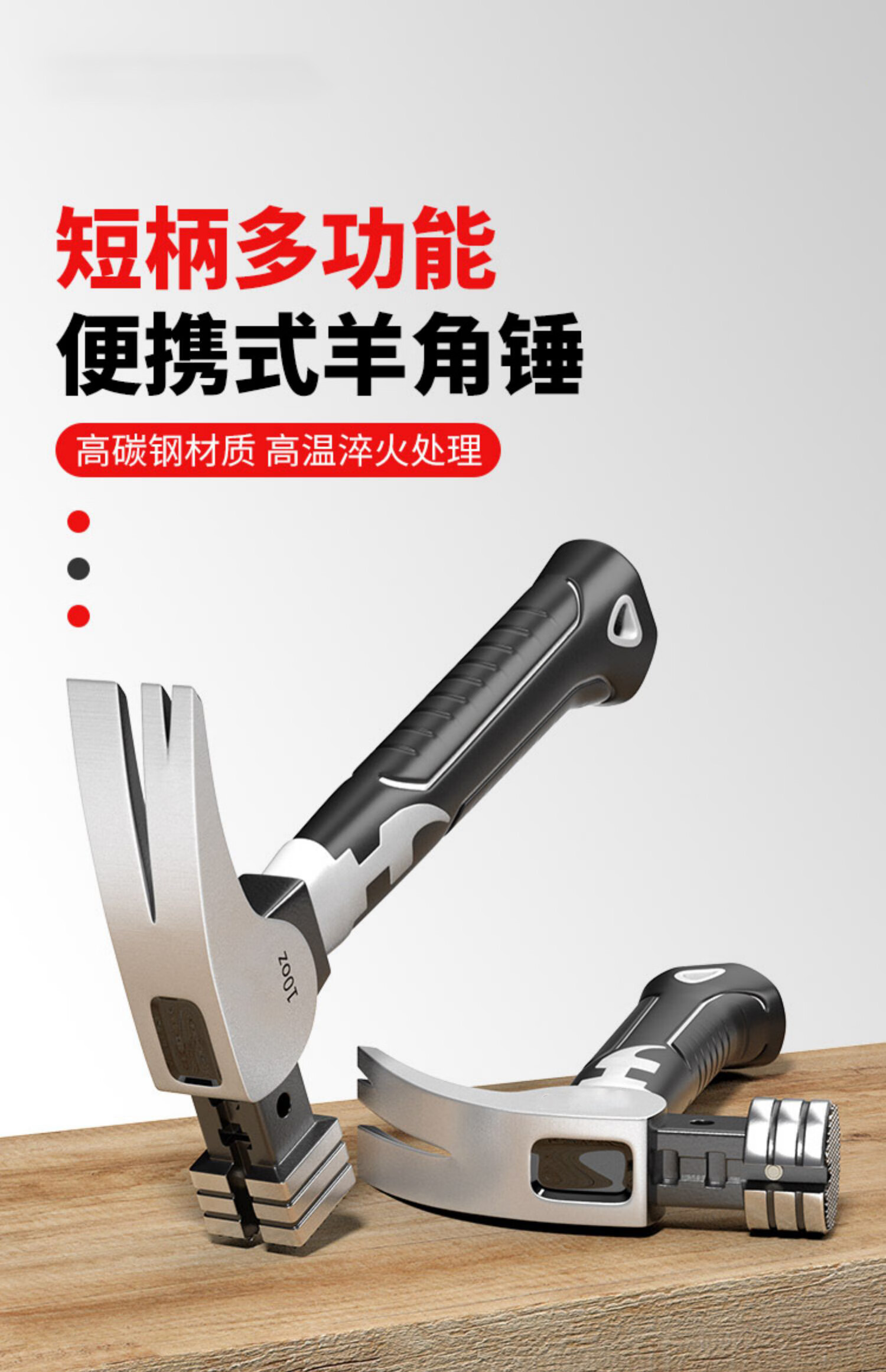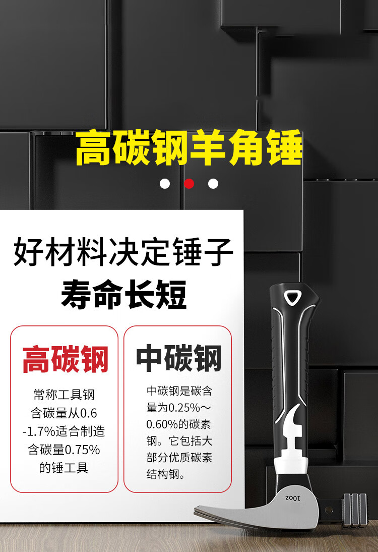 Mini claw hammer, small hammer, special hammer for woodworking, household hammer, multi-functional high carbon steel magnetic suction hammer, nail suction type, Black Warrior mini claw hammer