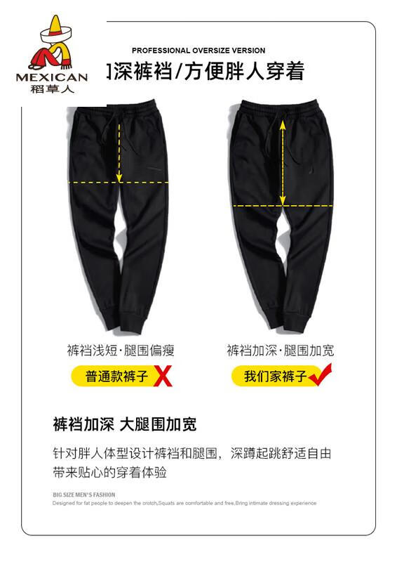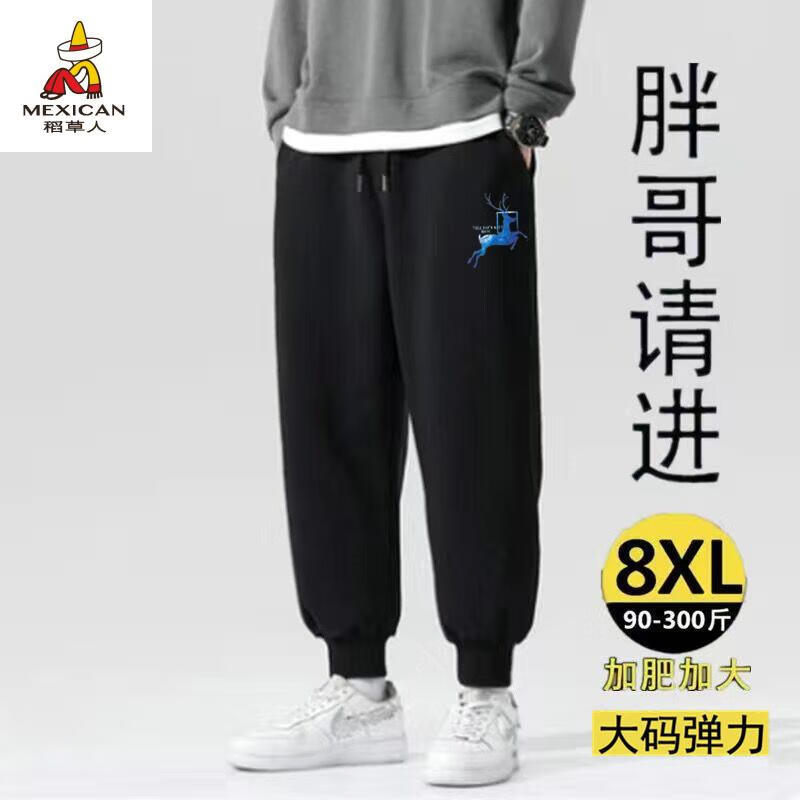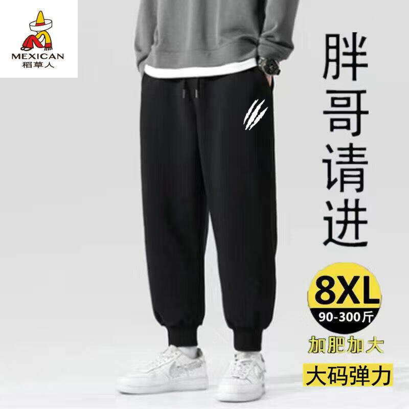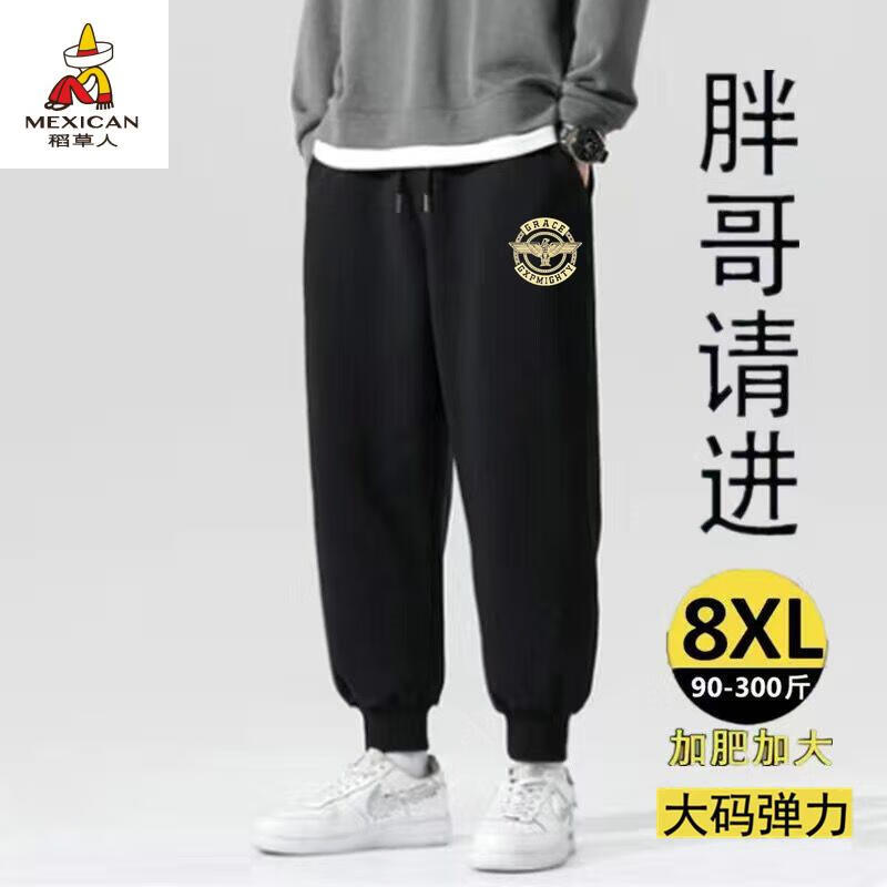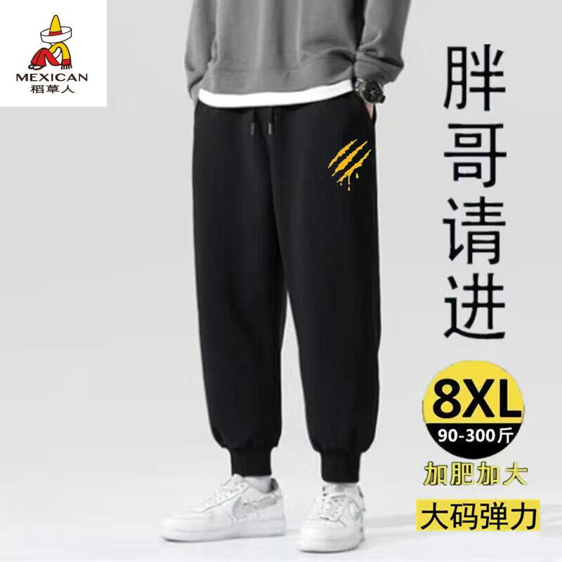 Scarecrow (MEXICAN) Spring and Autumn Sweatpants Men's Fat Loose Stretch Leg Sweatpants Plus Fat Plus Size Casual Harem Work Pants Men Black 6XL 195-220Jin Jin is equal to 0.5 kg