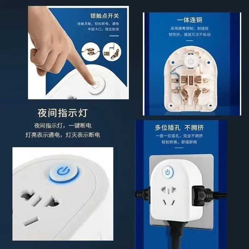 Fat Donglai German quality national standard pure copper socket one to four converter non-blocking switch extension plug socket high power pure copper flame retardant (with light) 1 switch