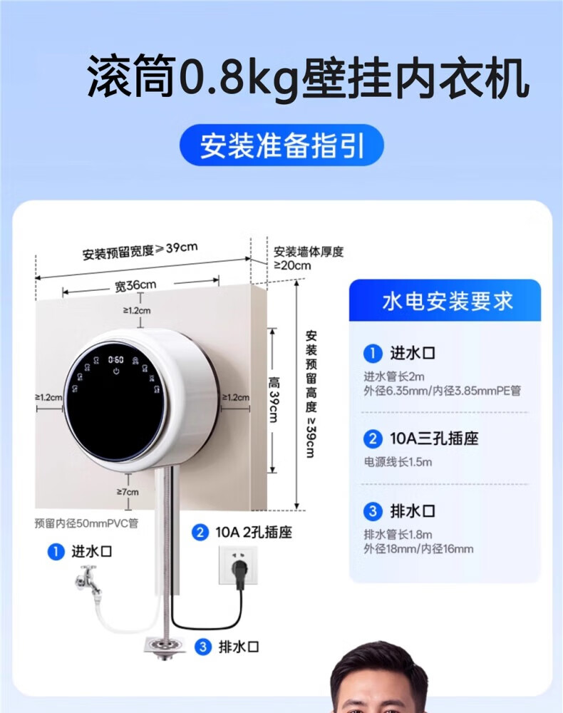 Xiaomi baby baby mini drum washing machine wall-mounted household underwear sterilization small wash-and-dry all-in-one high-temperature cooking and washing fast wash-and-dry + 95 high-temperature cooking and washing + drying and disinfection