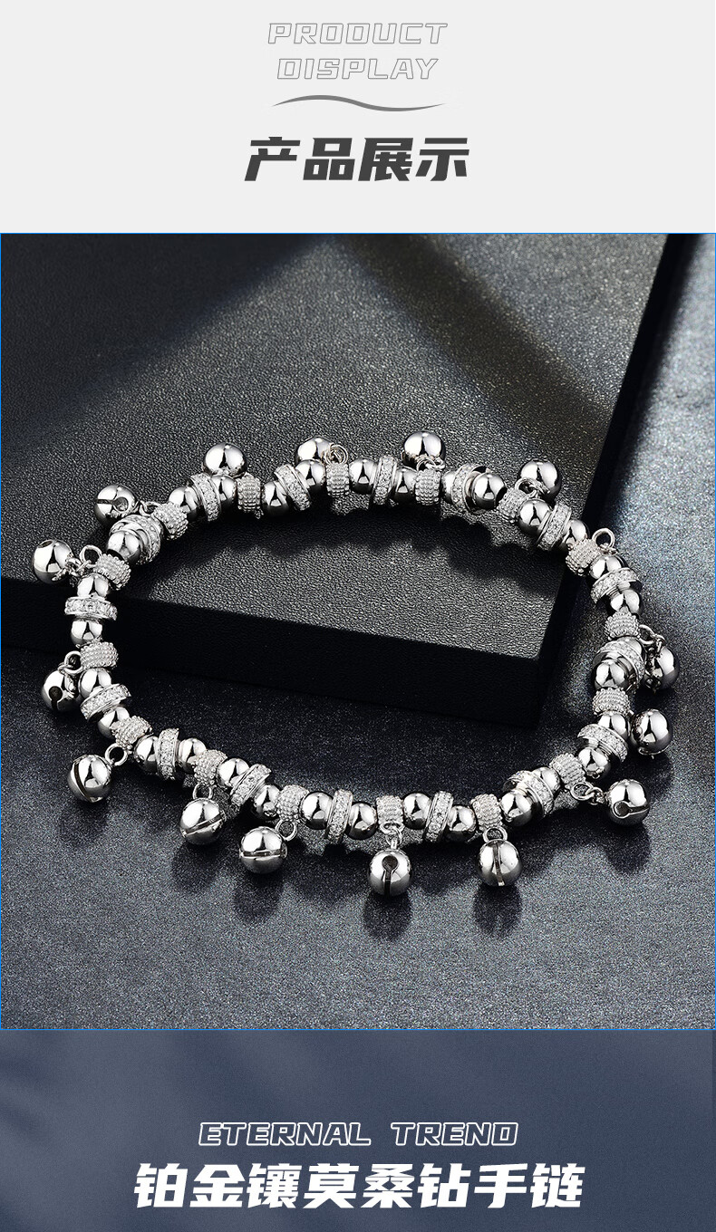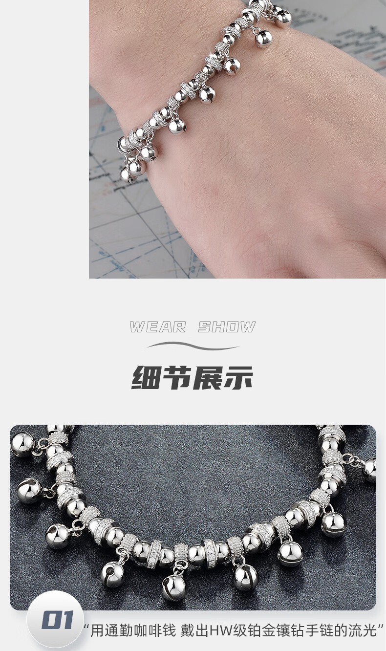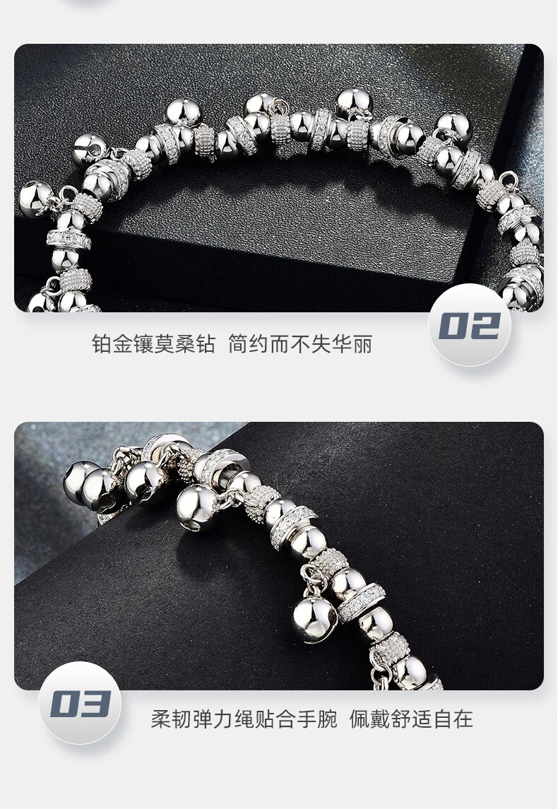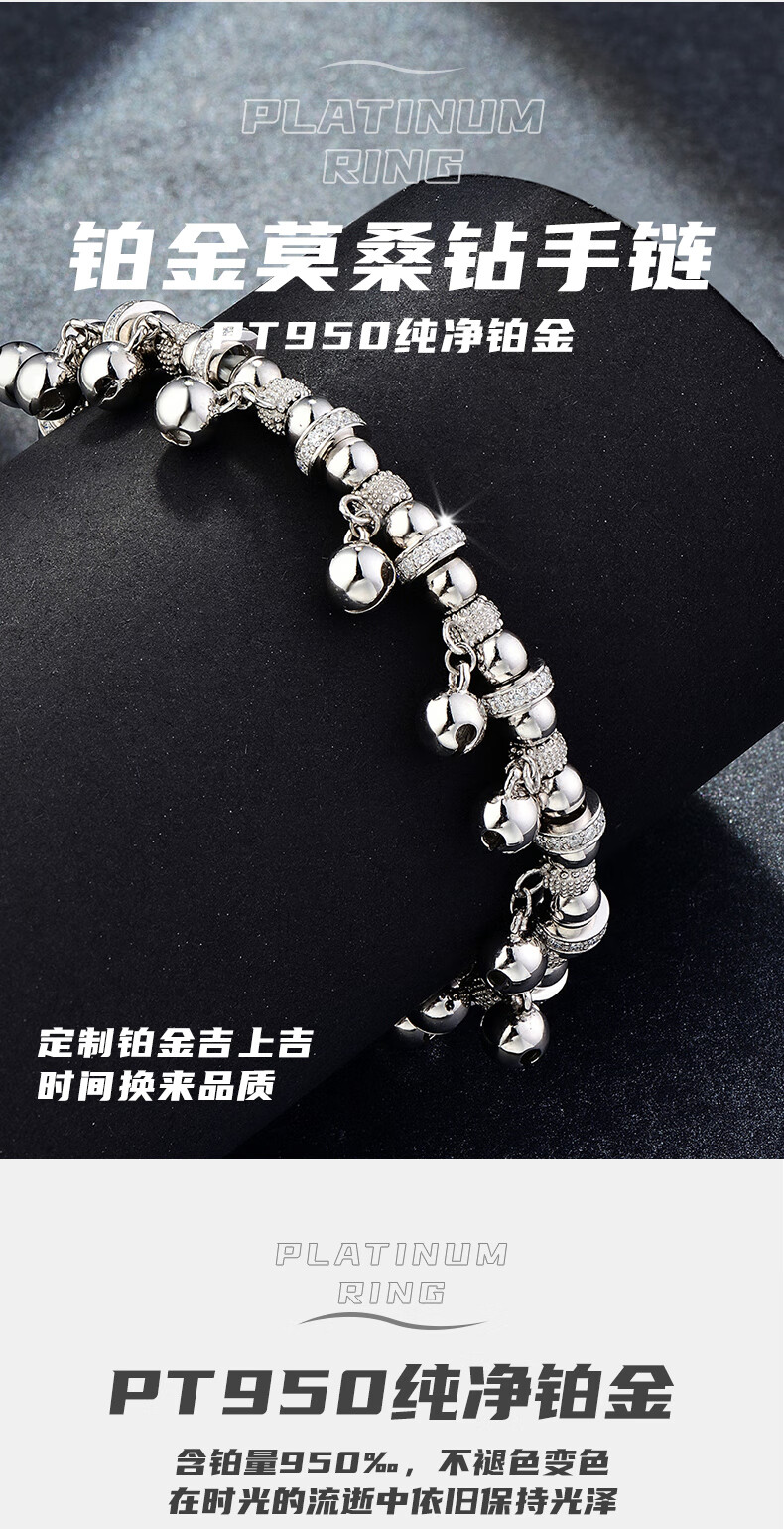 GsunG platinum PT950 bracelet for women with moissanite elastic rope bracelet platinum ball bracelet moissanite small bell Calculated according to the gold price in the store that day