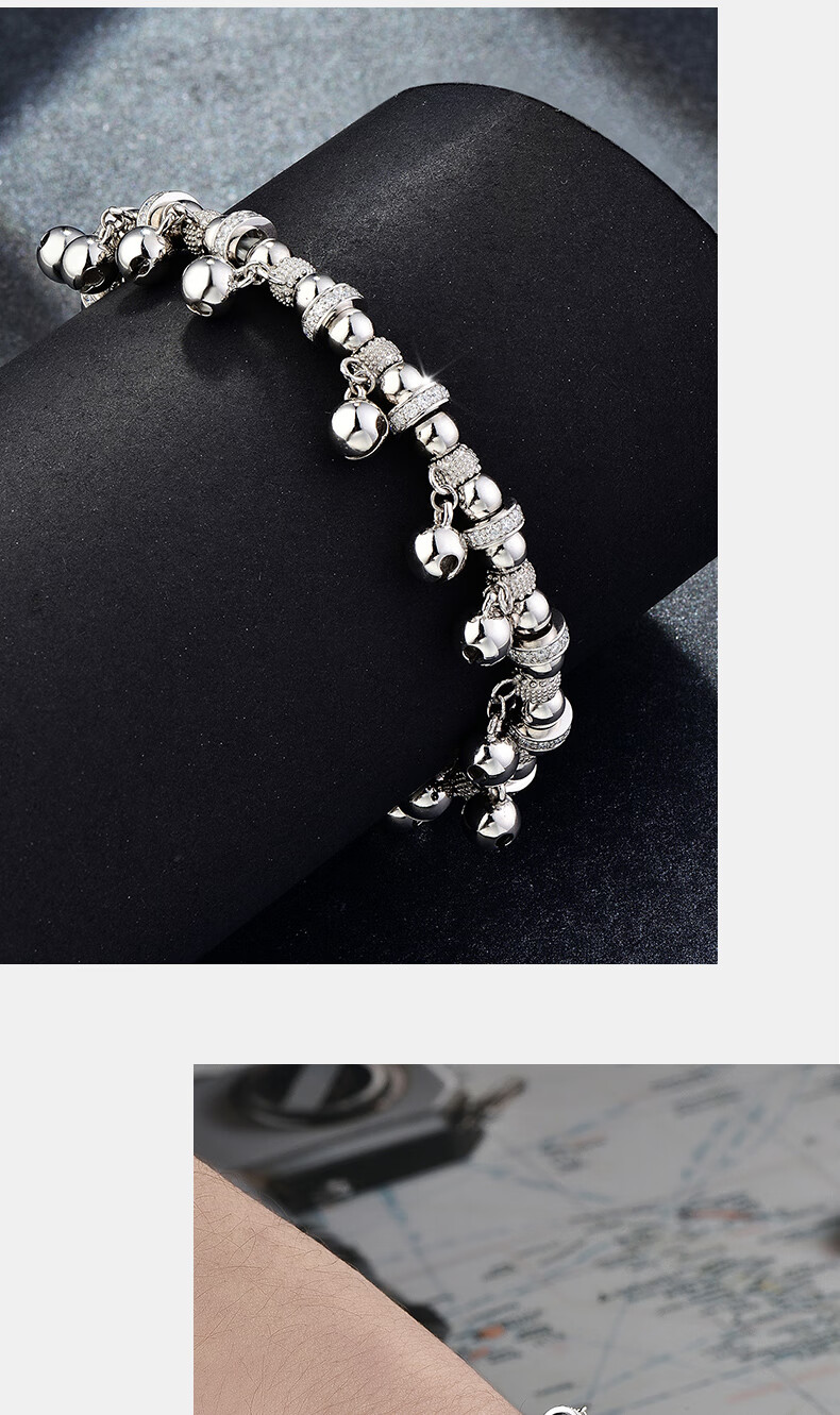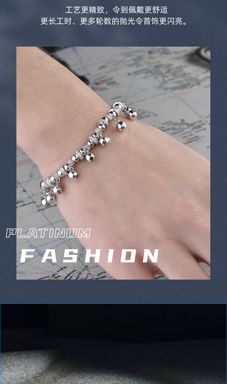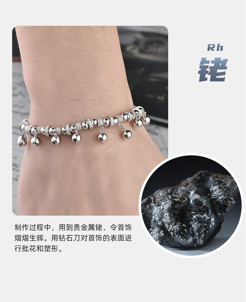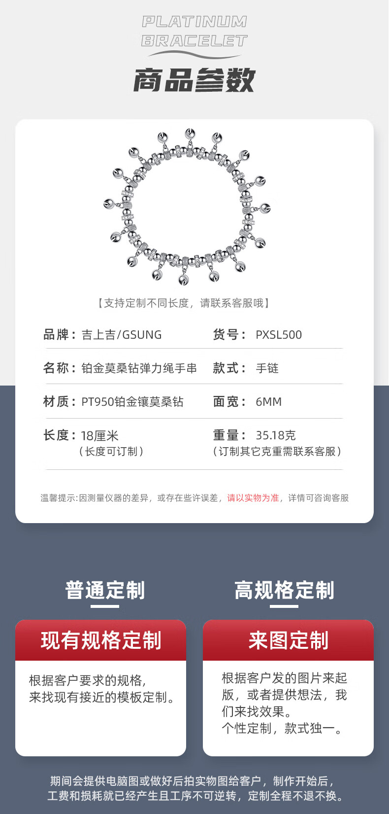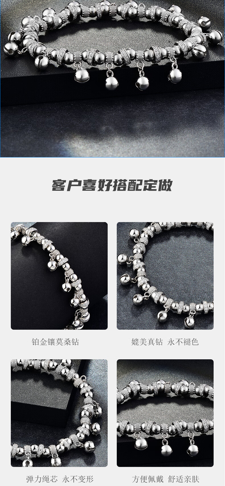 GsunG platinum PT950 bracelet for women with moissanite elastic rope bracelet platinum ball bracelet moissanite small bell Calculated according to the gold price in the store that day