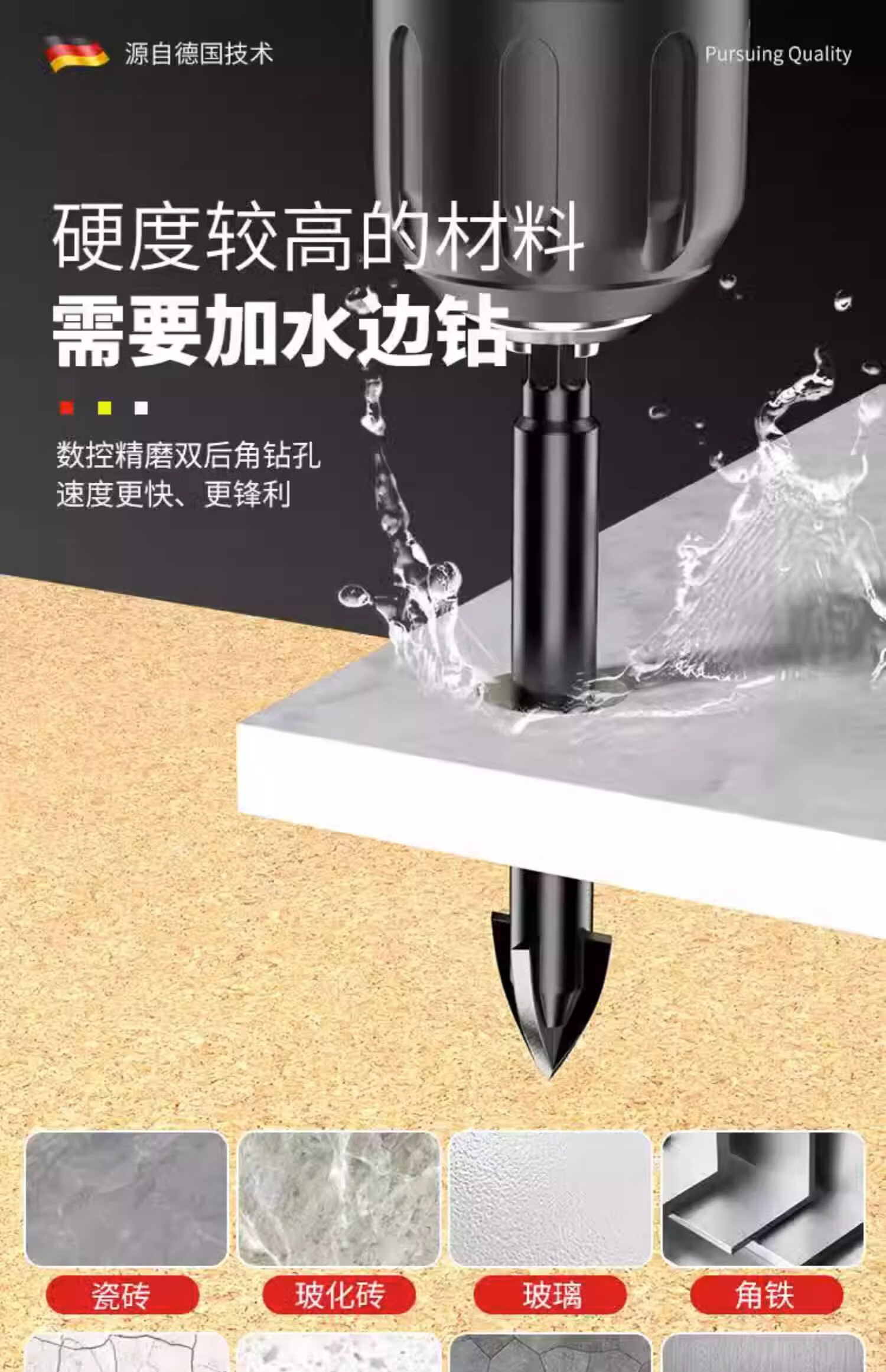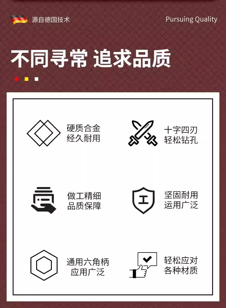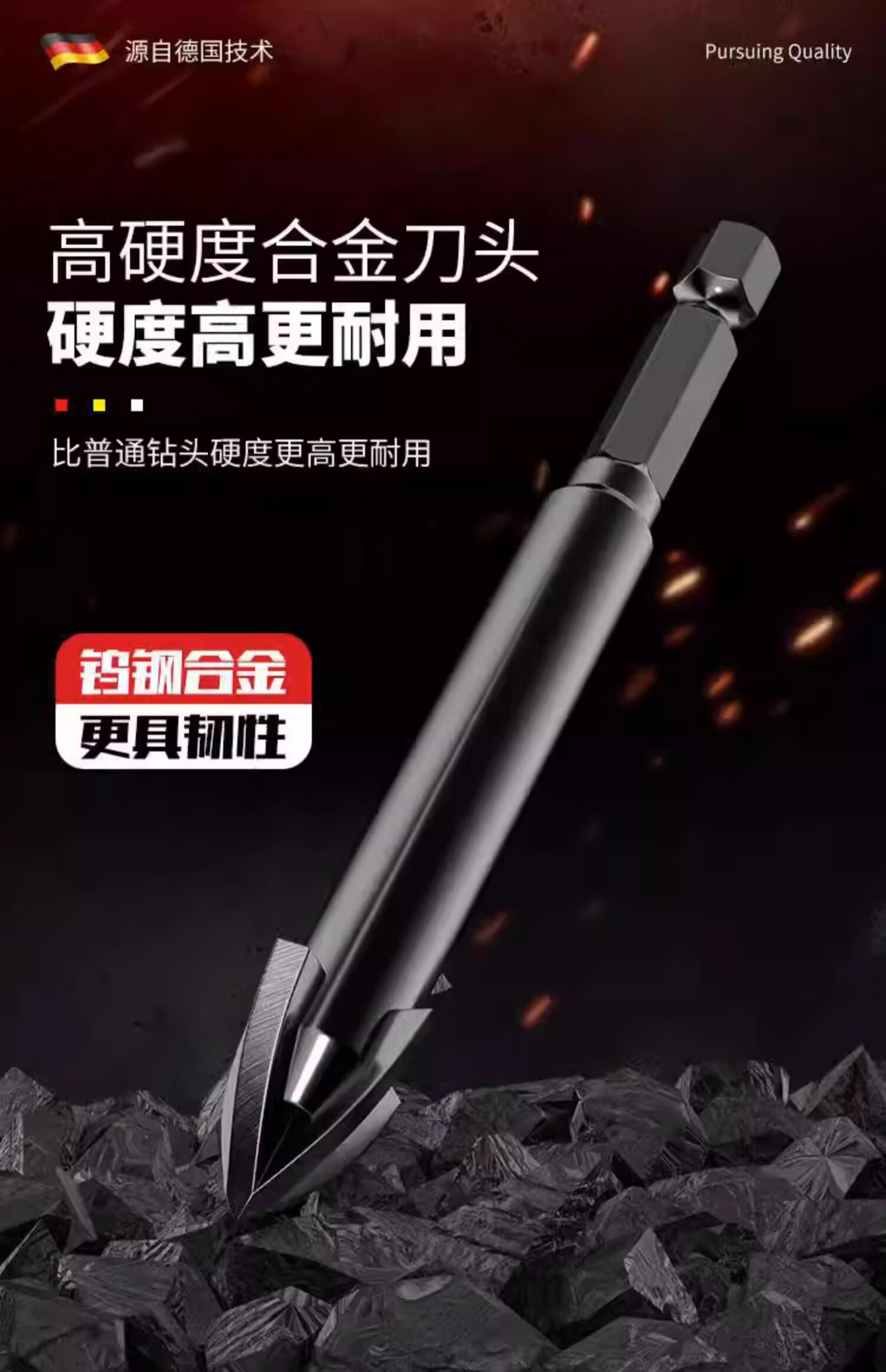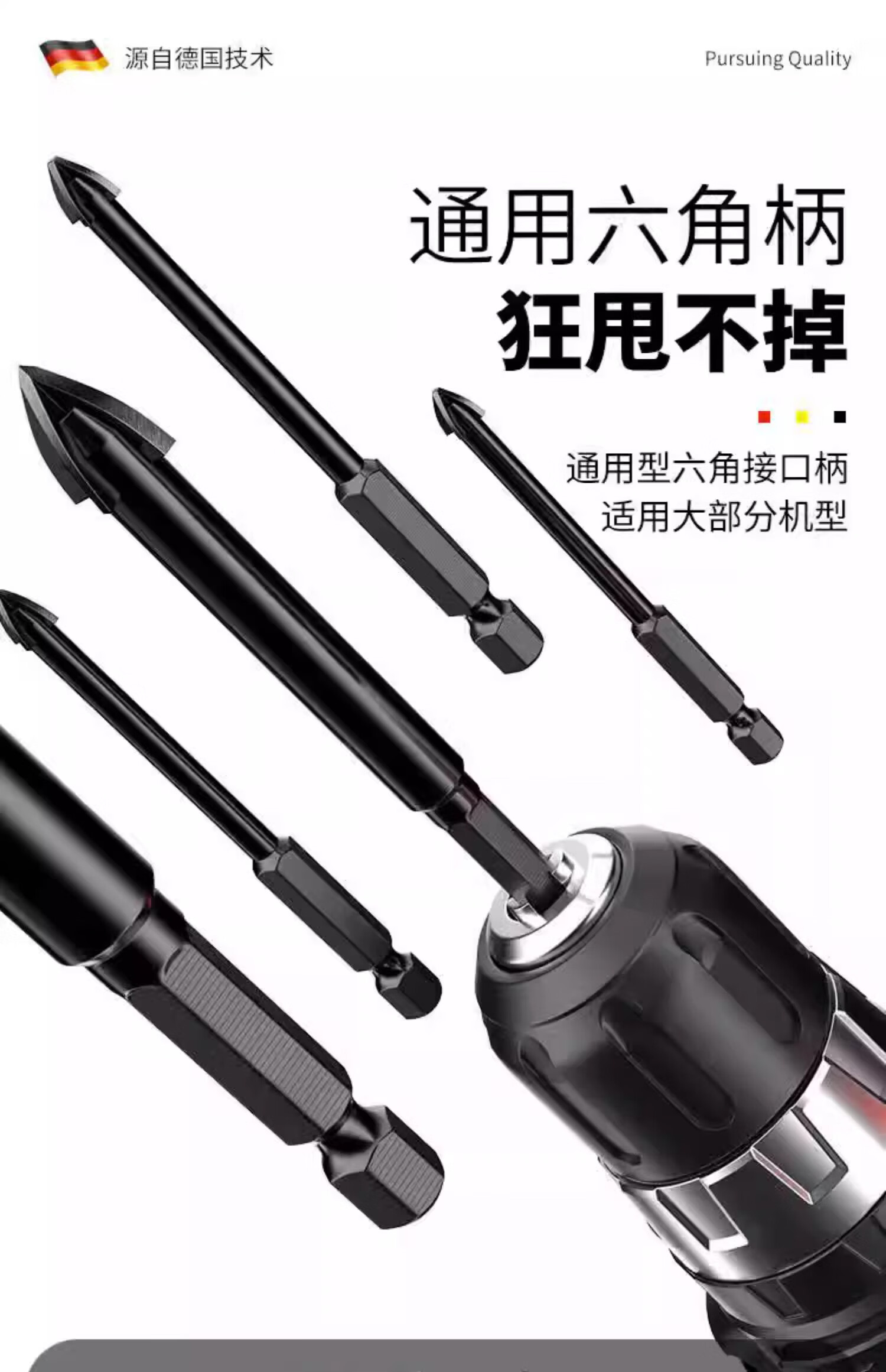 Concrete glass impact alloy triangle drill tile drilling drill bit special high hardness overlord drill cross four-edged black four-edged overlord drill 3mm 2 pieces