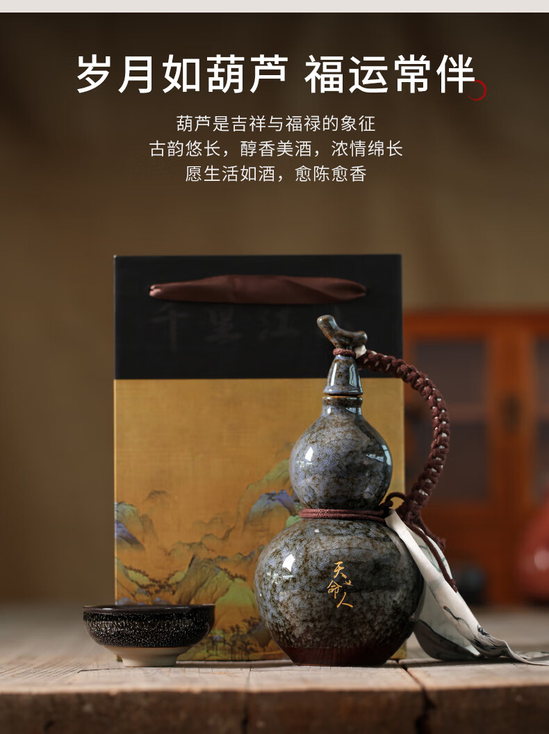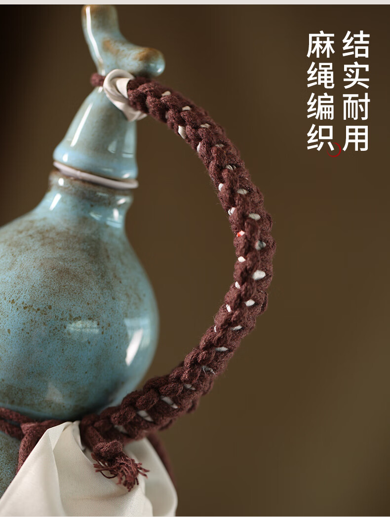 Miaopule high-end Tianmingren gourd wine bottle kettle, ancient style white wine ceramics, old-fashioned household men's national style, dark blue Tianmingren gourd + hand-held streamer + crossbody bell