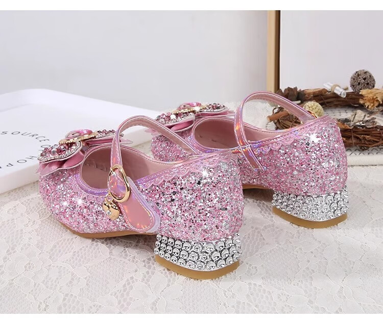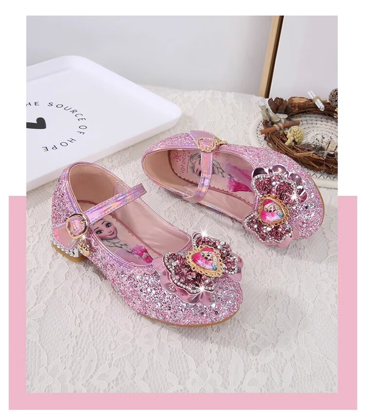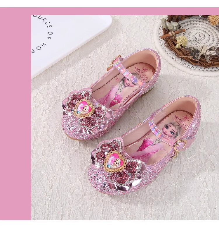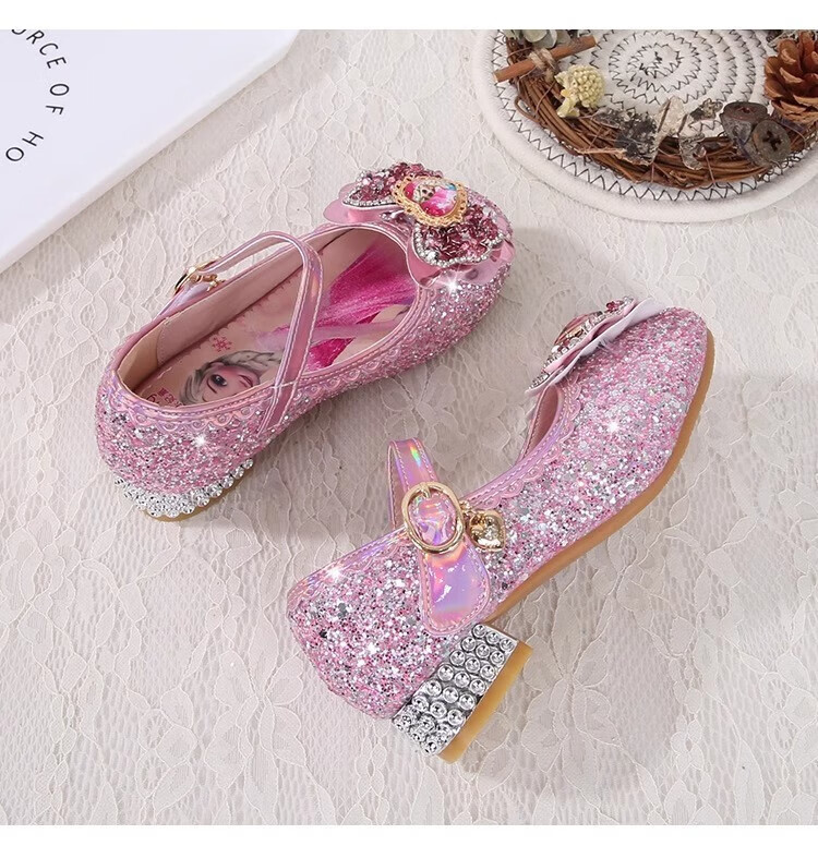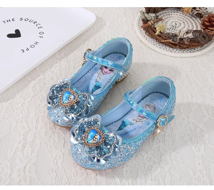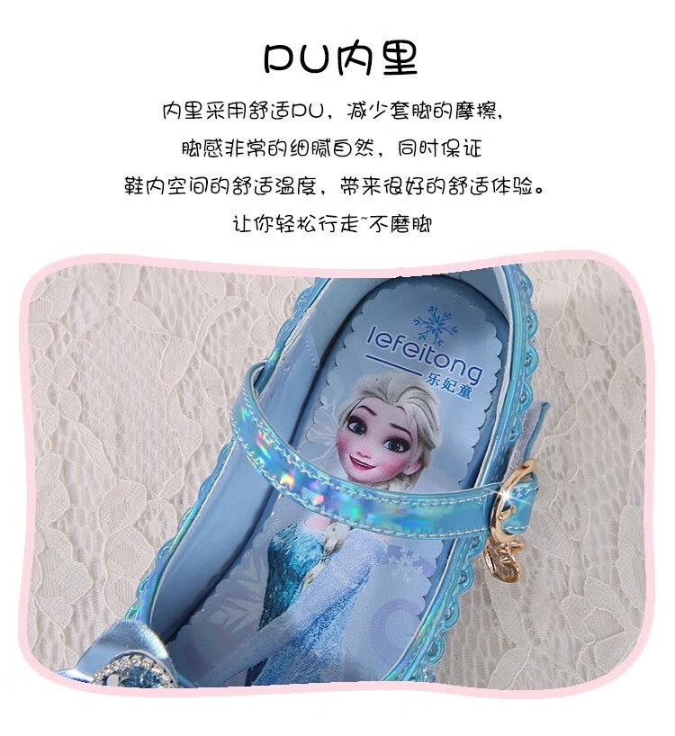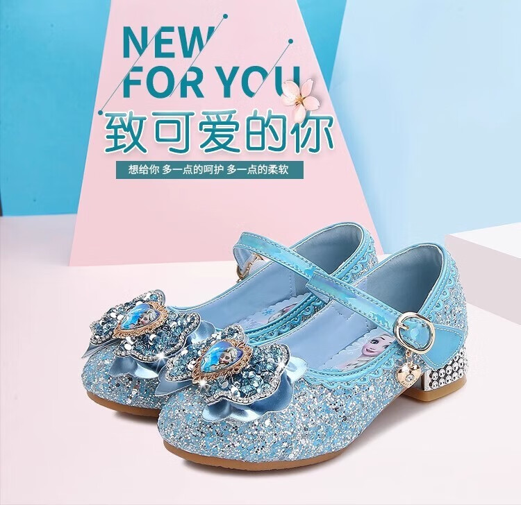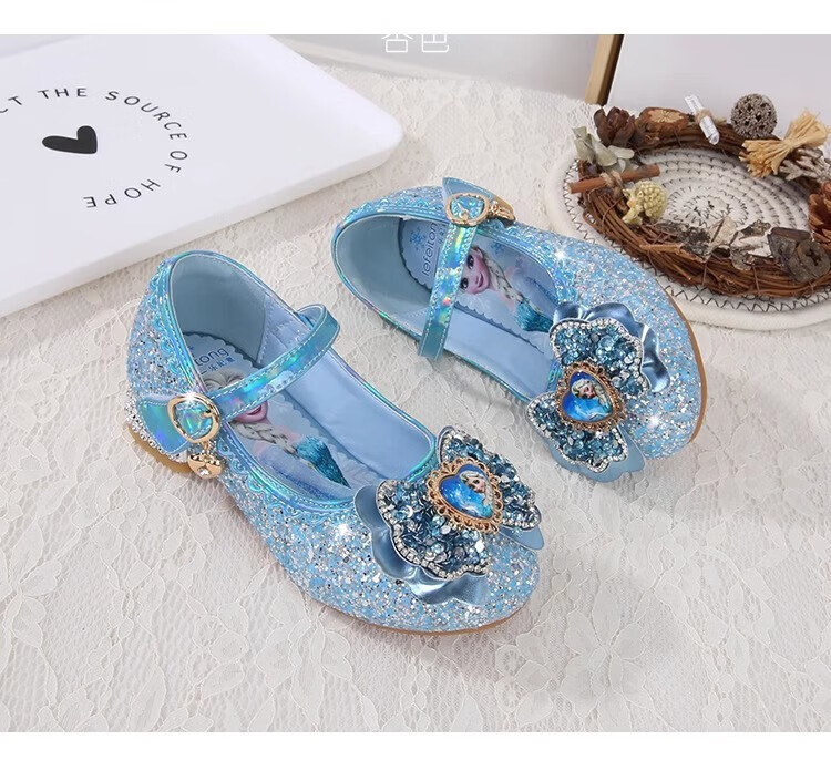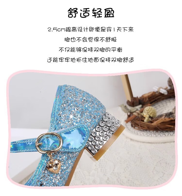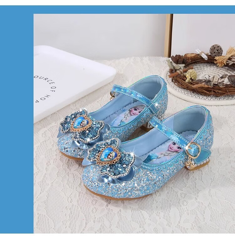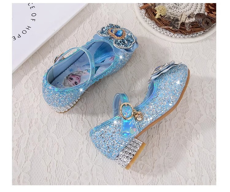 Ye Yu Girls' High Heels Spring and Autumn Elsa Frozen Princess Crystal Soft Sole Shoes Elsa Children's Leather Shoes Children's Shoes 810-3 High Heels Ice Blue Free Crown 30 Inner Length 18.5cm