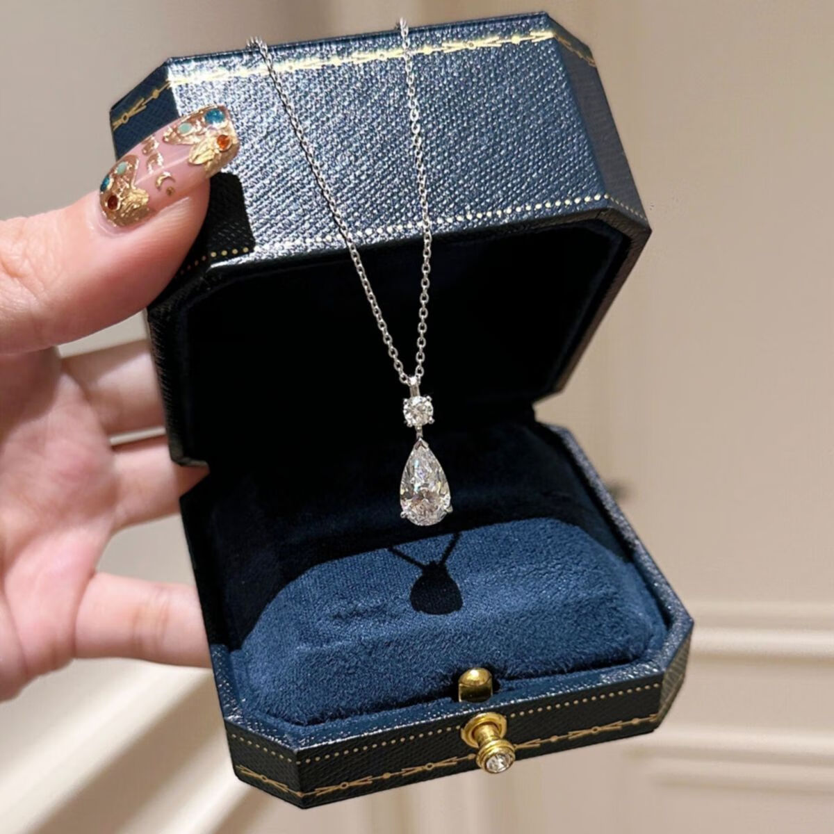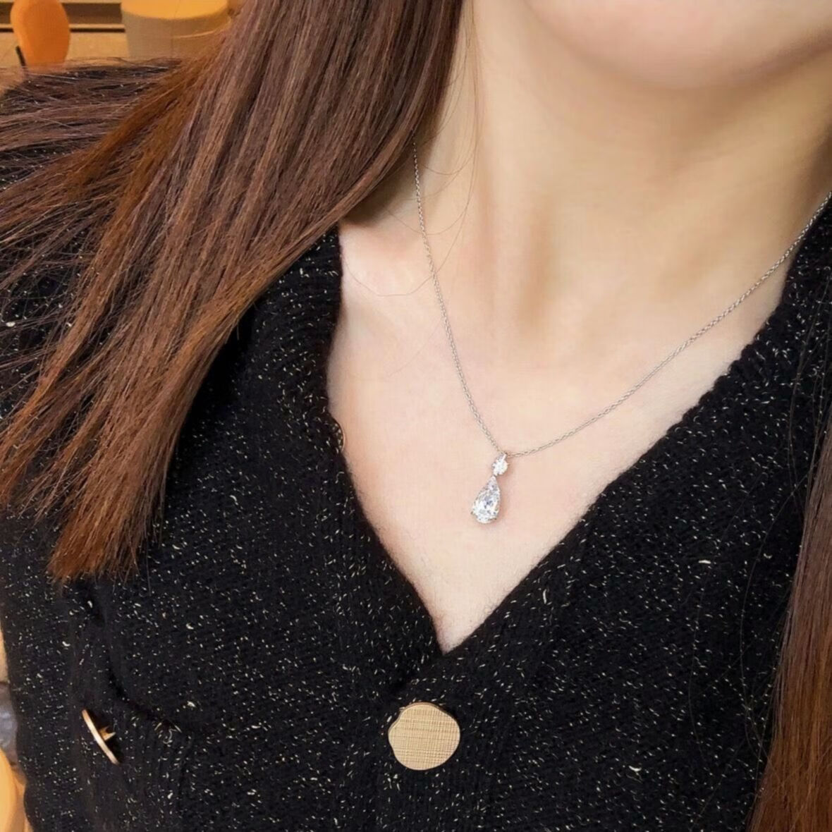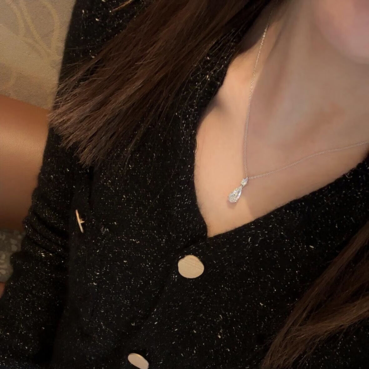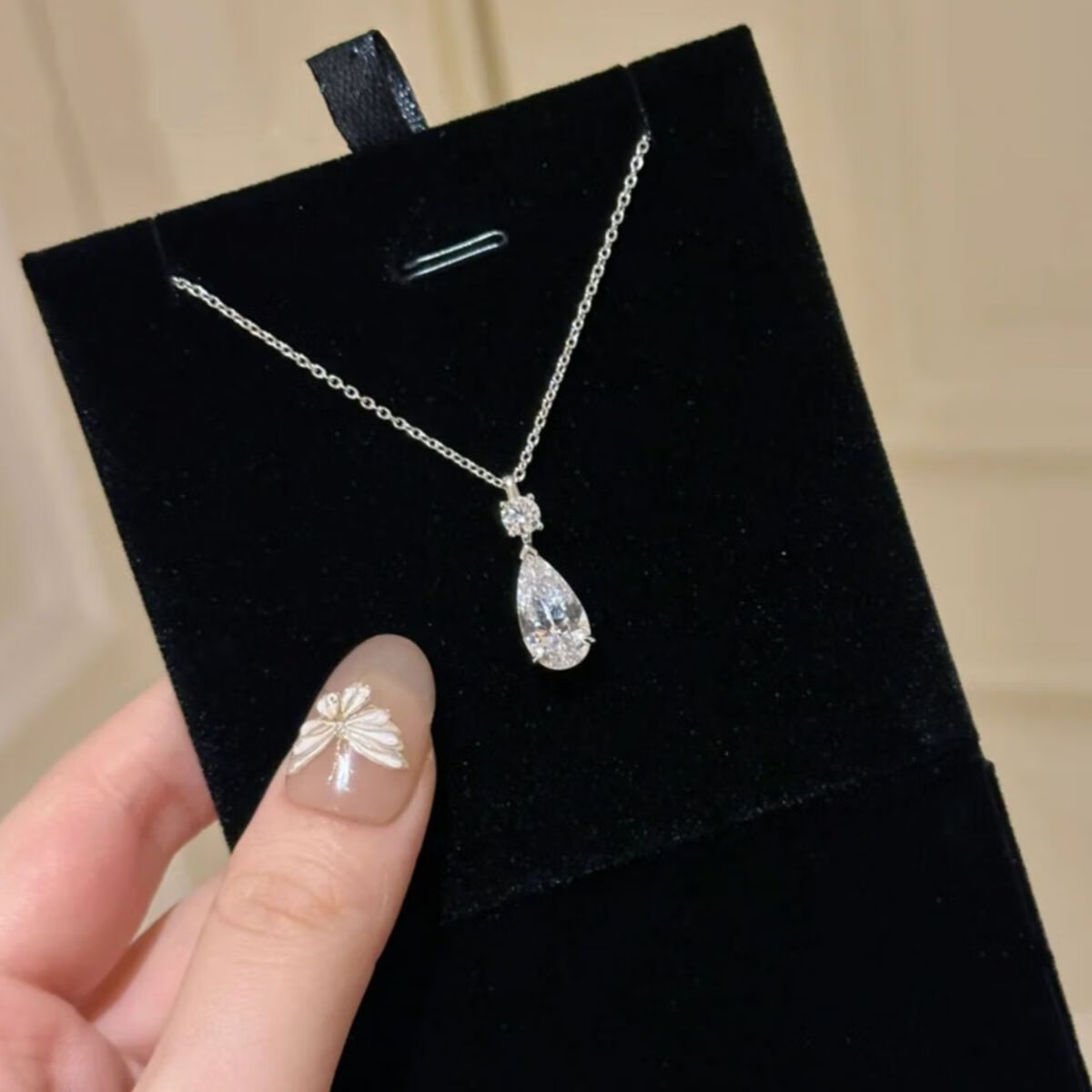 Excellent 18K gold mermaid tear necklace for women sterling silver zircon water drop tassel clavicle chain platinum light luxury gift trend Mermaid tear drop necklace