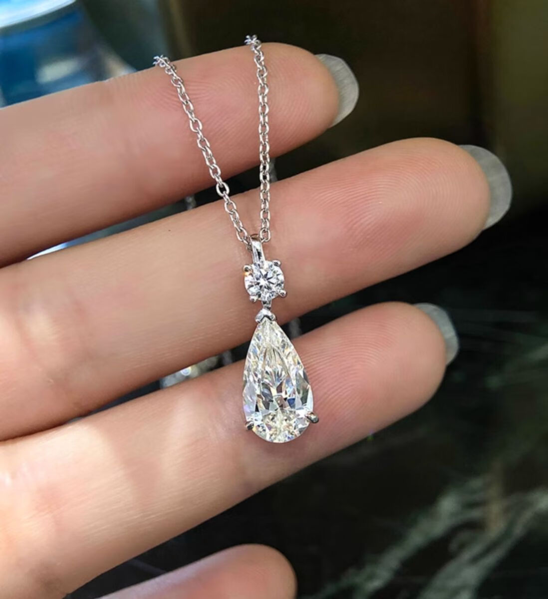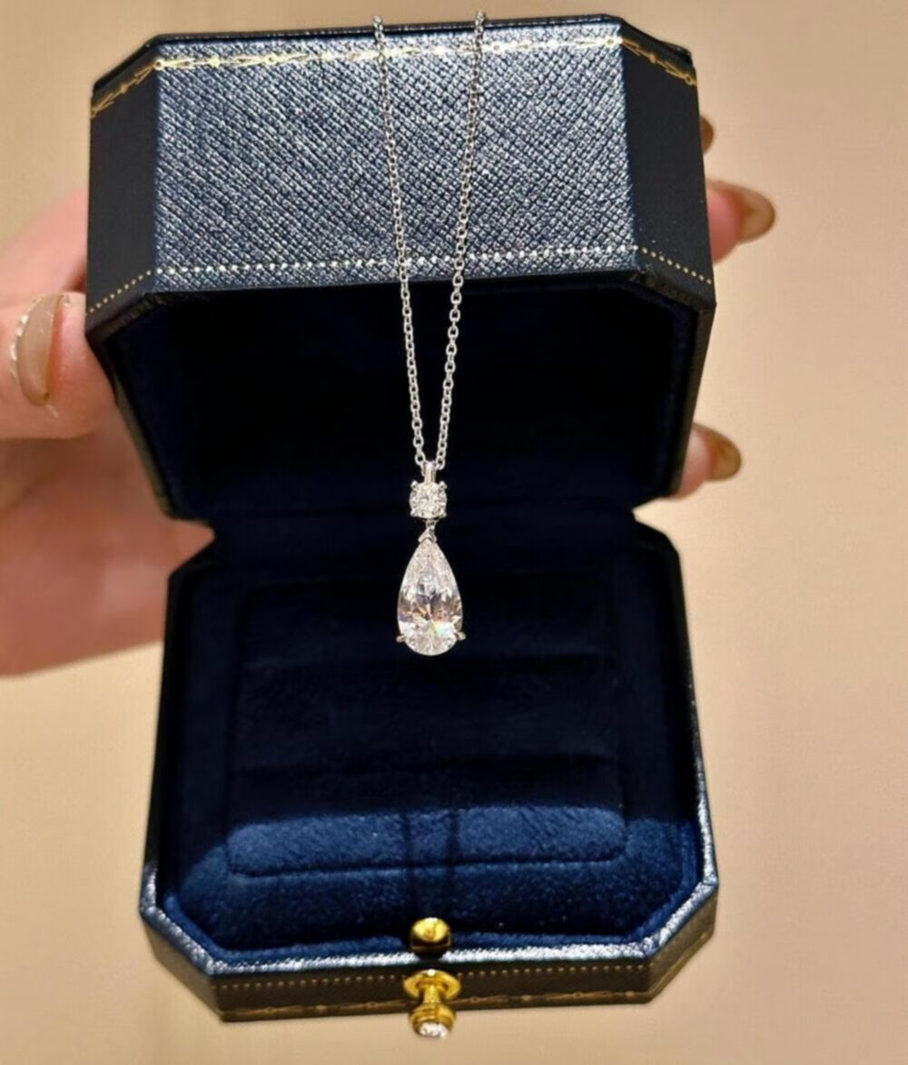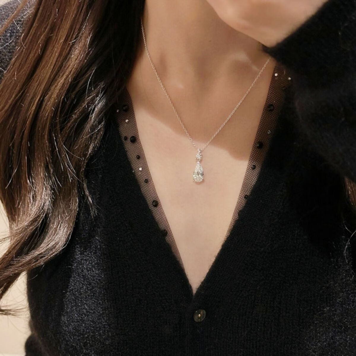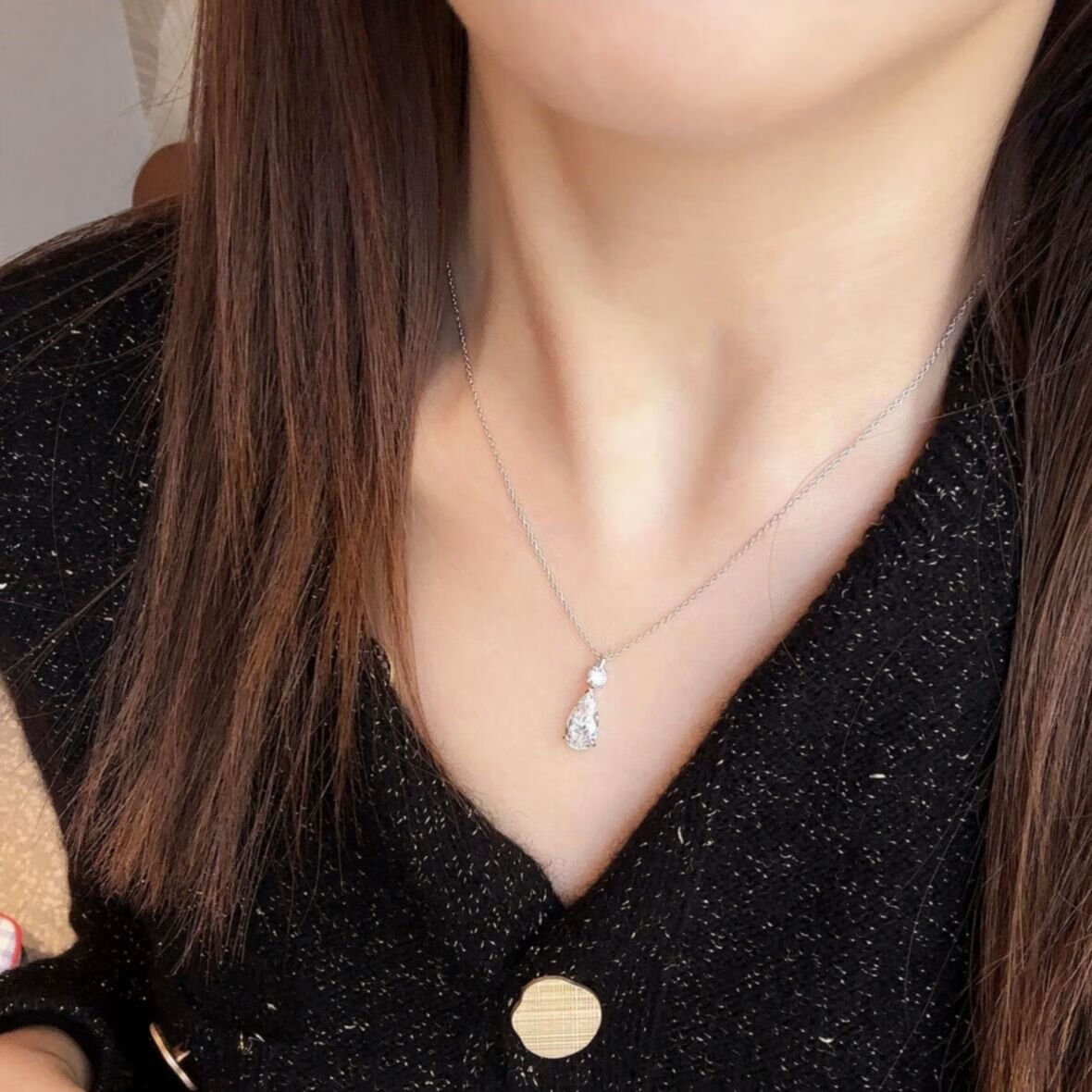 Excellent 18K gold mermaid tear necklace for women sterling silver zircon water drop tassel clavicle chain platinum light luxury gift trend Mermaid tear drop necklace