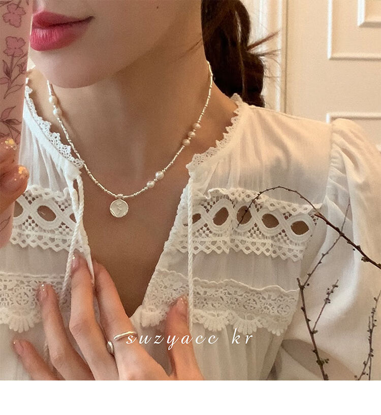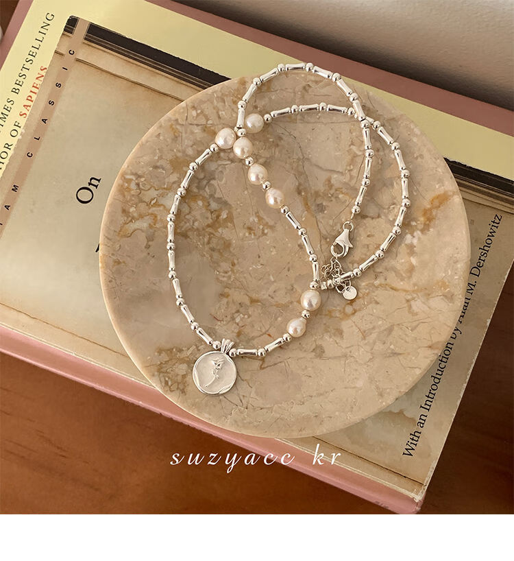 Youshu light luxury niche sterling silver pearl necklace for women 2024 new style French drip glaze flower necklace flower round brand style in stock