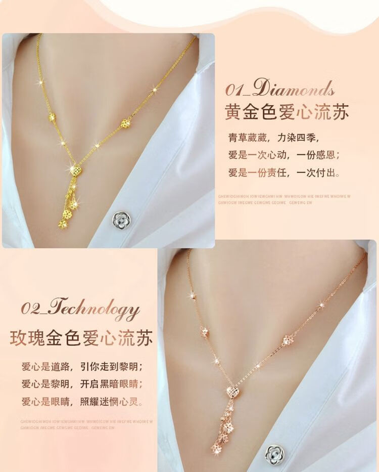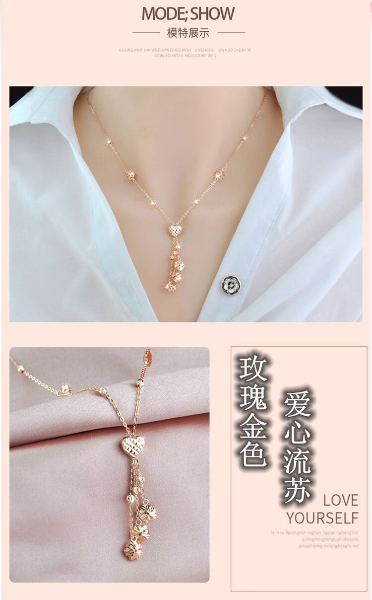 Youshu Necklace Women's 925 Sterling Silver Plated 18K Color Gold Necklace Color Silver Tassel Clavicle Chain Women's Simple Birthday Gift for Girlfriend Gold Color Ordinary Packaging