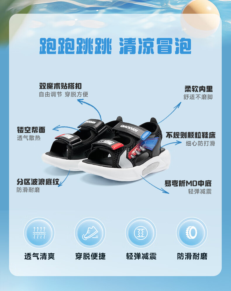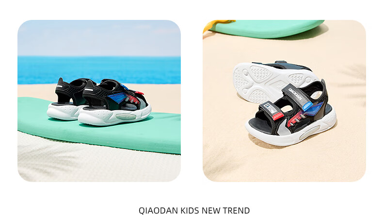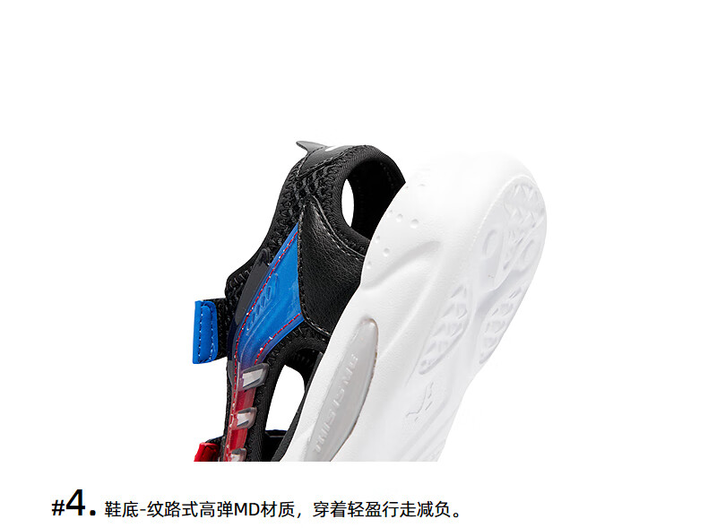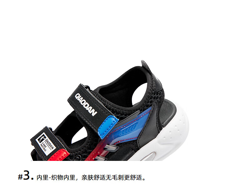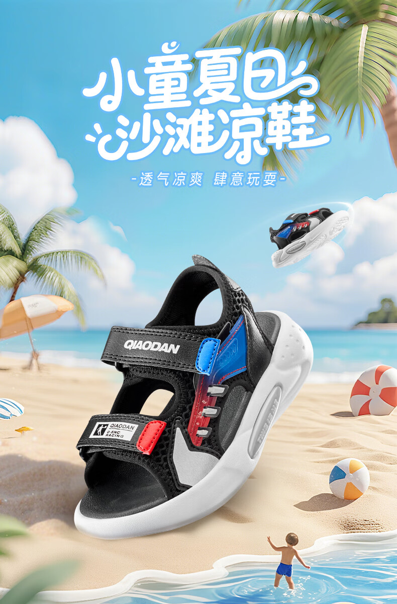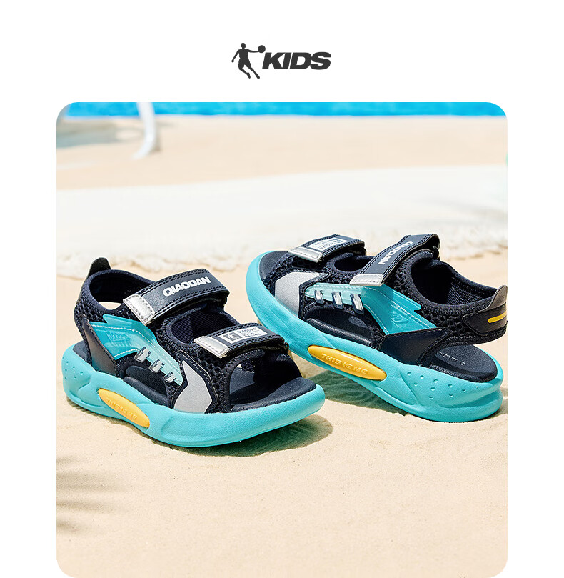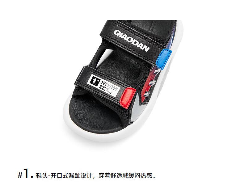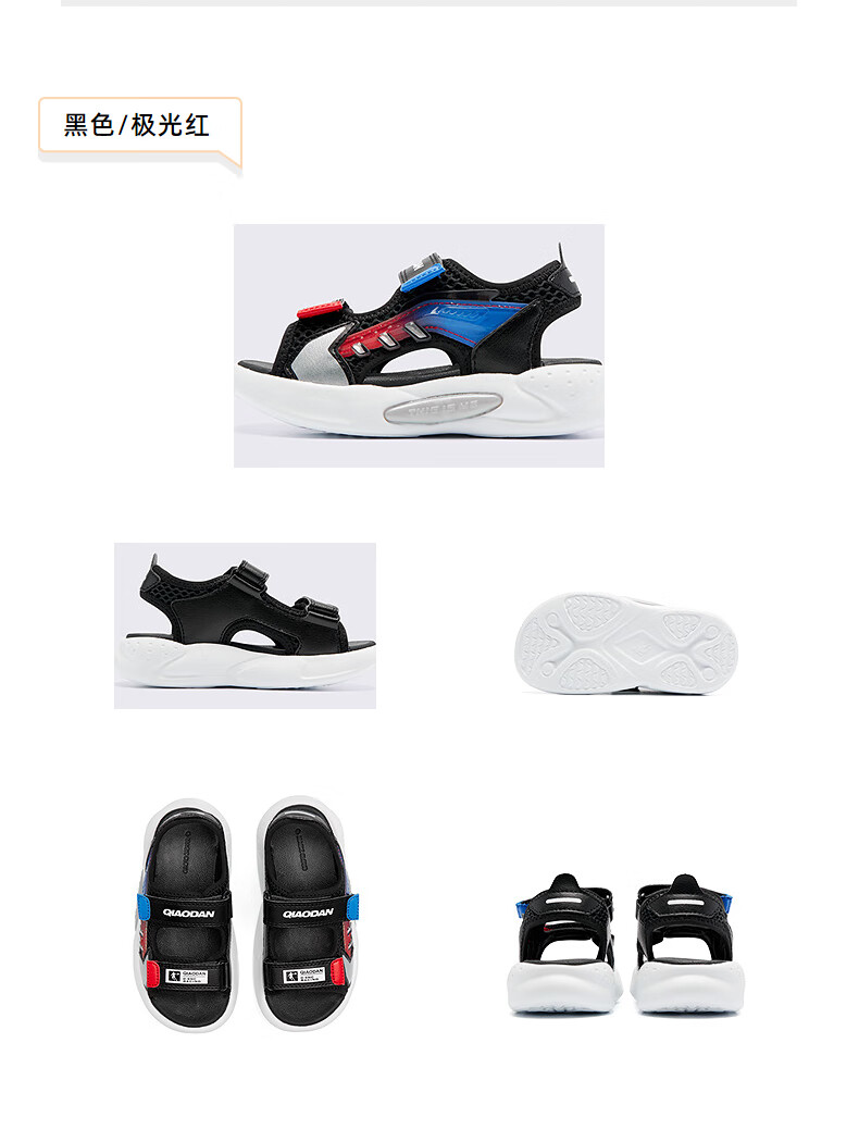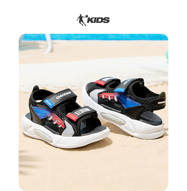 Jordan QIAODAN children's shoes children's sandals 2025 summer new baby boy breathable non-slip Velcro children's sports shoes black/aurora red 30
